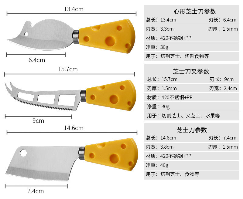 现货批发PP柄水果刀不锈钢奶酪芝士刀套装面包牛排刀迷你小菜刀