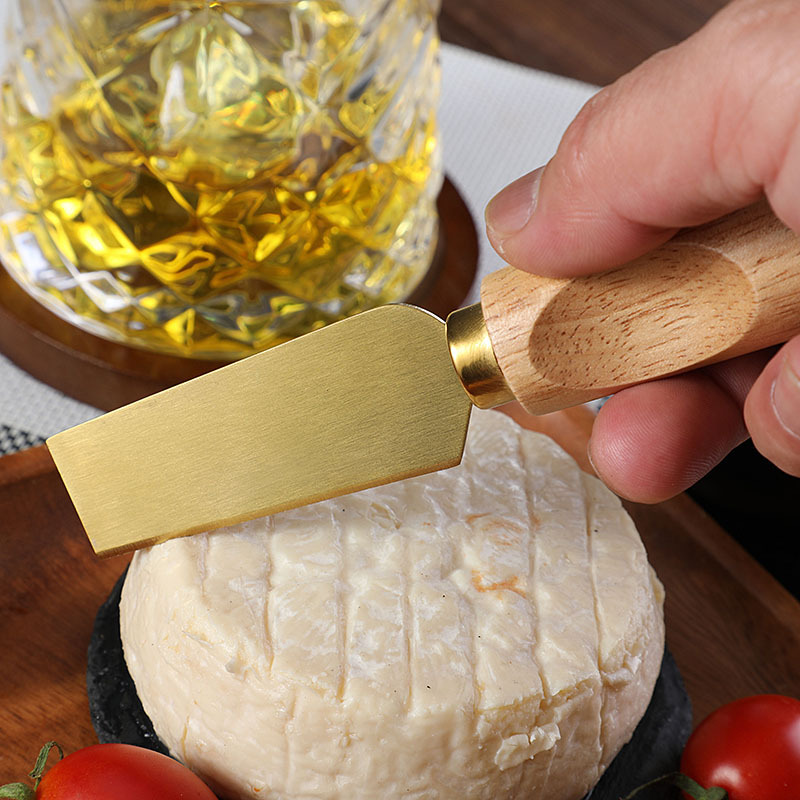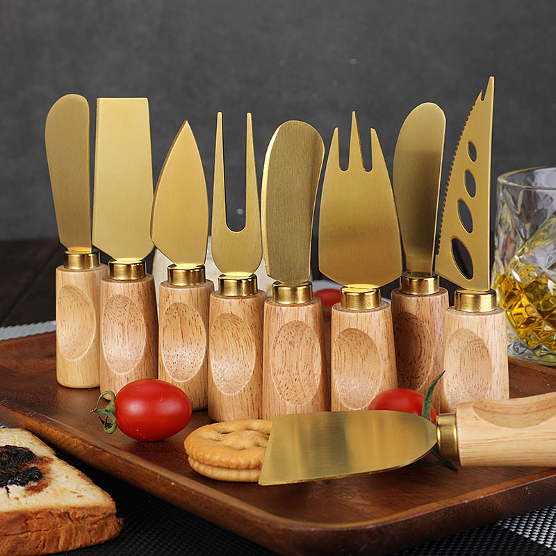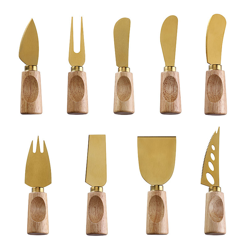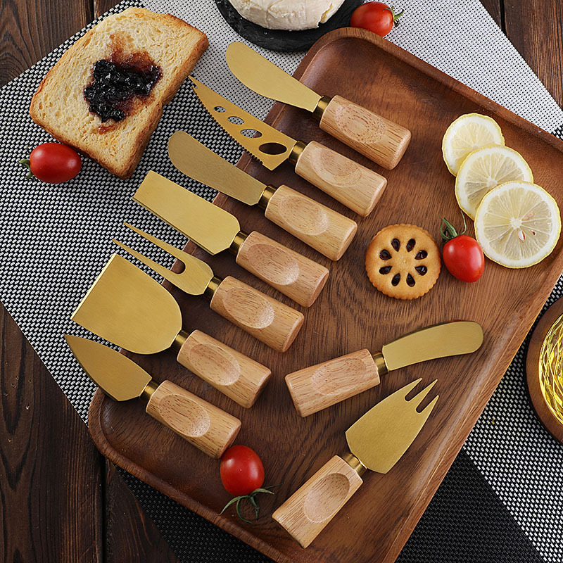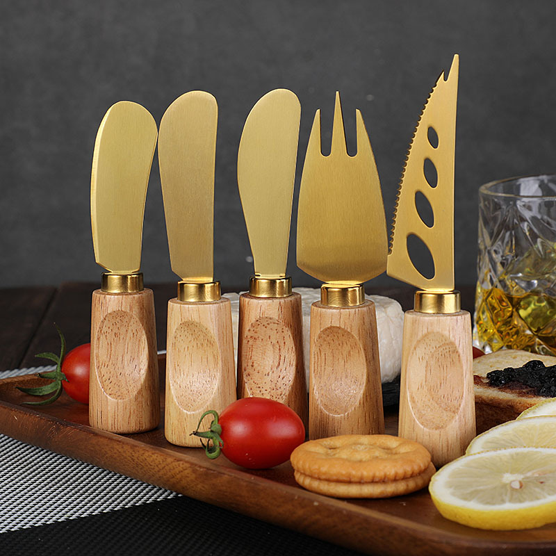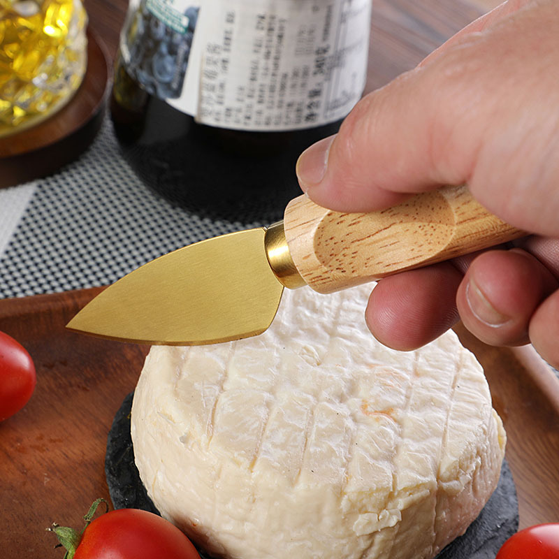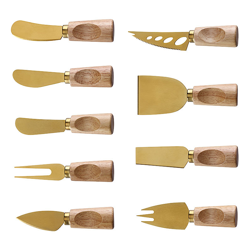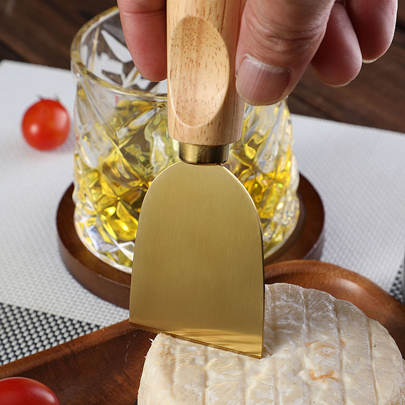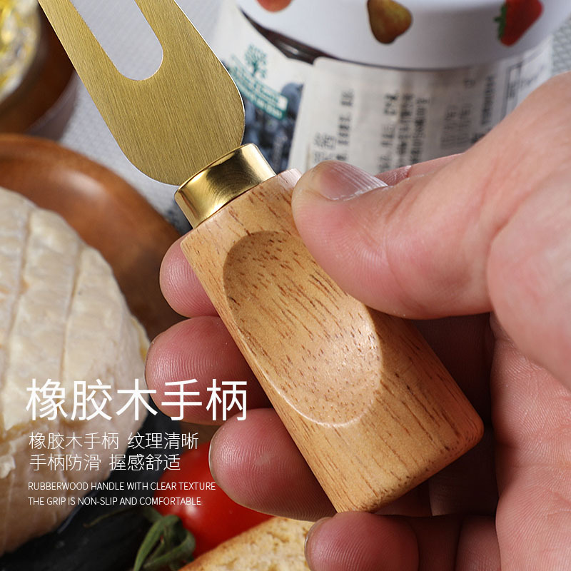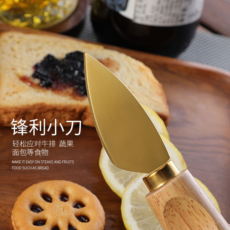 跨境橡胶木柄金色芝士刀不锈钢奶酪果酱刀奶油刀披萨刀西餐餐具
