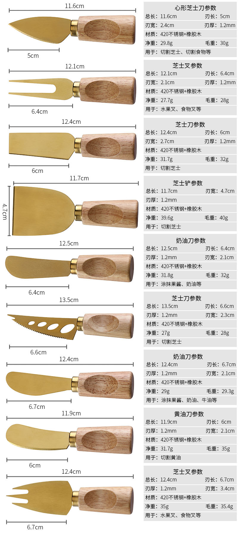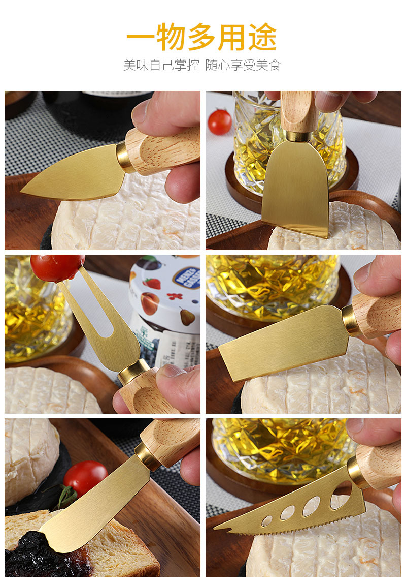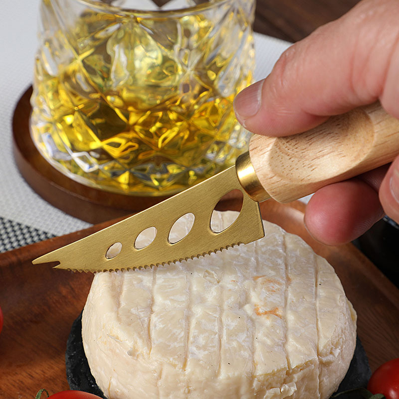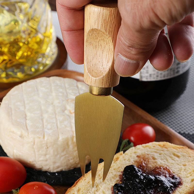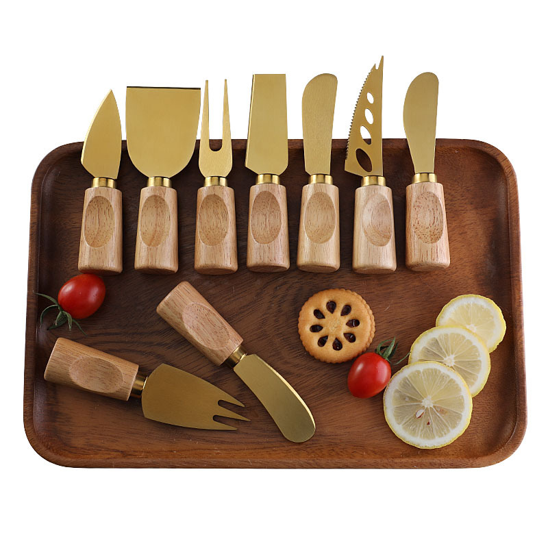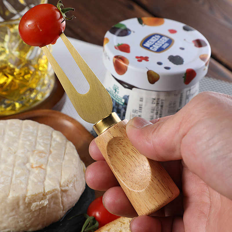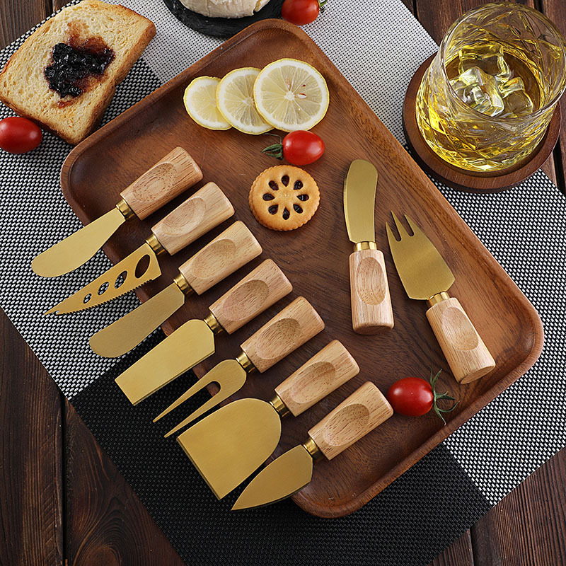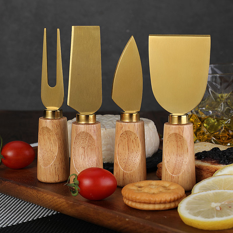 跨境橡胶木柄金色芝士刀不锈钢奶酪果酱刀奶油刀披萨刀西餐餐具