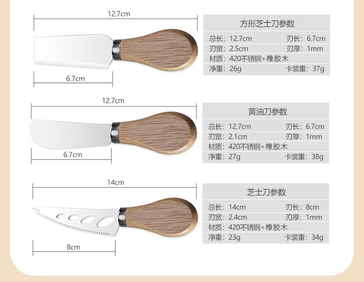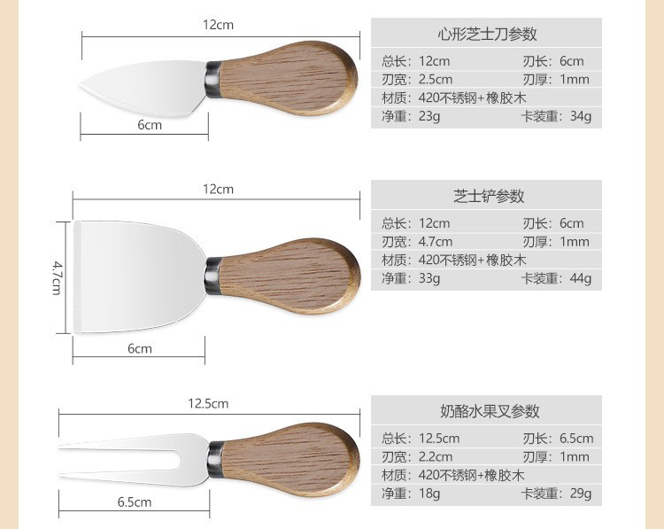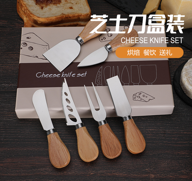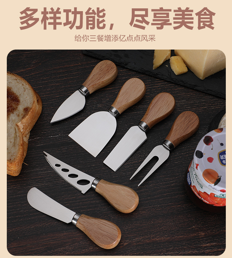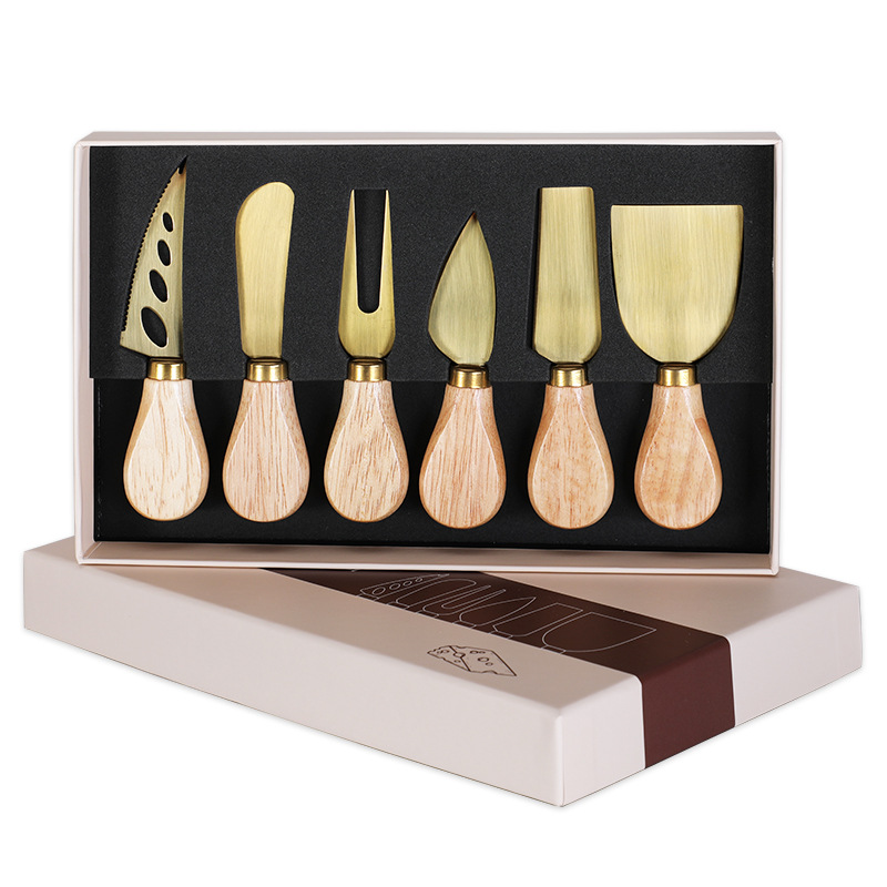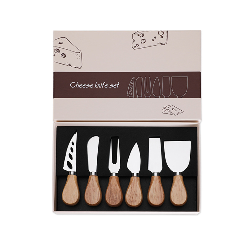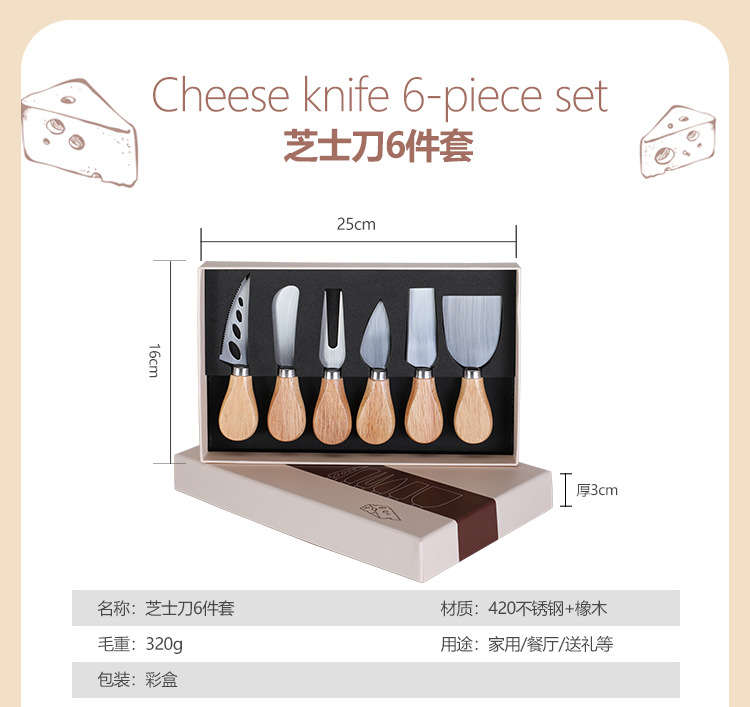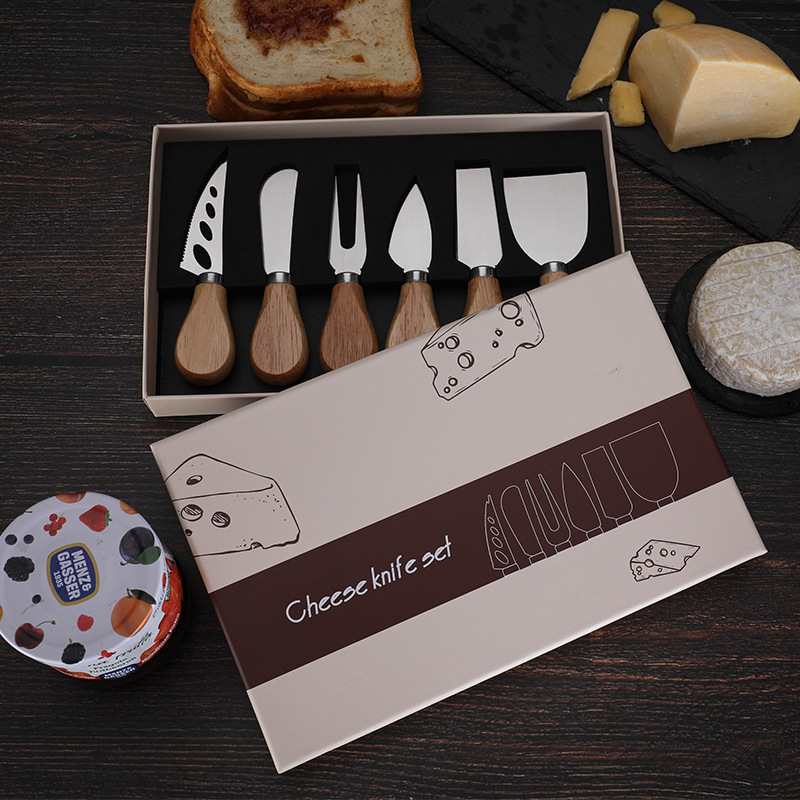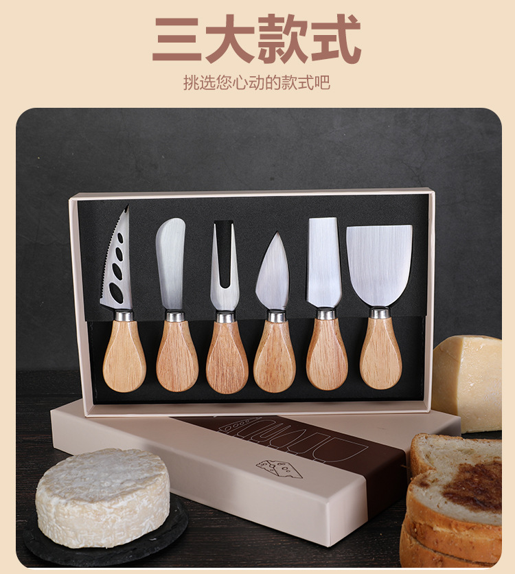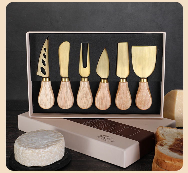 跨境现货礼盒6件套奶酪刀套装刀叉餐具黄油刀抹刀盒装芝士刀具