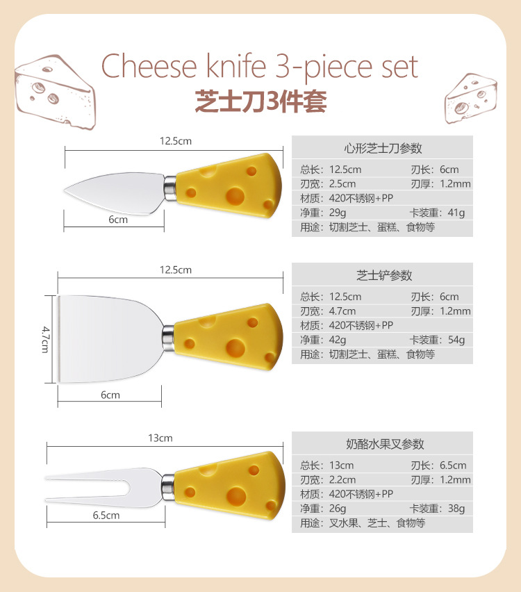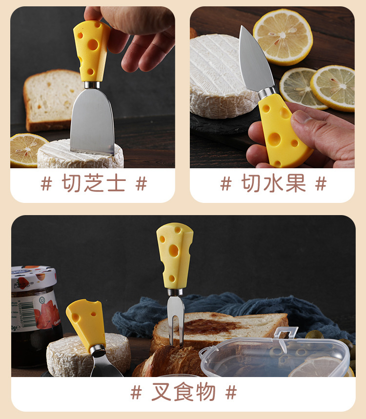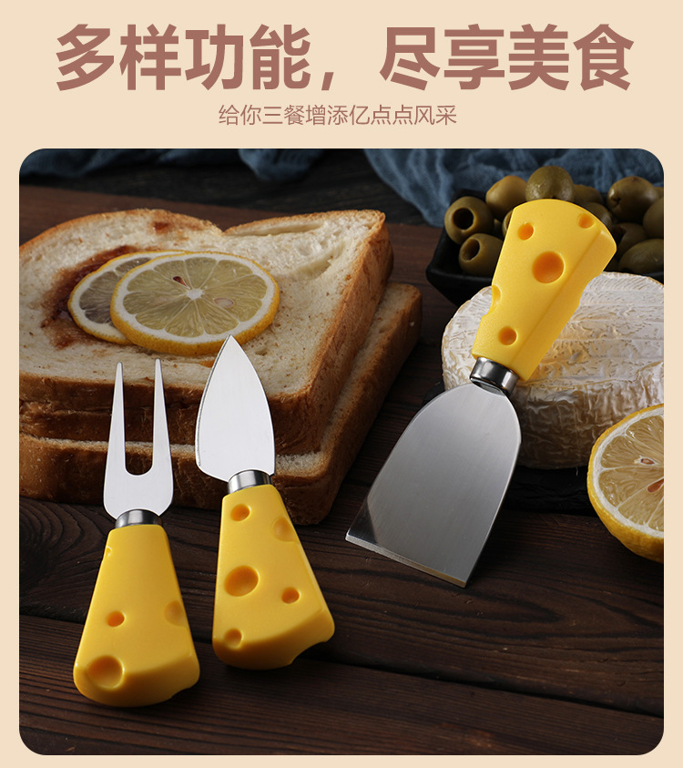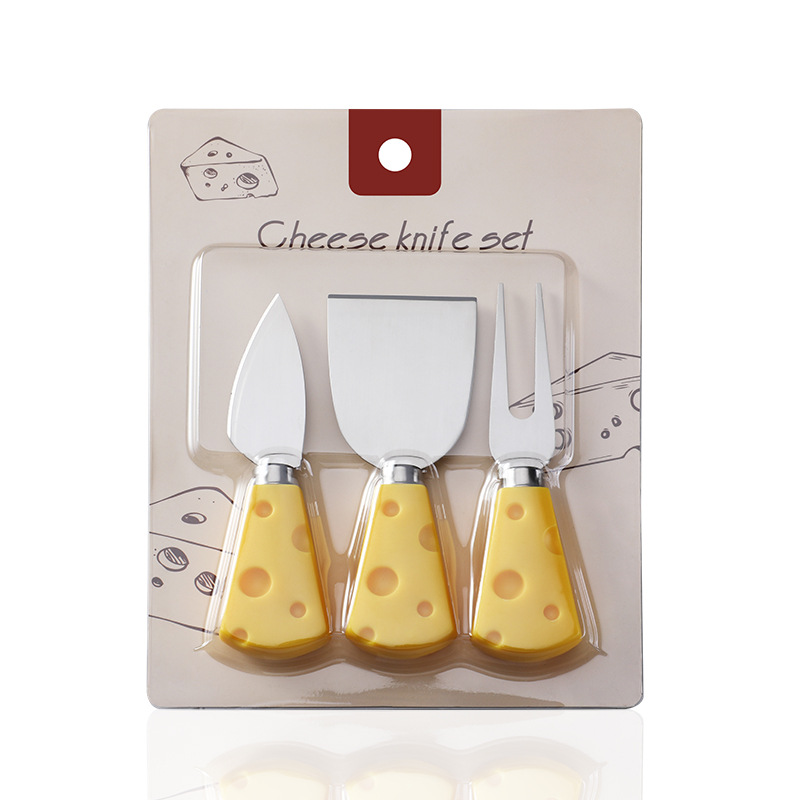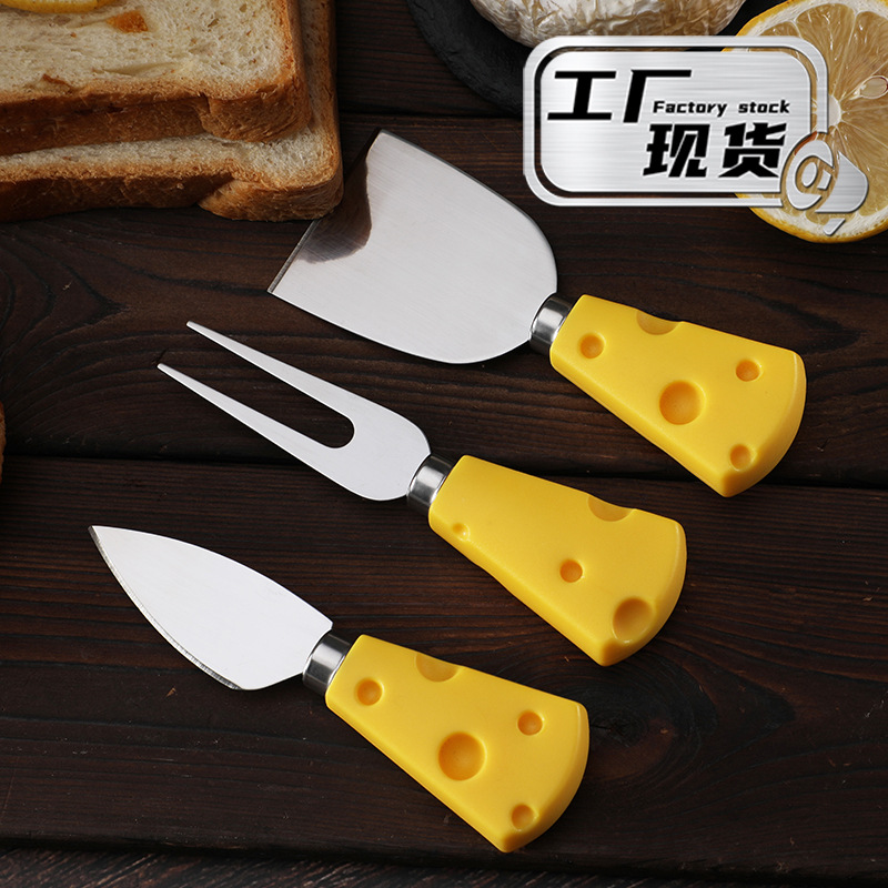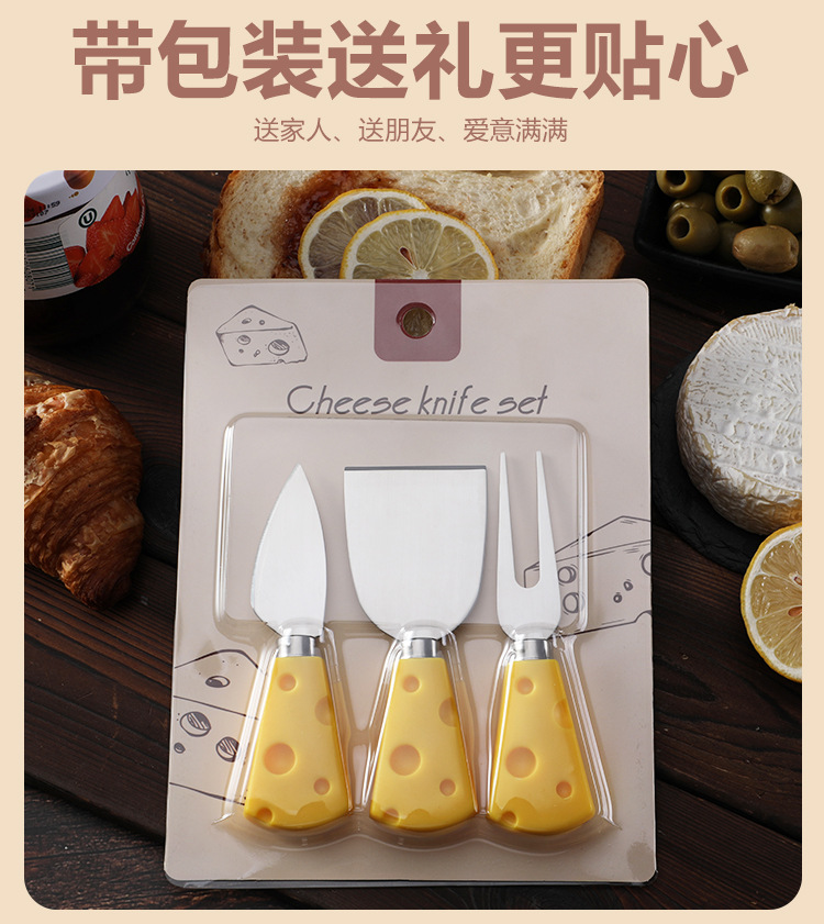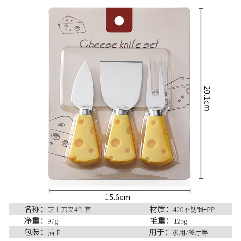 批发插卡包装创意黄色奶酪柄刀叉铲奶油三件套不锈钢芝士刀套装