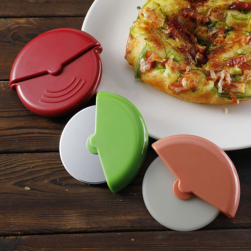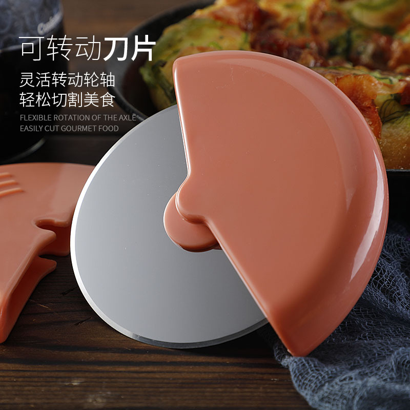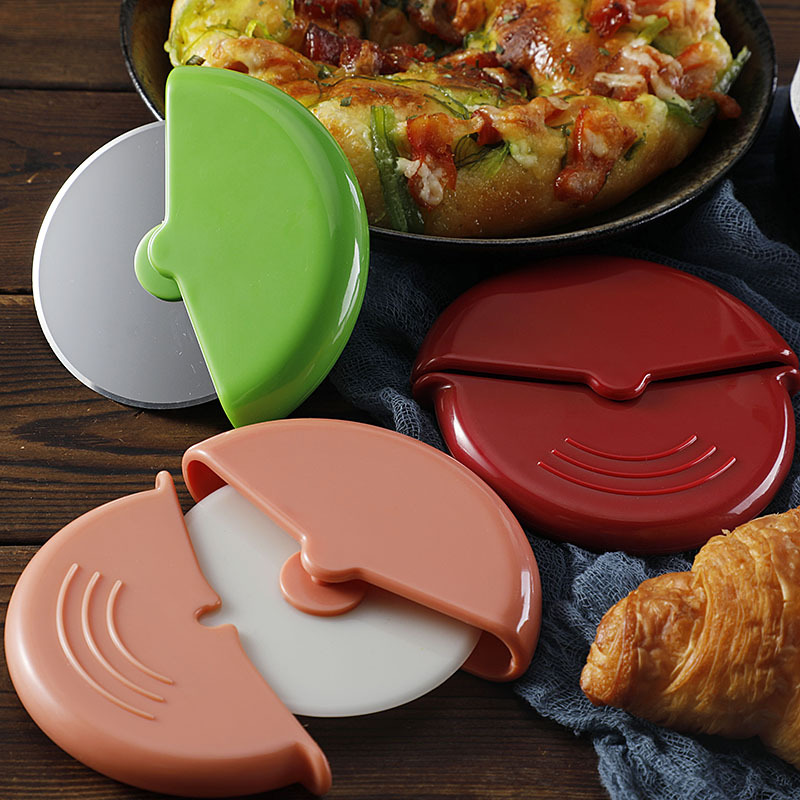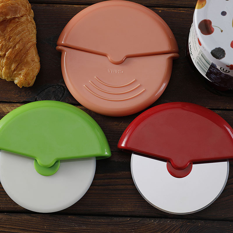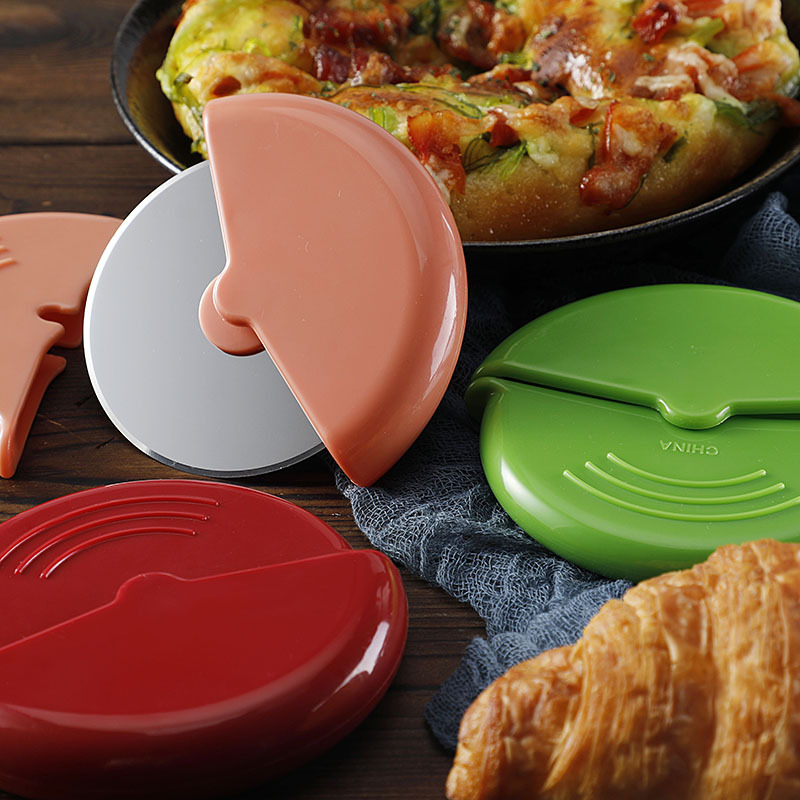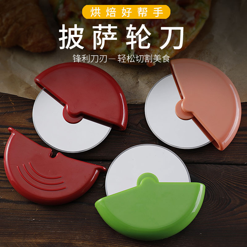 跨境不锈钢圆形披萨刀滚轮介饼刀烘焙工具带保护盖披萨轮刀披萨切