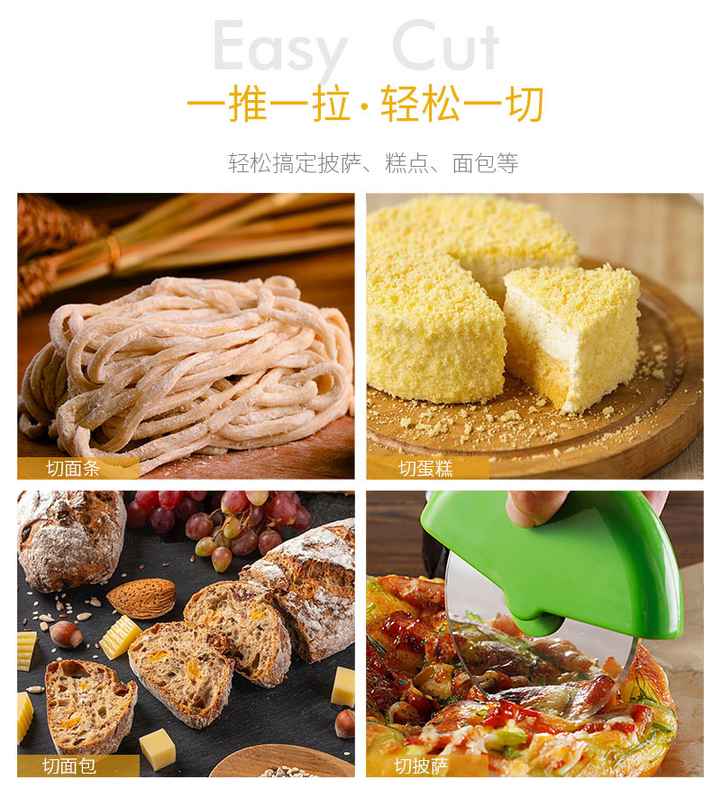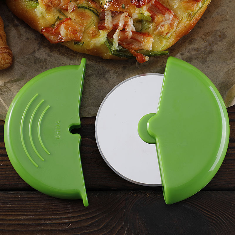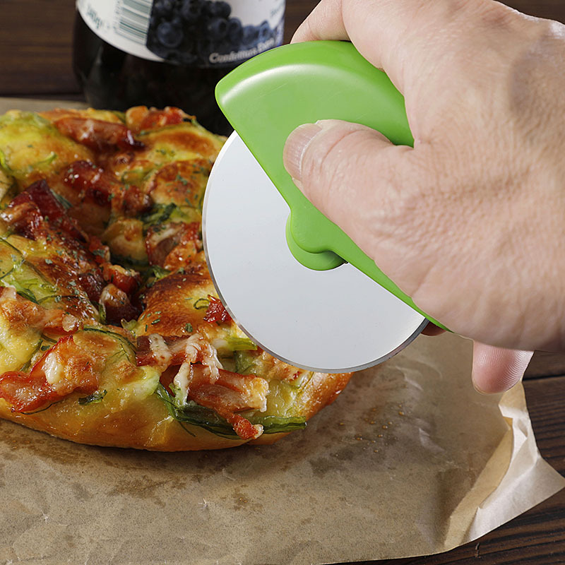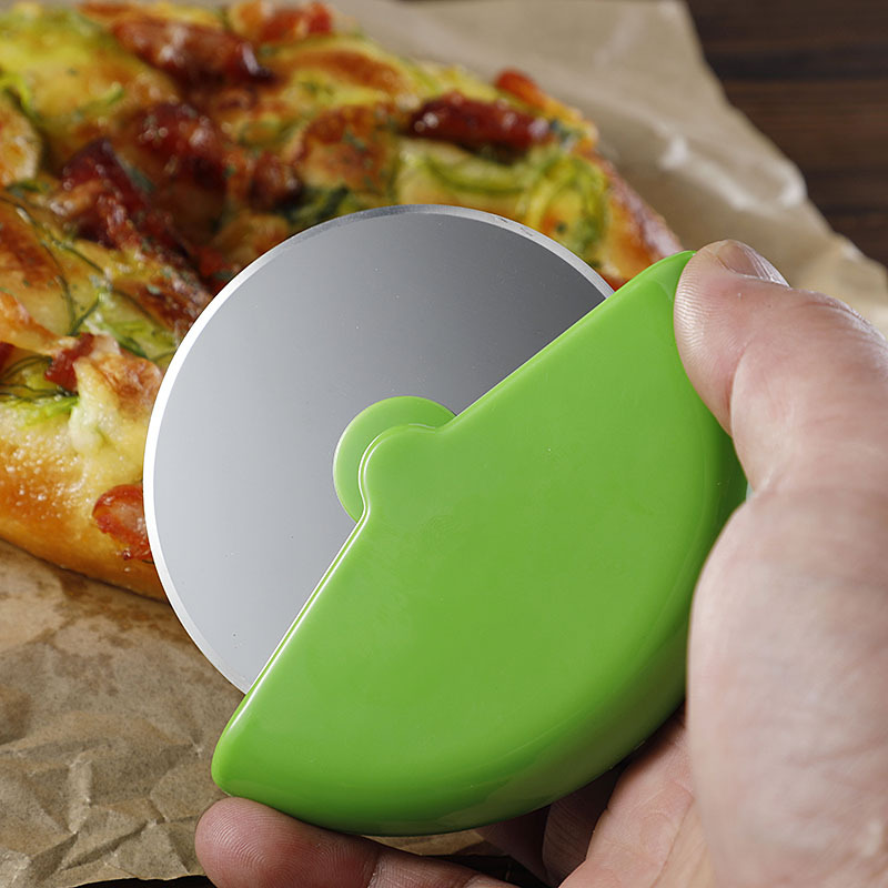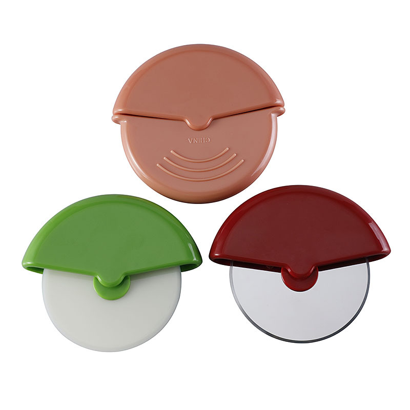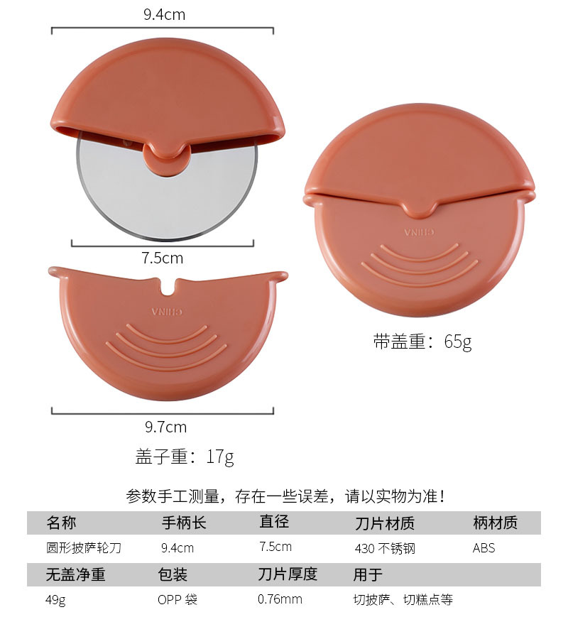 跨境不锈钢圆形披萨刀滚轮介饼刀烘焙工具带保护盖披萨轮刀披萨切