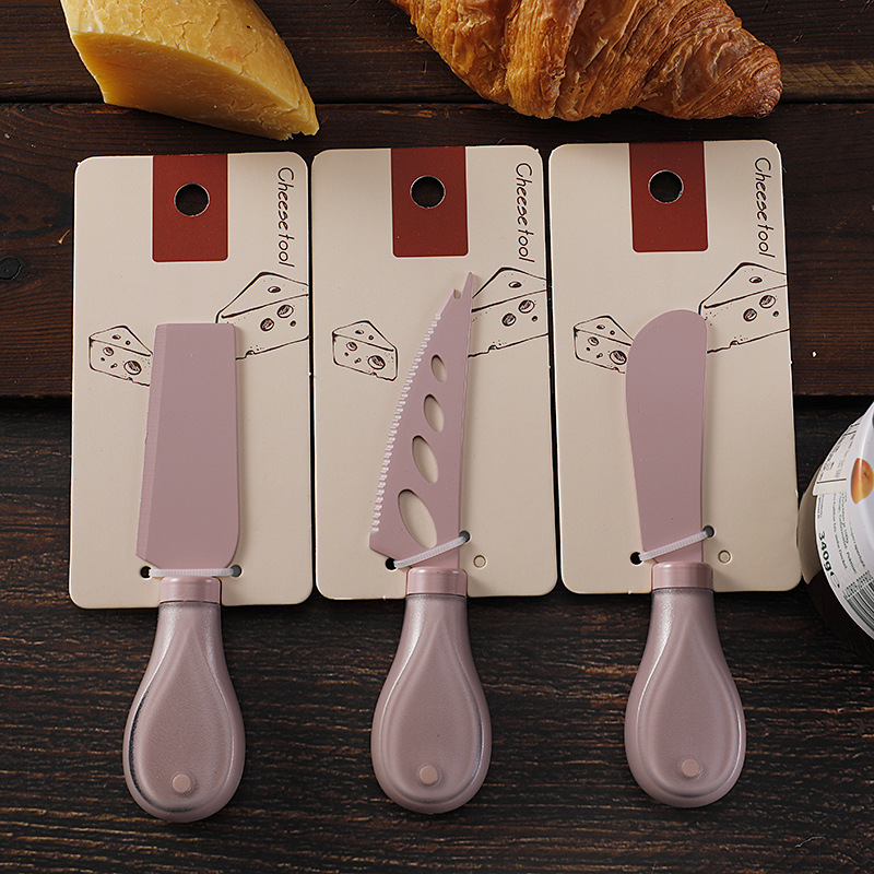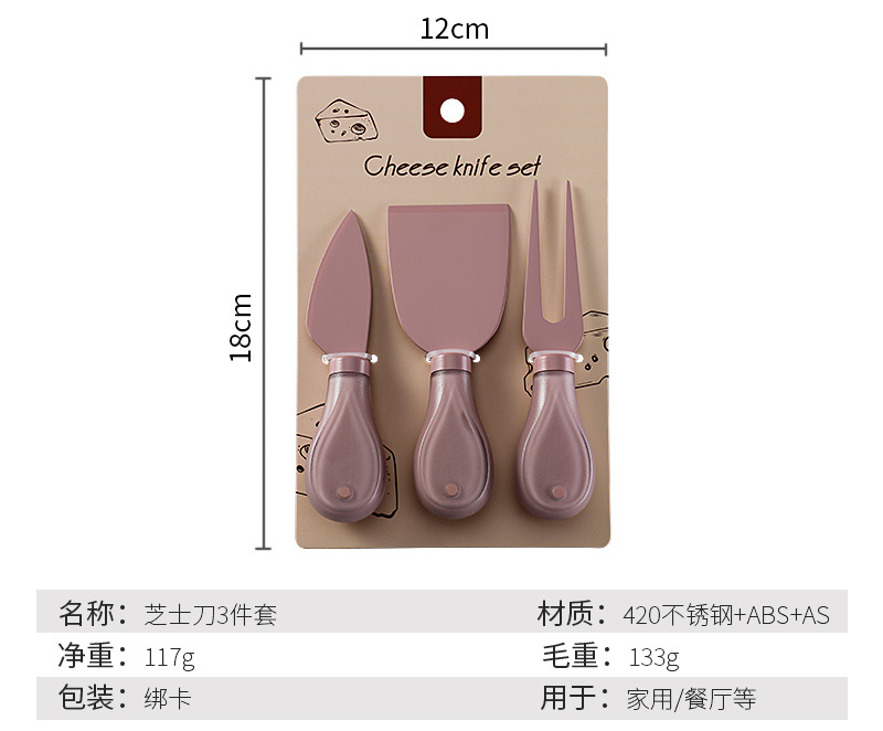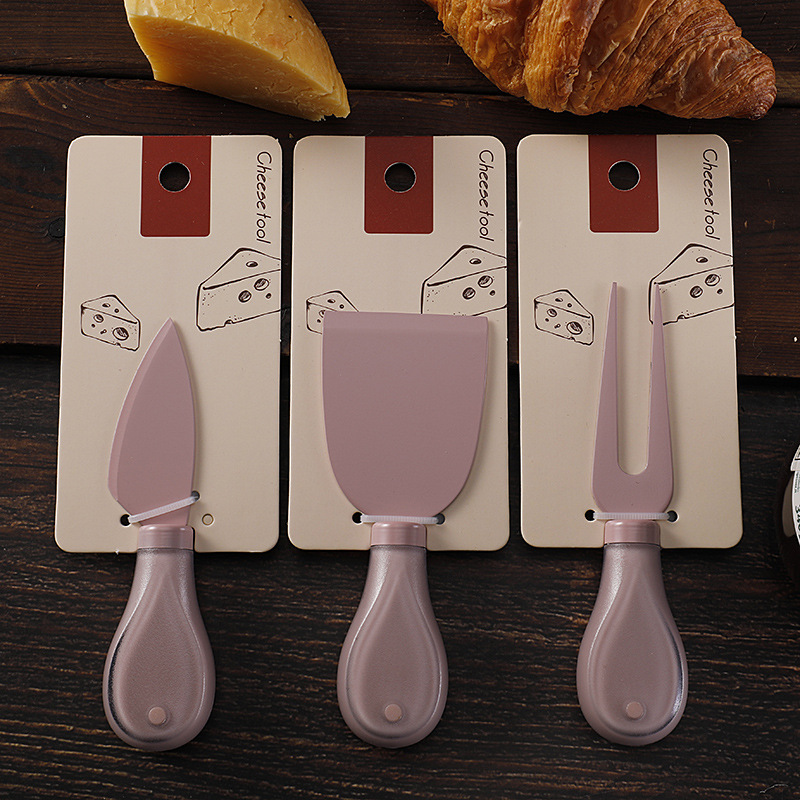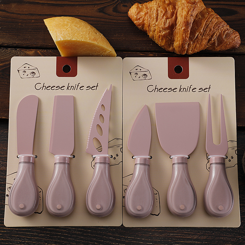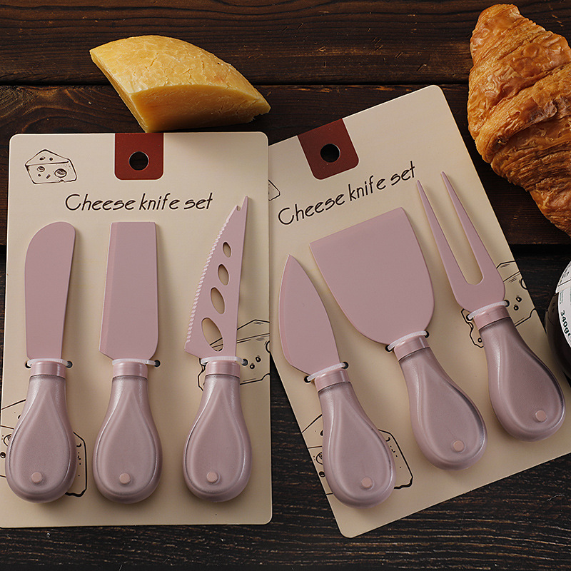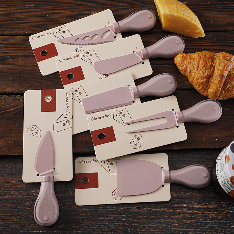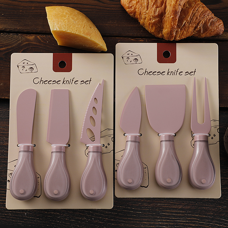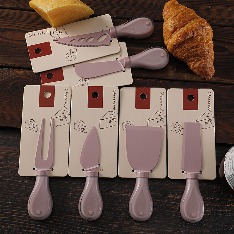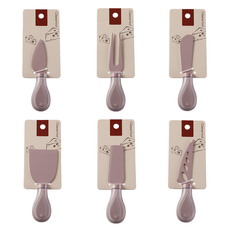 跨境奶酪刀具刀叉套装不锈钢彩色餐具绑卡包装芝士刀铲刀奶油抹刀