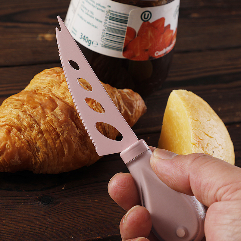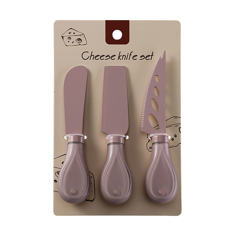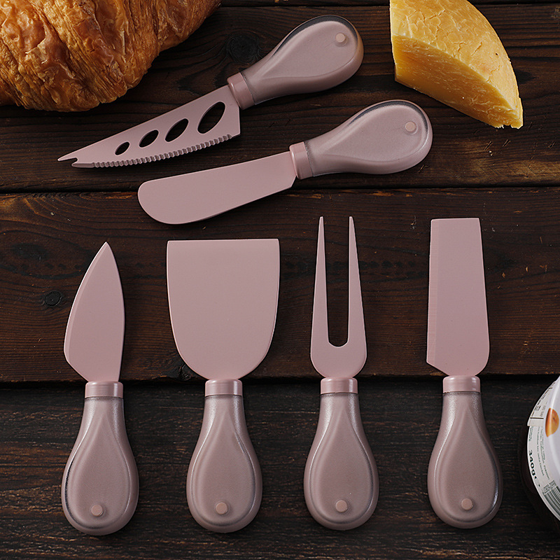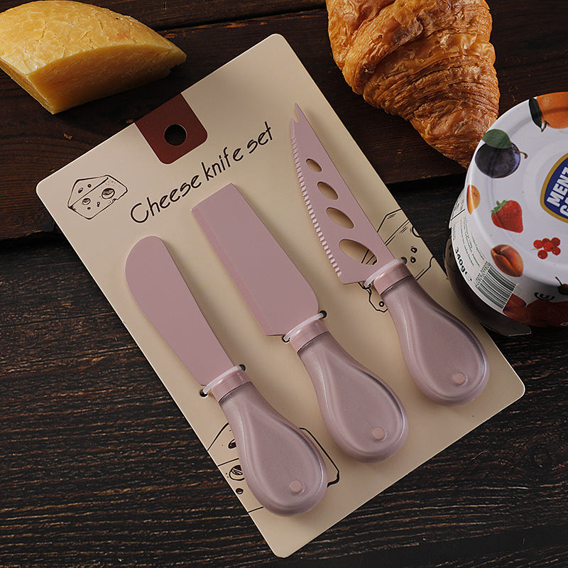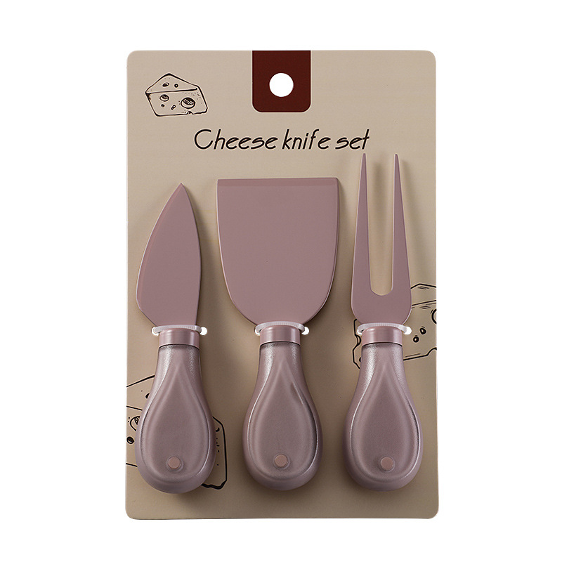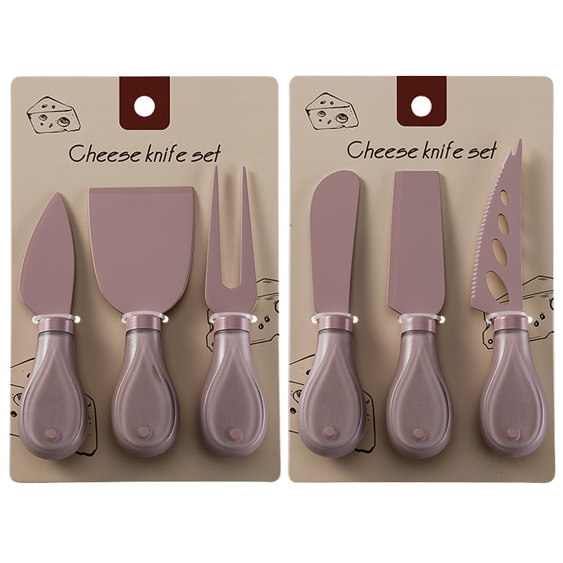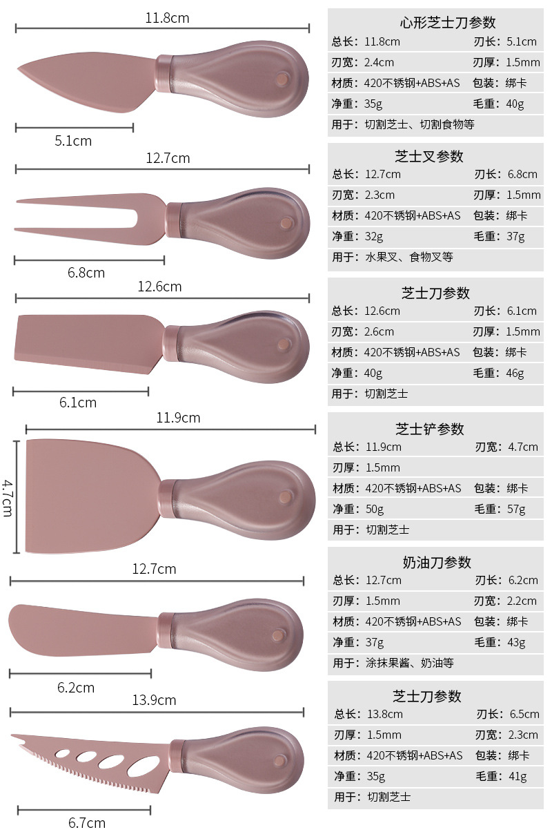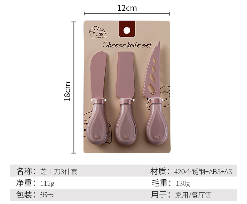 跨境奶酪刀具刀叉套装不锈钢彩色餐具绑卡包装芝士刀铲刀奶油抹刀