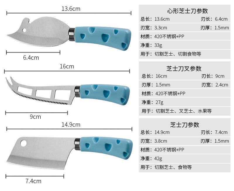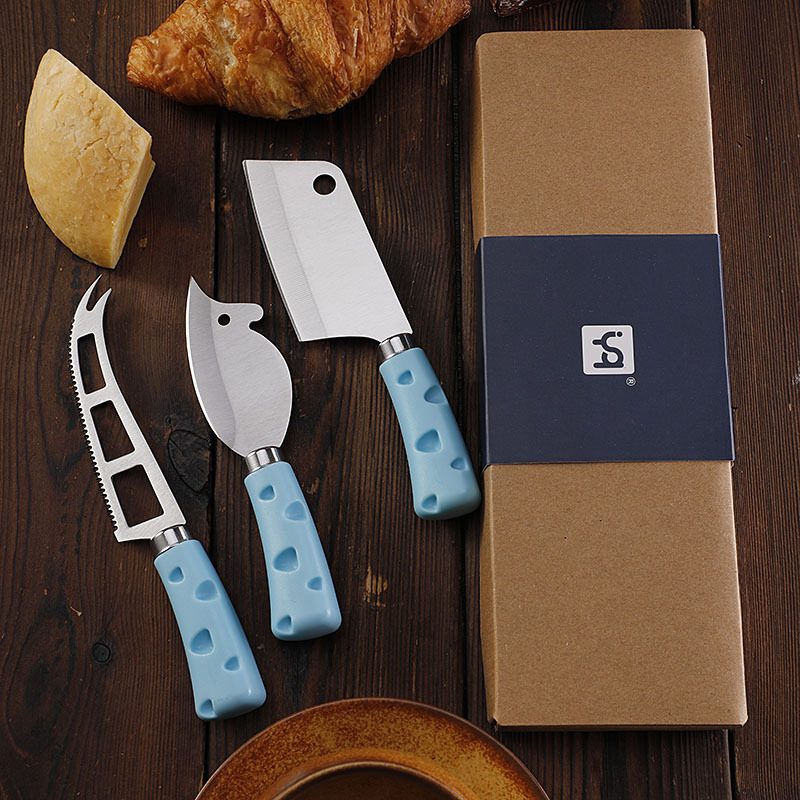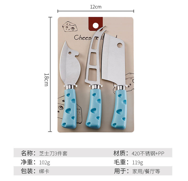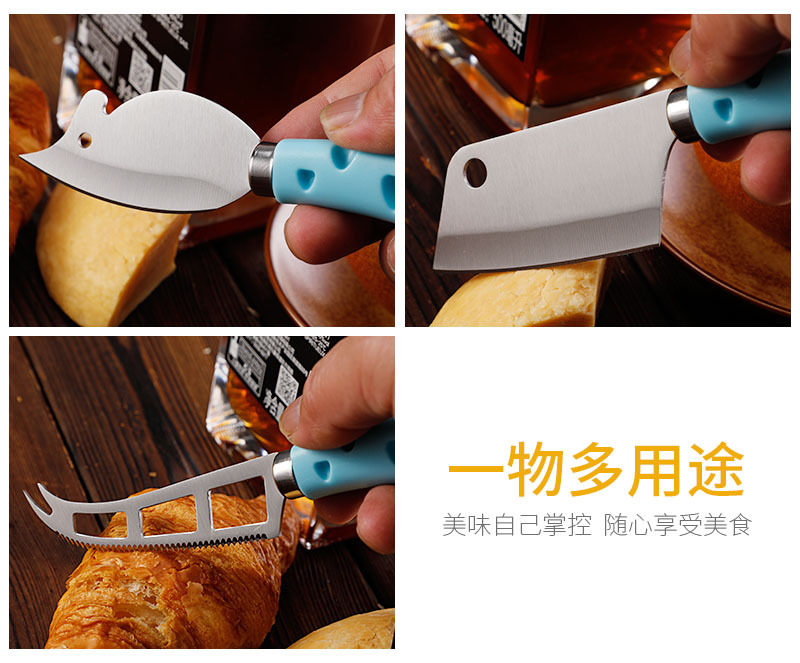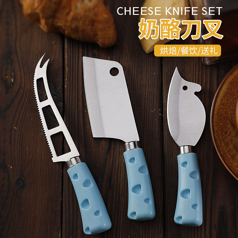跨境现化不锈钢奶酪刀具PP柄芝士刀三件套可爱老鼠刀割肉刀小菜刀
