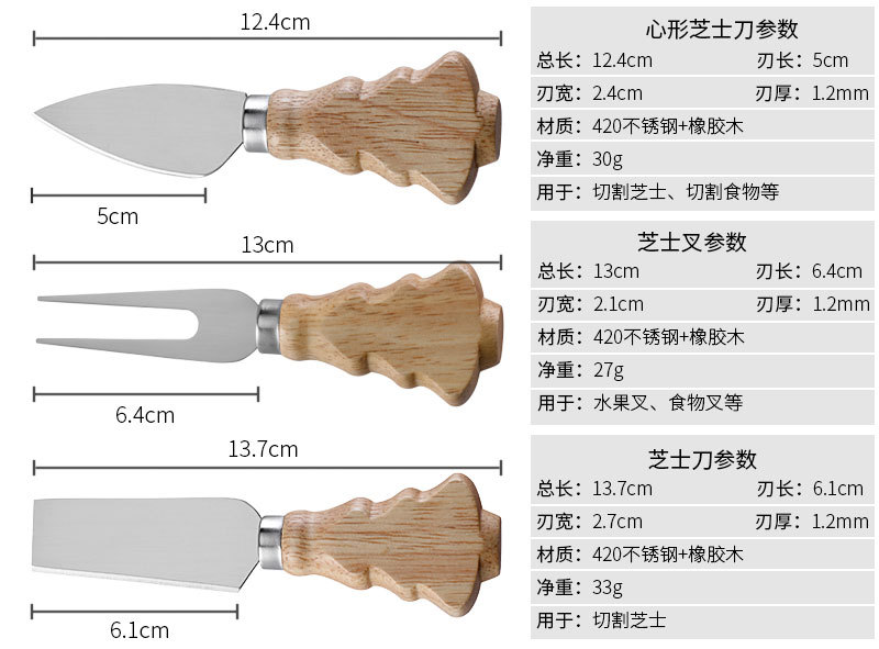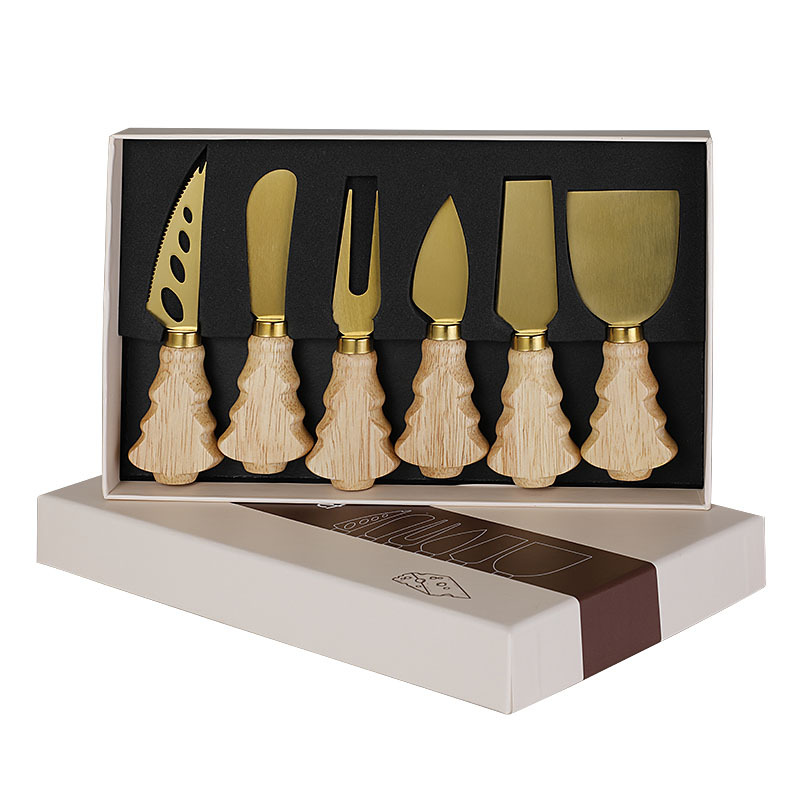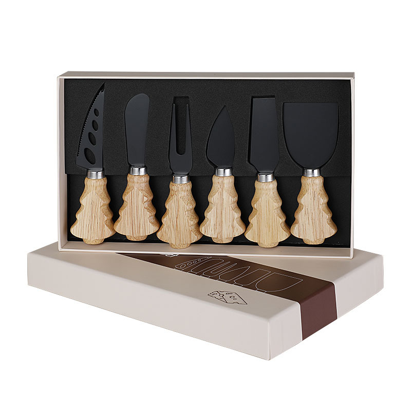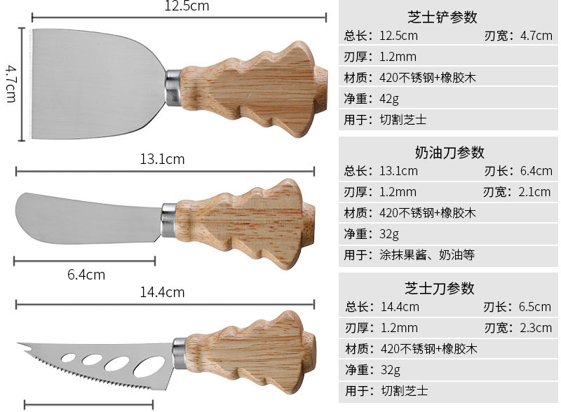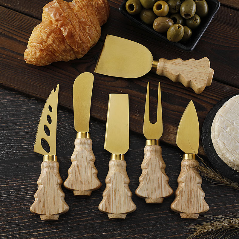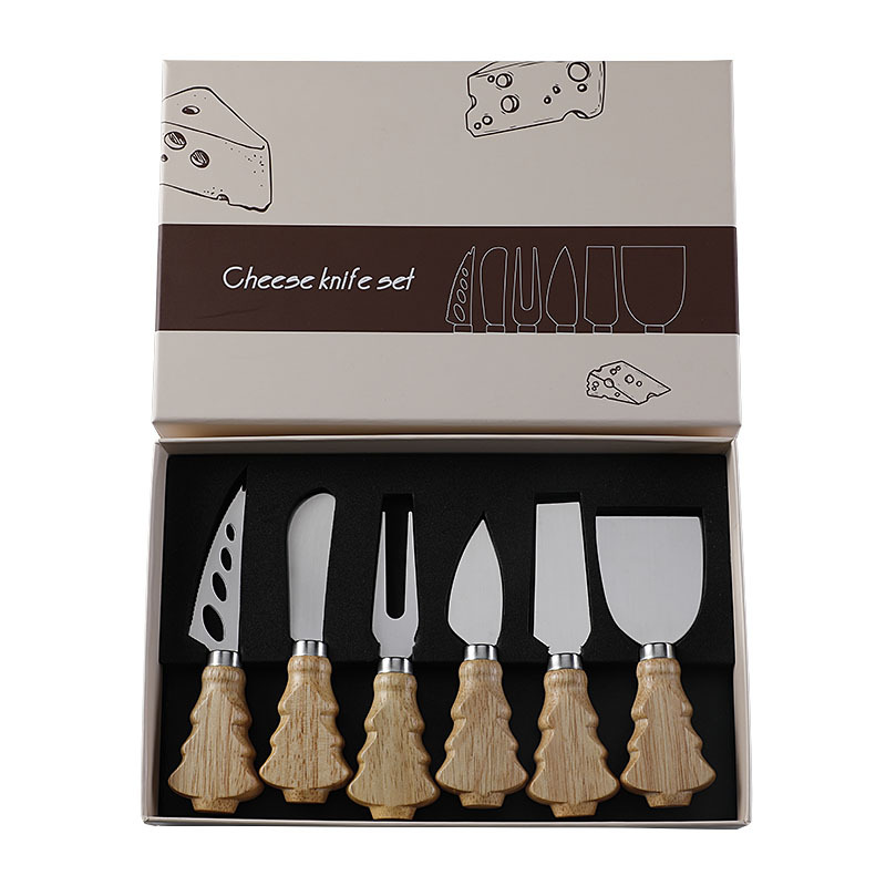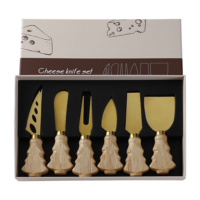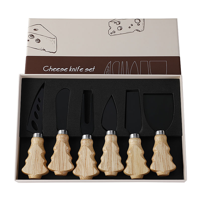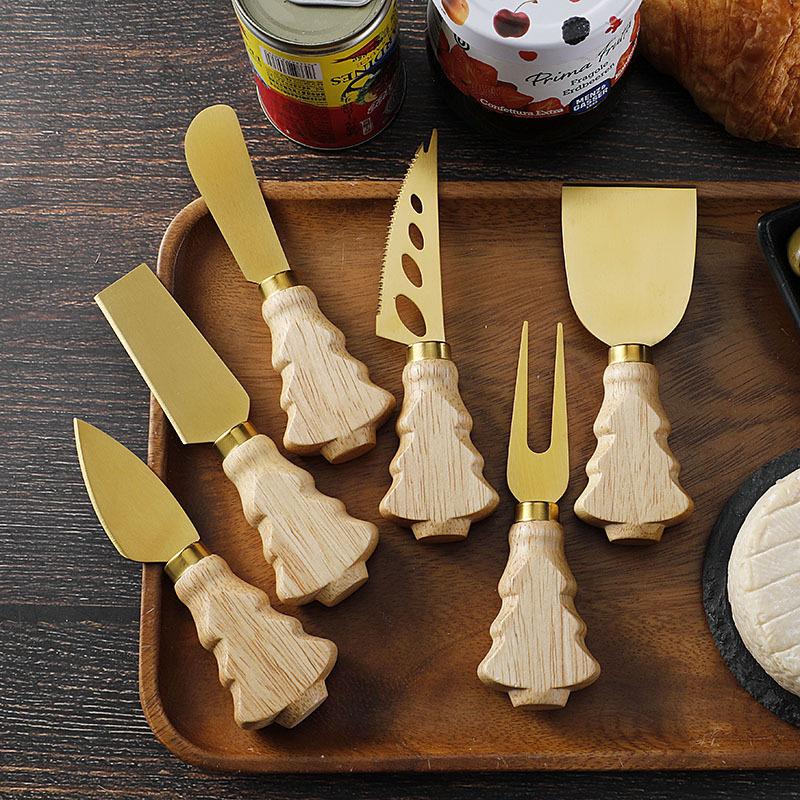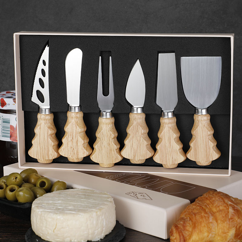 跨境西餐刀具圣诞树橡胶木柄奶酪刀黄油刀礼盒芝士刀套装6件套