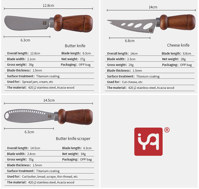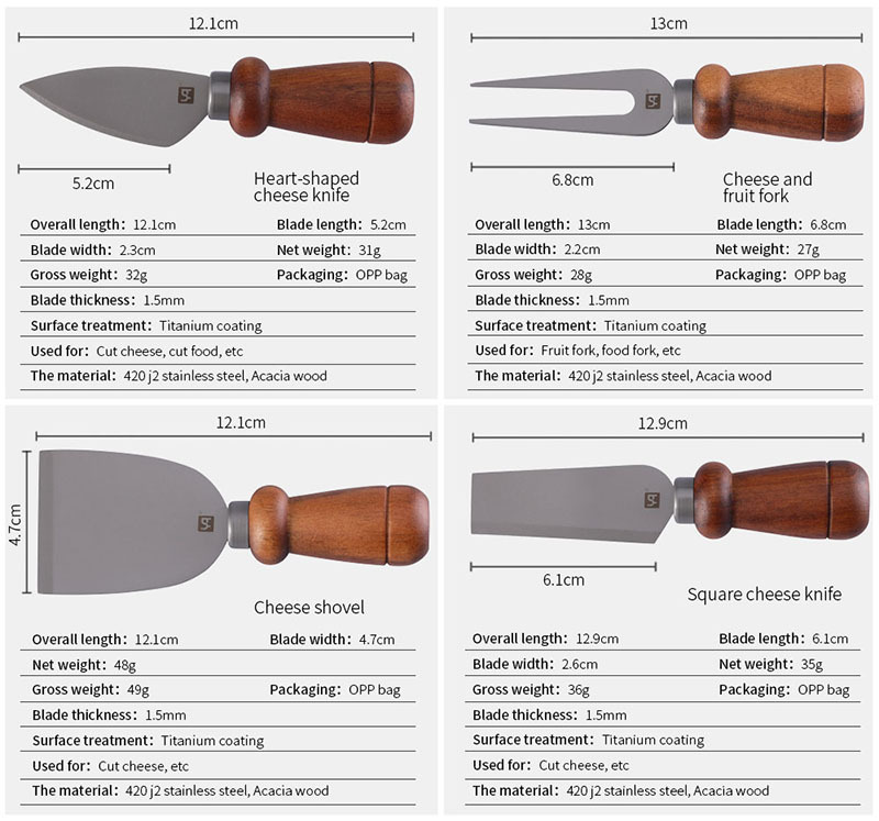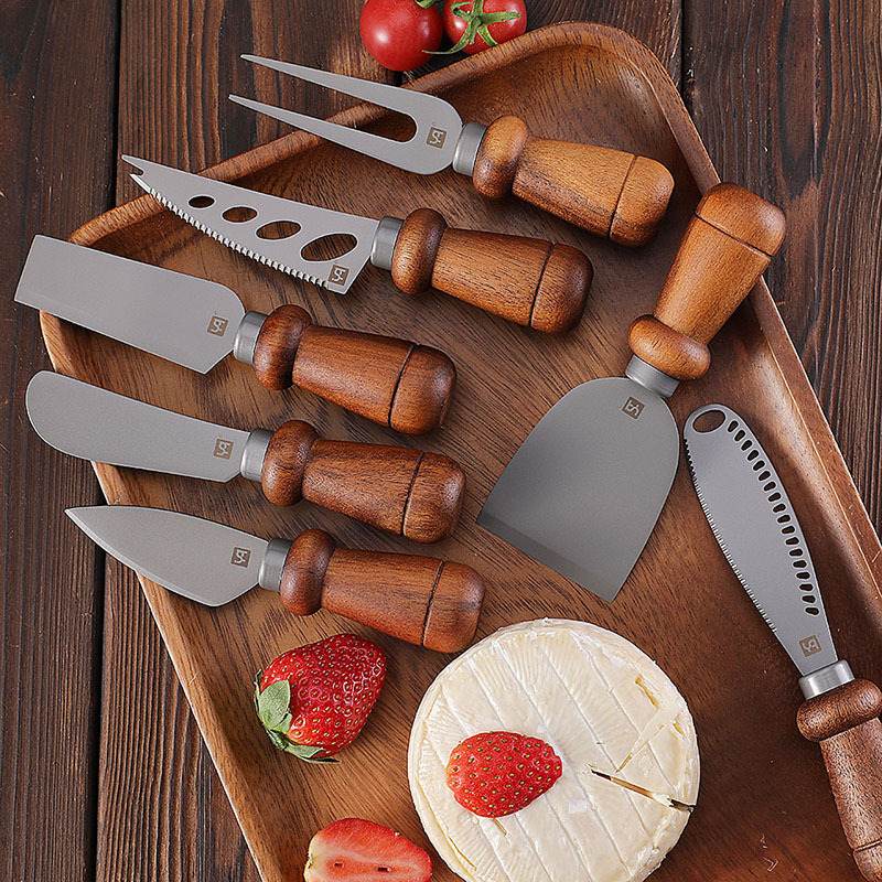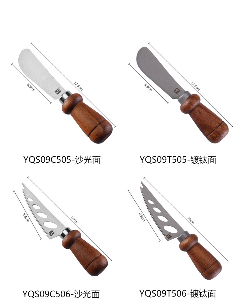 跨境现货高品质奶酪刀芝士刀相思木黄油切刀不锈钢芝士刀叉镀钛