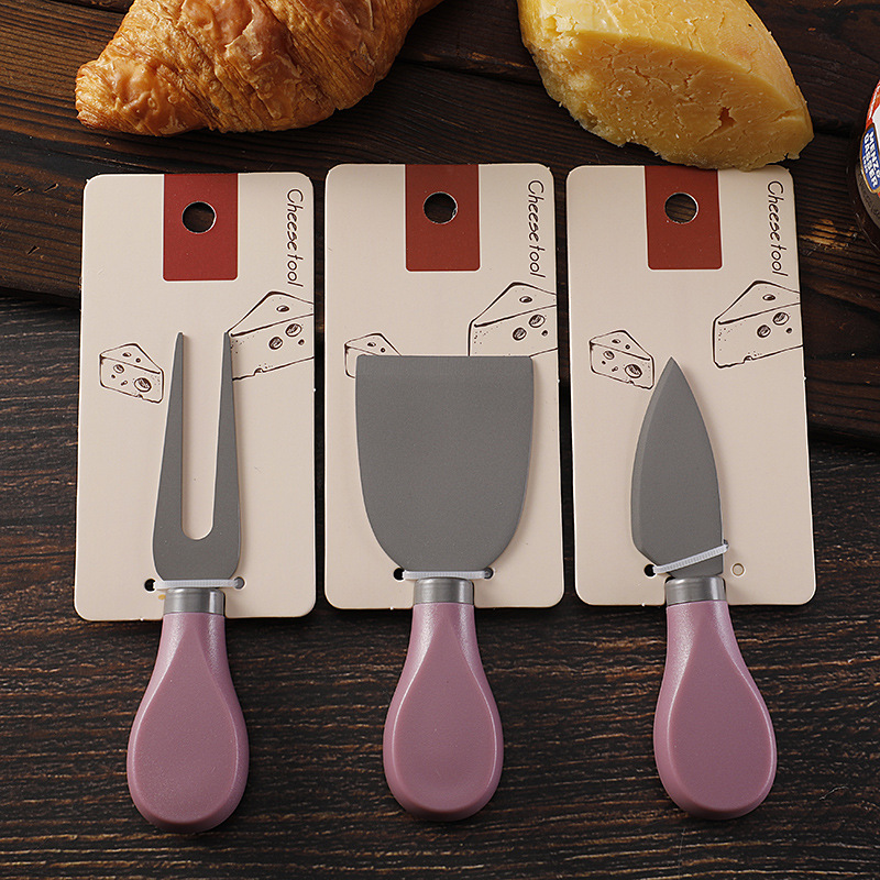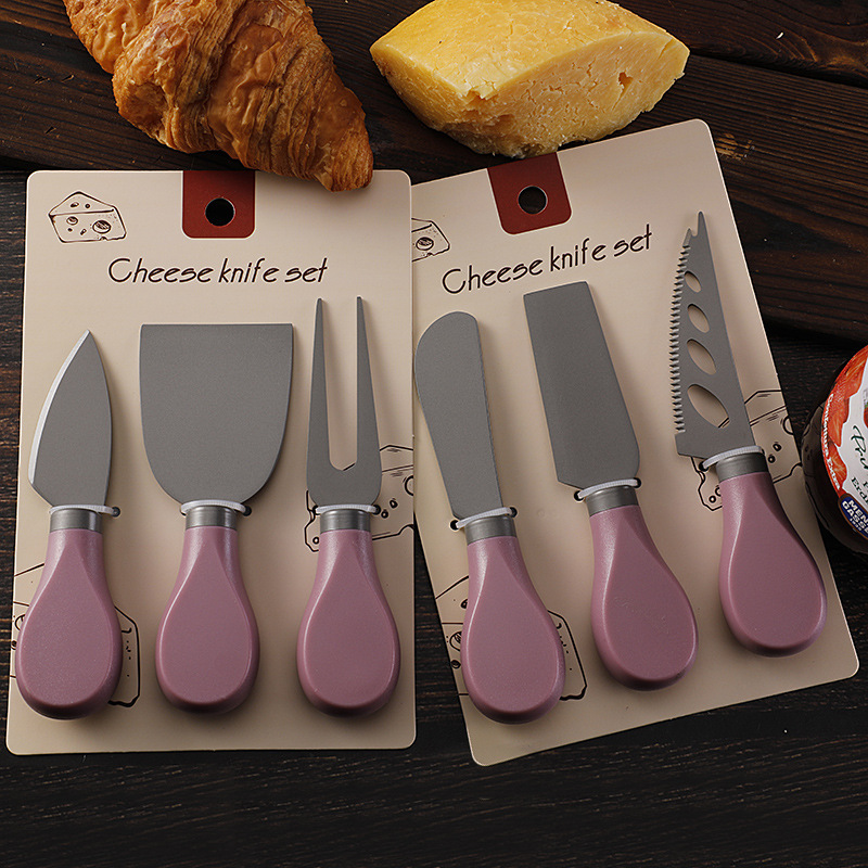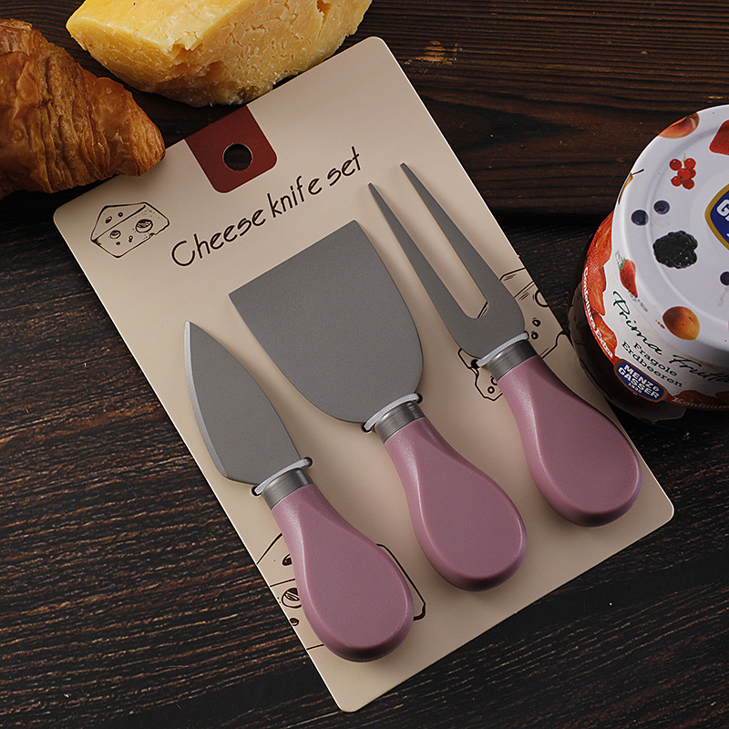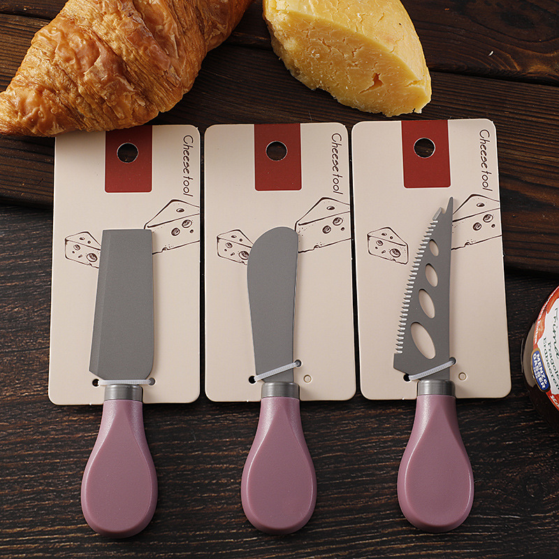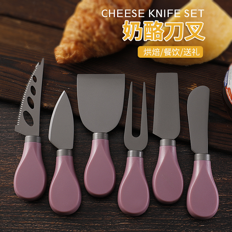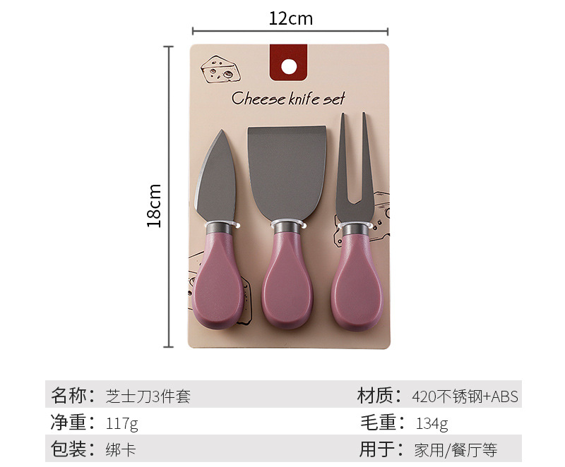 跨境现货不锈钢镀钛芝士刀ABS柄奶酪刀叉铲子三件套装黄油刀餐刀