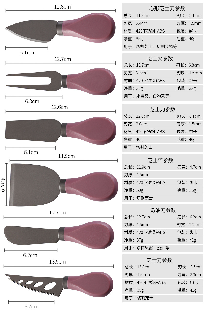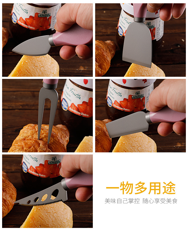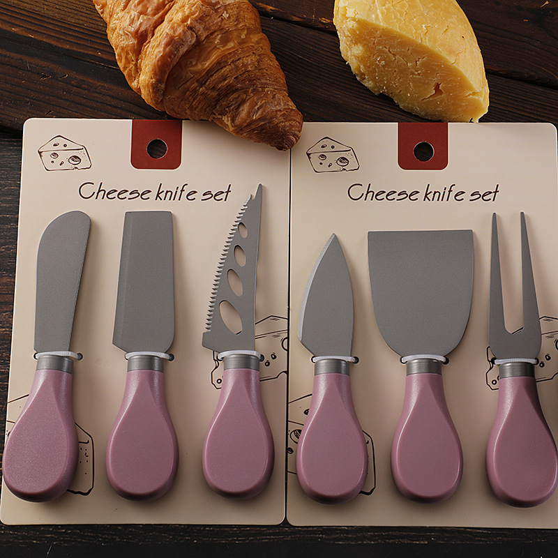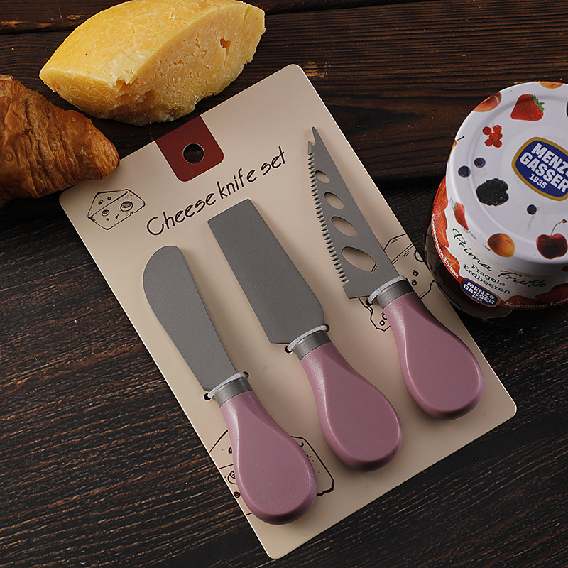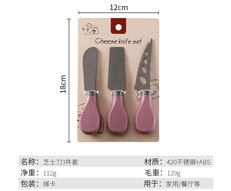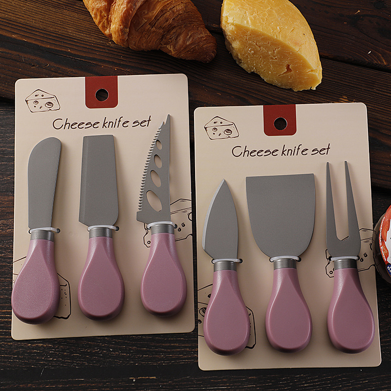 跨境现货不锈钢镀钛芝士刀ABS柄奶酪刀叉铲子三件套装黄油刀餐刀
