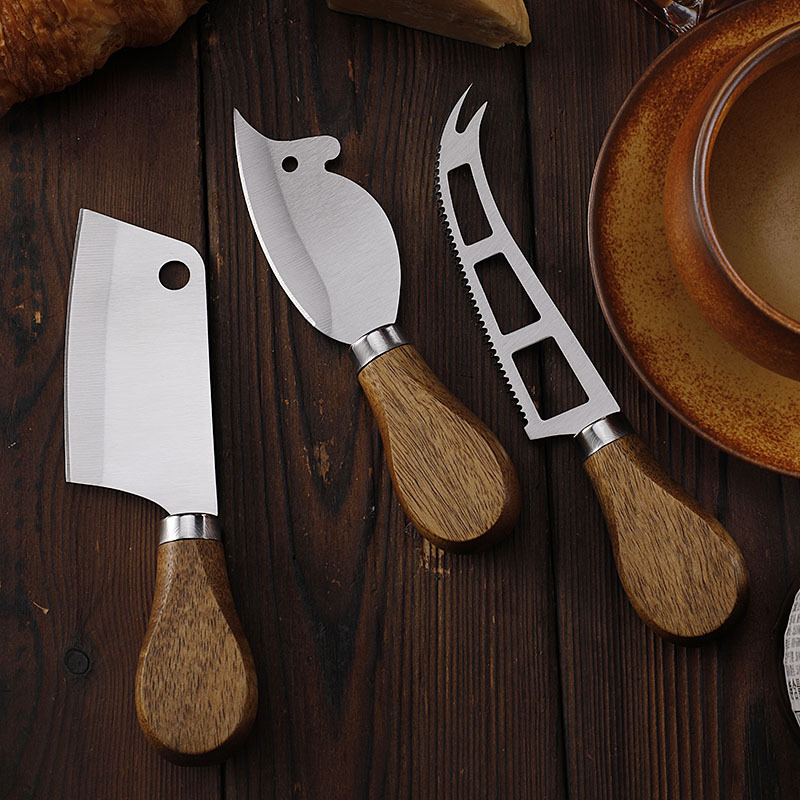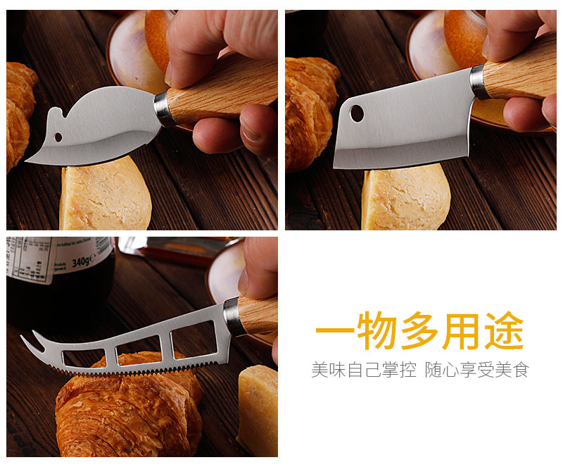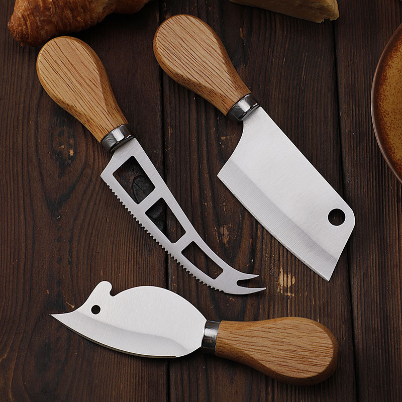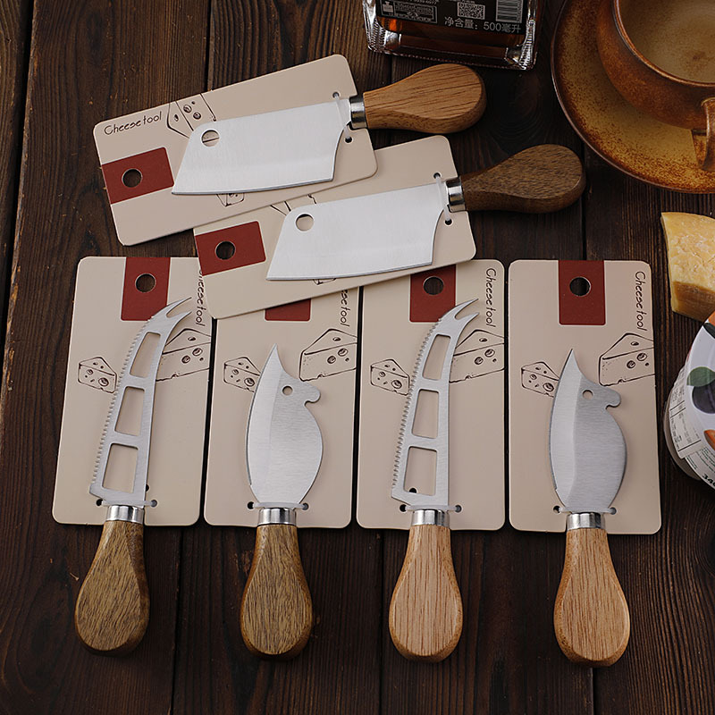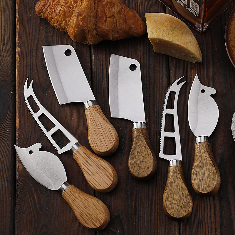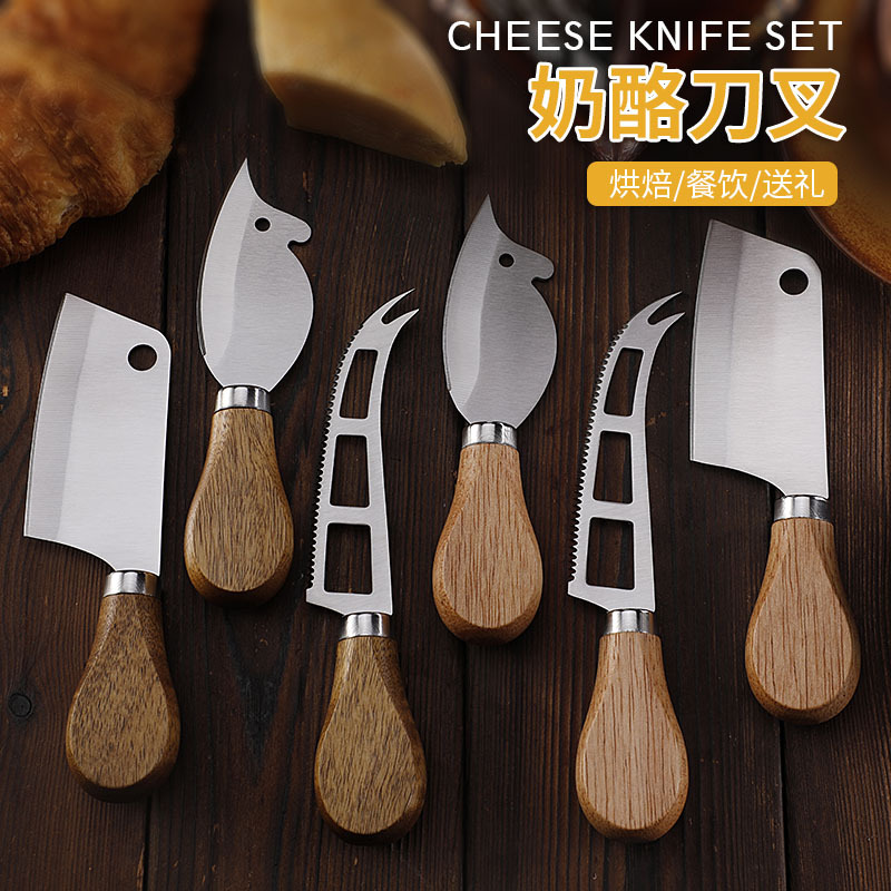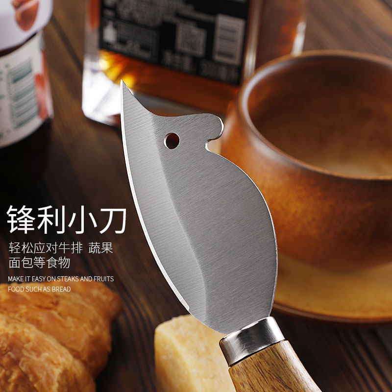 跨境现货不锈钢小菜刀面包刀牙刀牛扒刀木柄芝士刀套装老鼠奶酪刀