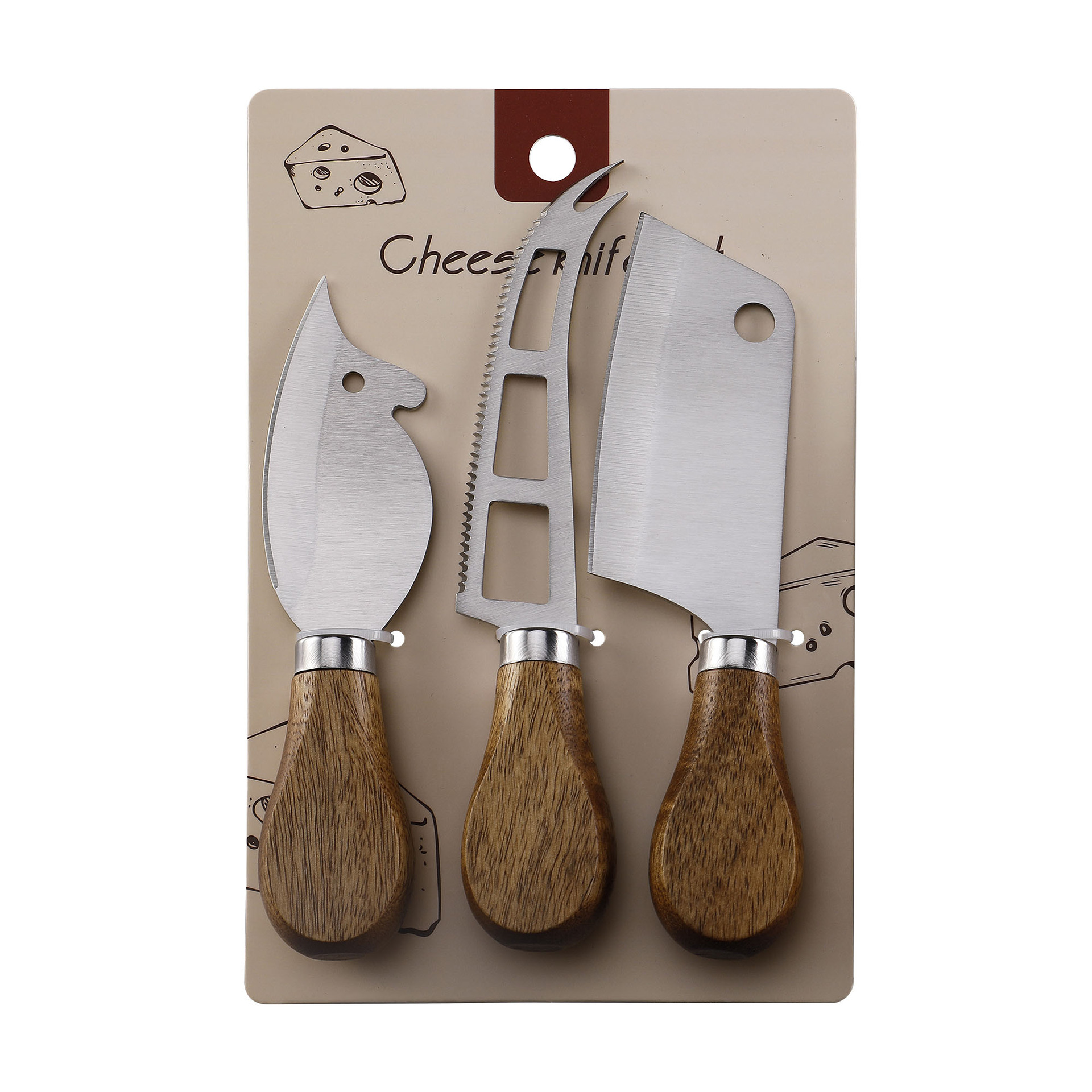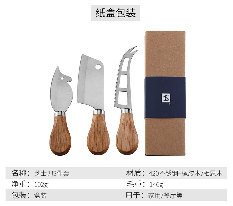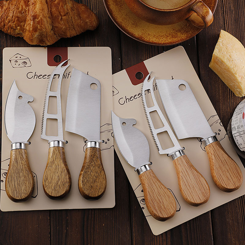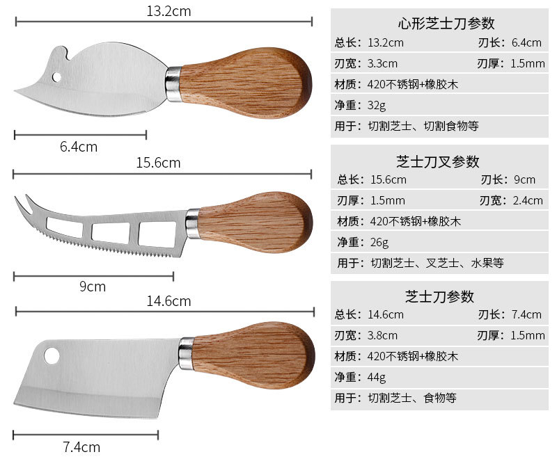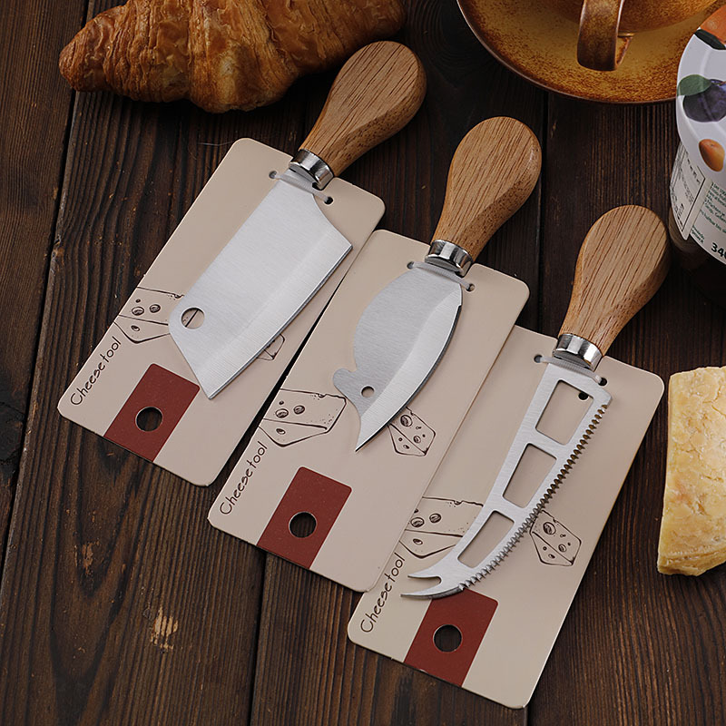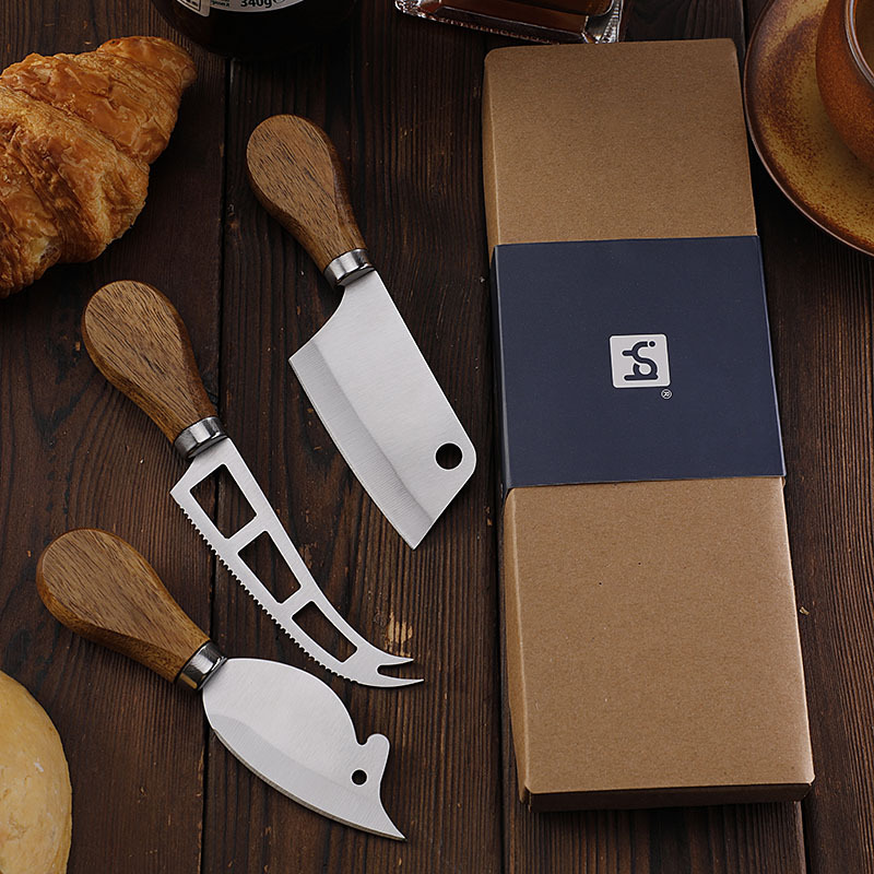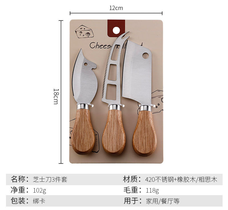跨境现货不锈钢小菜刀面包刀牙刀牛扒刀木柄芝士刀套装老鼠奶酪刀