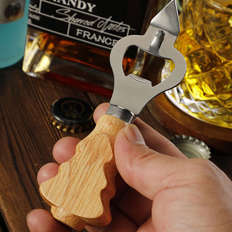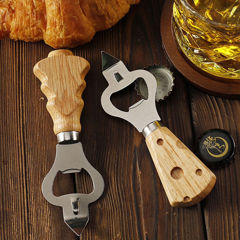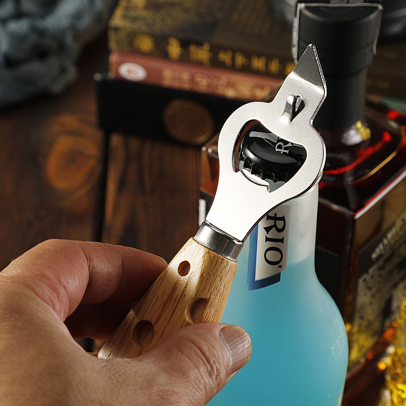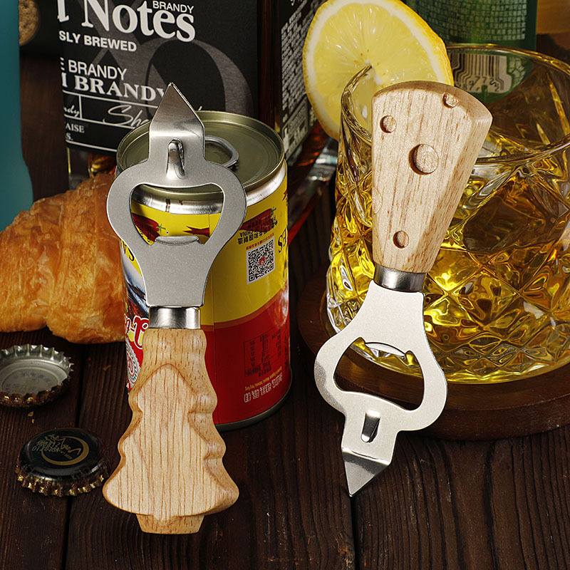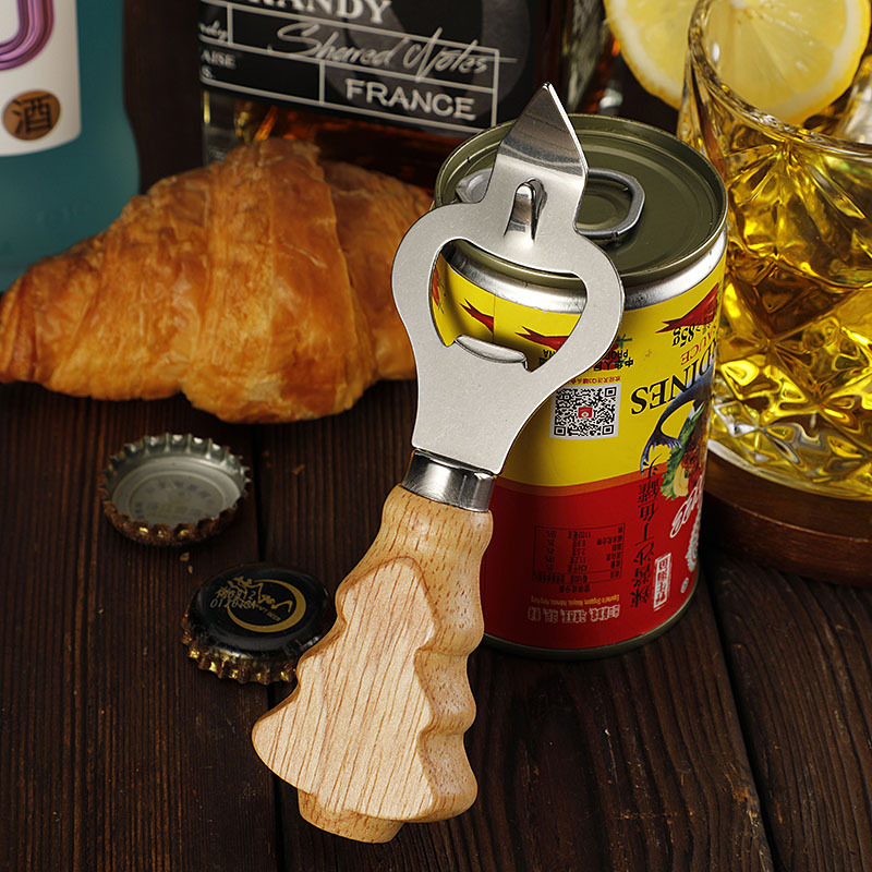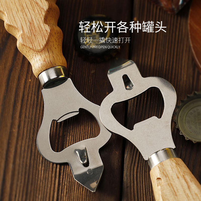 工厂现货多功能不锈钢开瓶器创意橡胶木柄啤酒开起子开罐器开盖器