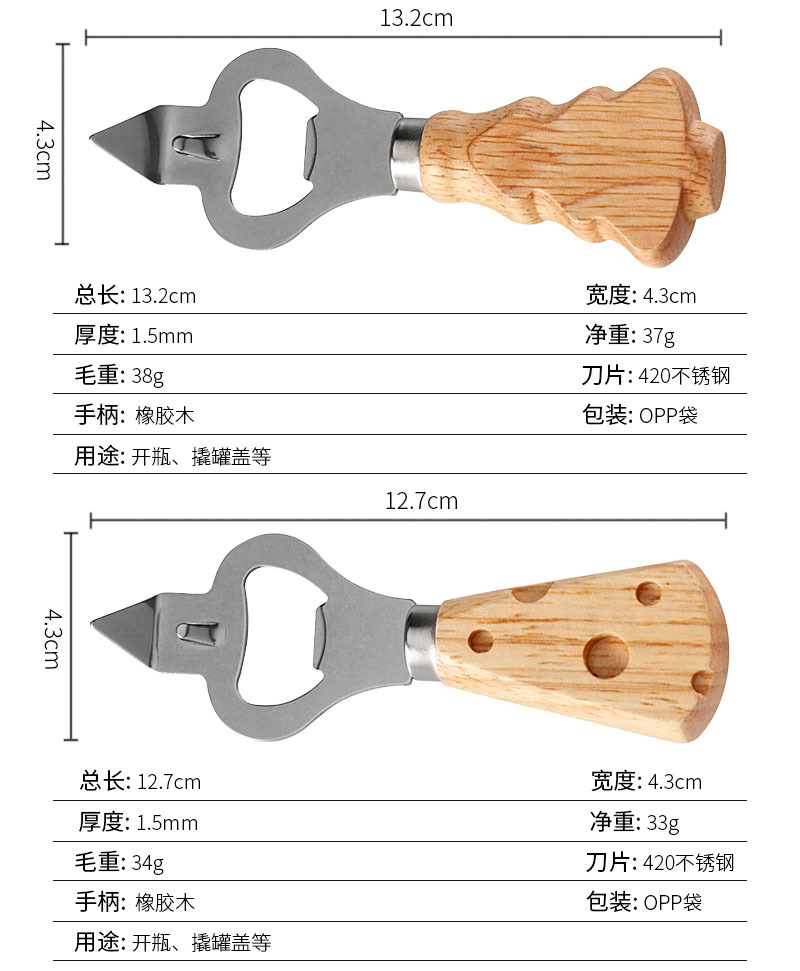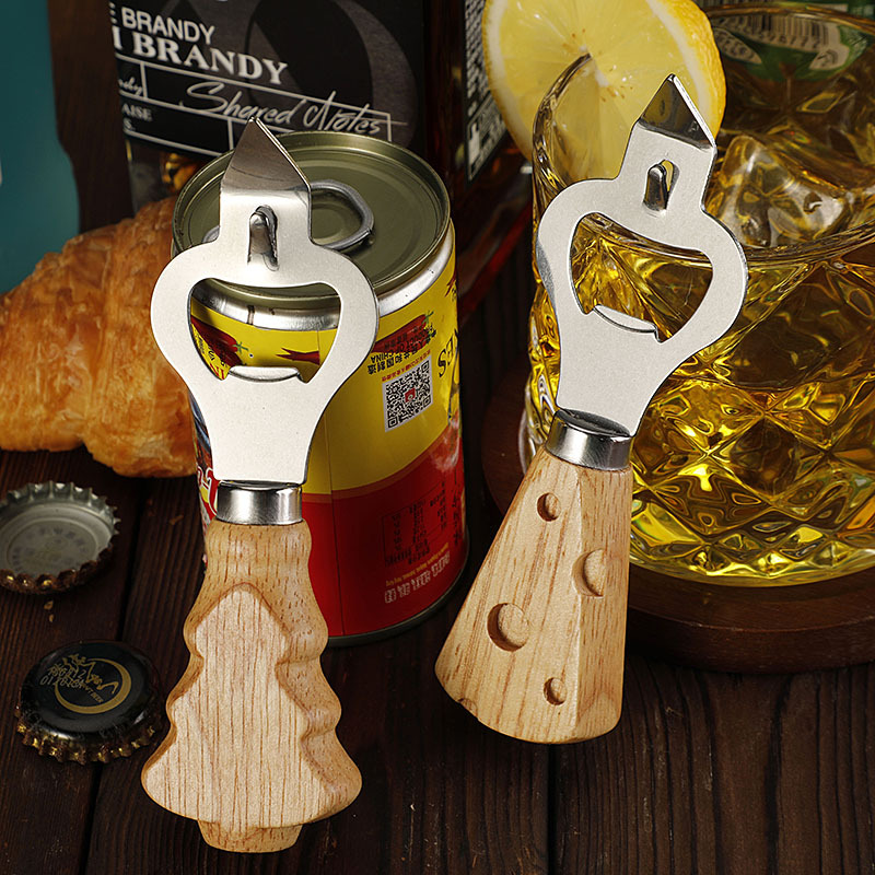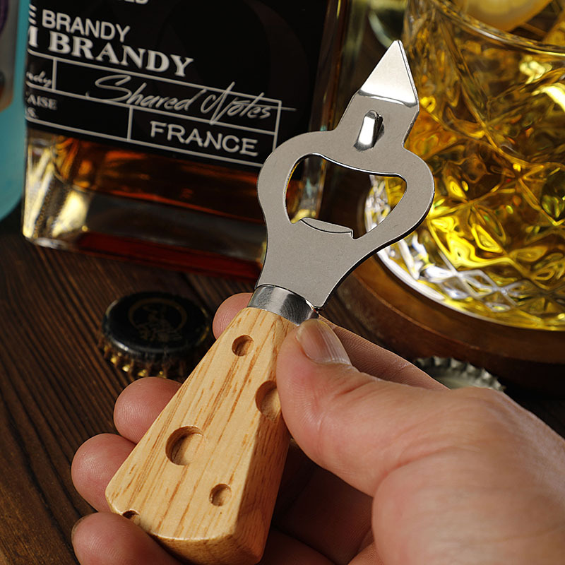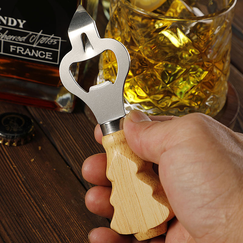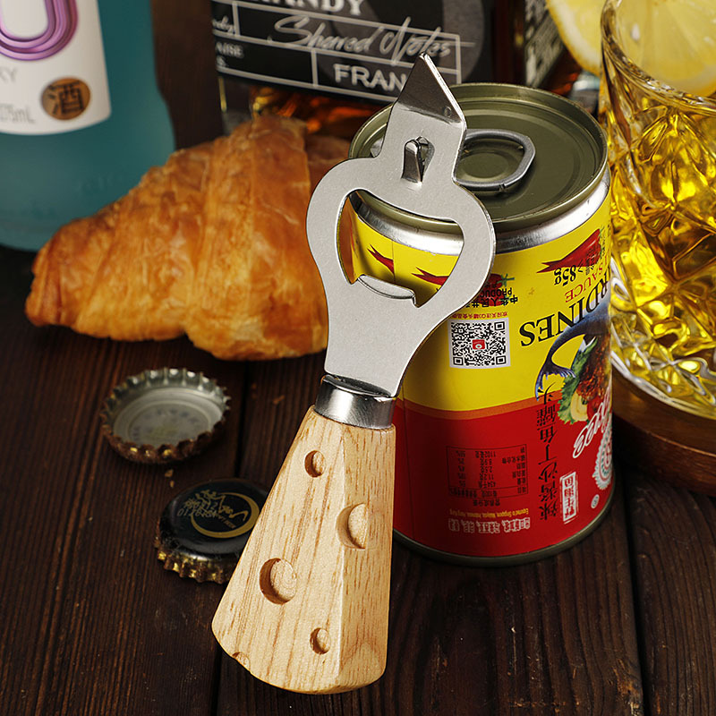 工厂现货多功能不锈钢开瓶器创意橡胶木柄啤酒开起子开罐器开盖器