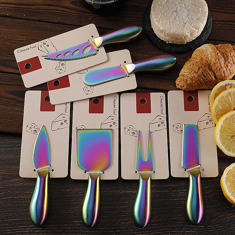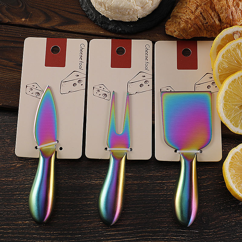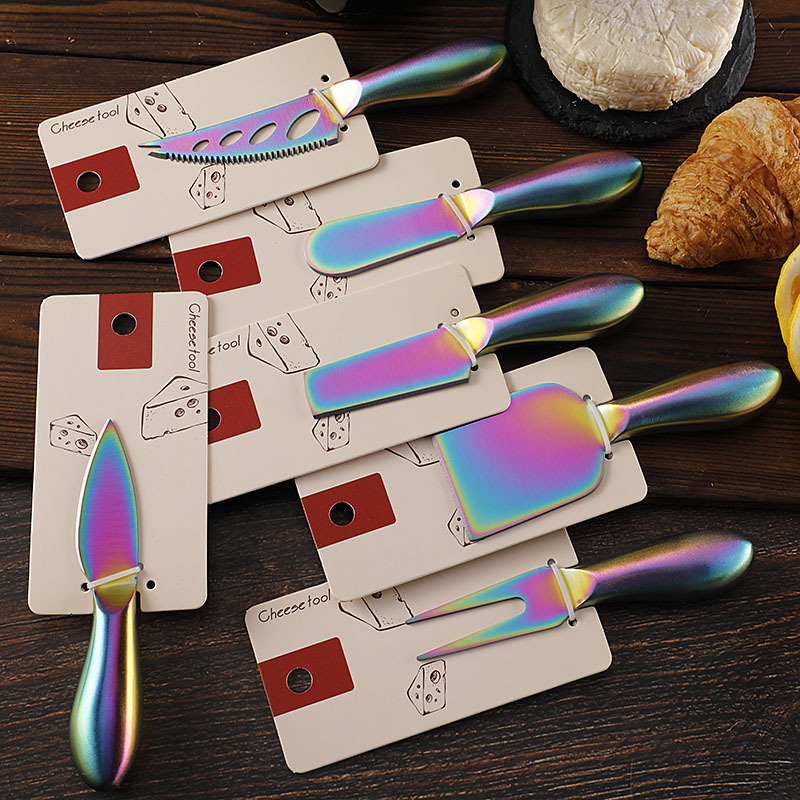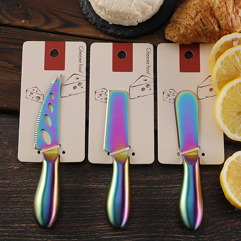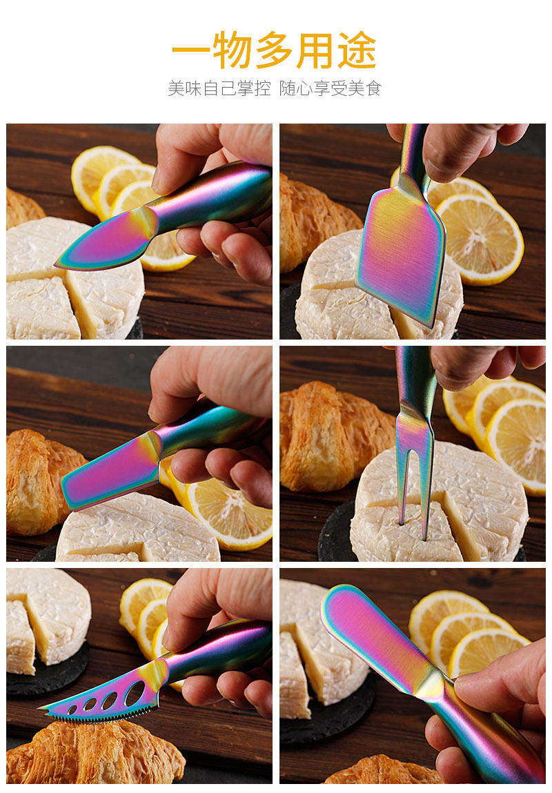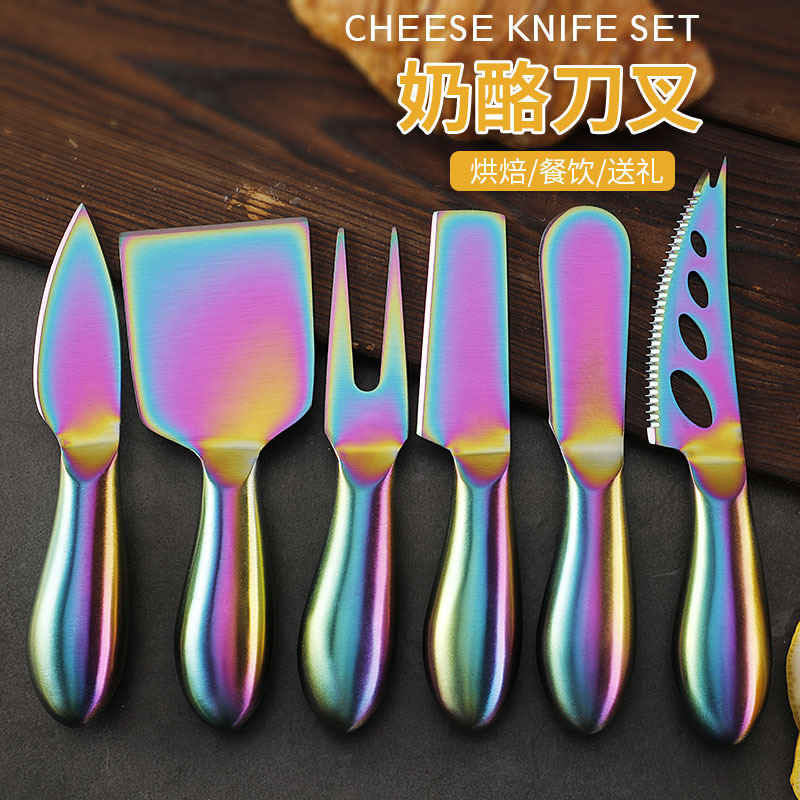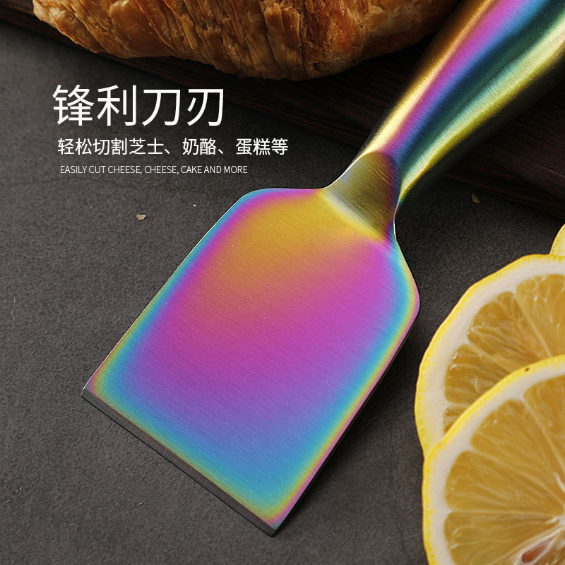 工厂现货不锈钢奶酪刀叉铲刀空心柄彩钛芝士刀西餐刀具黄油刀抺刀