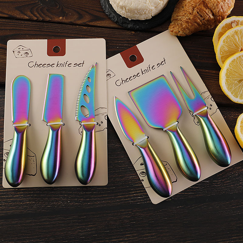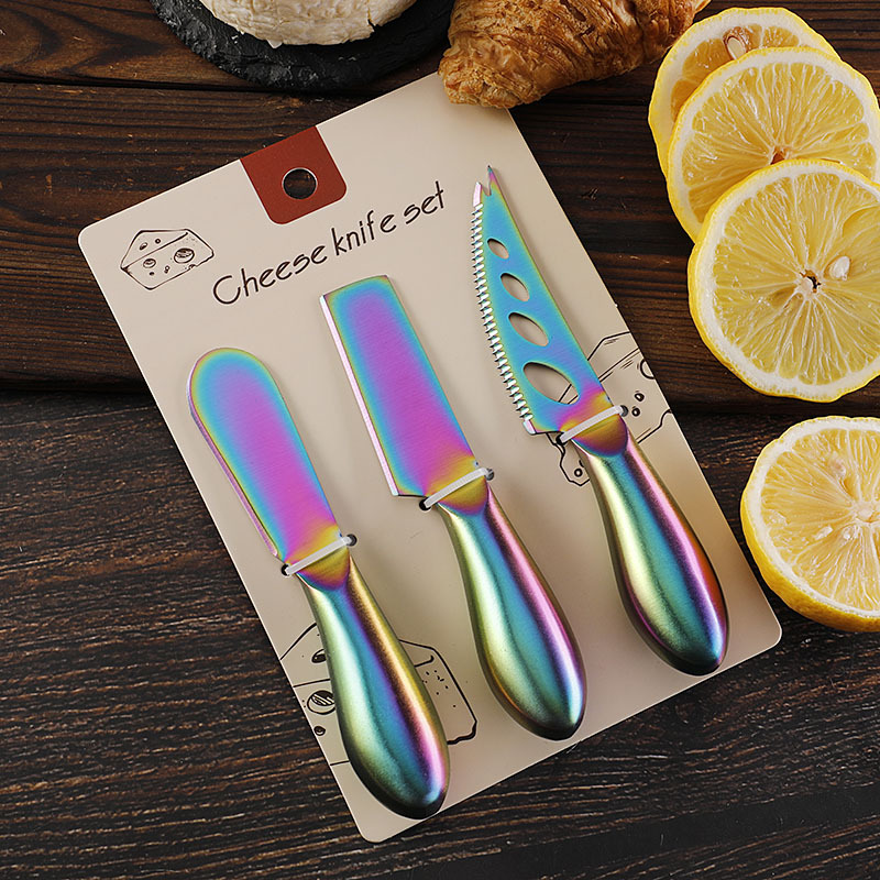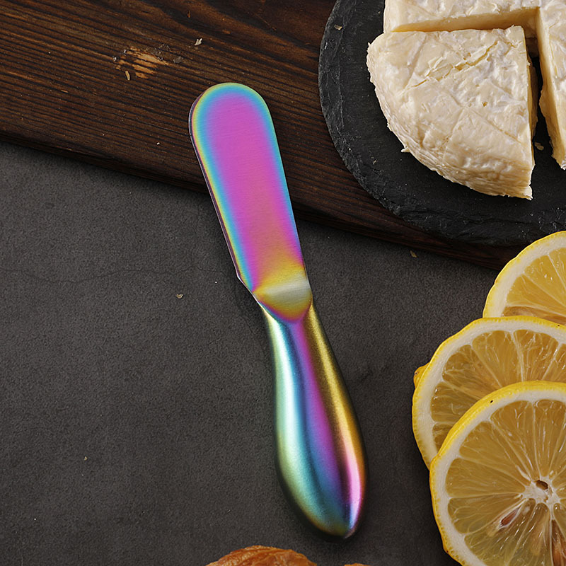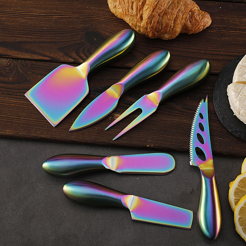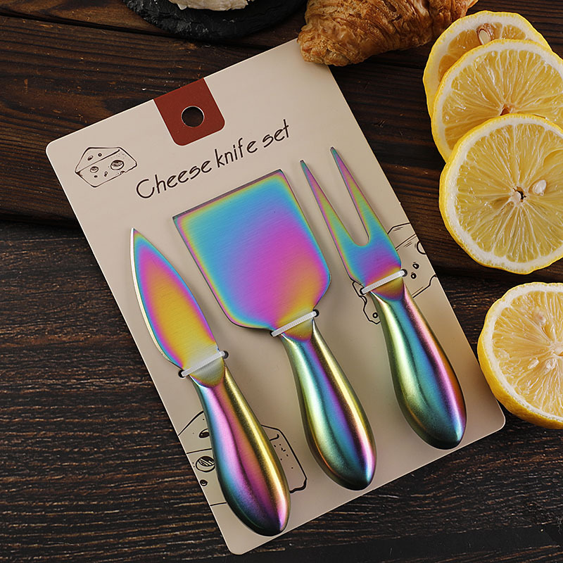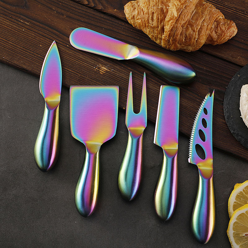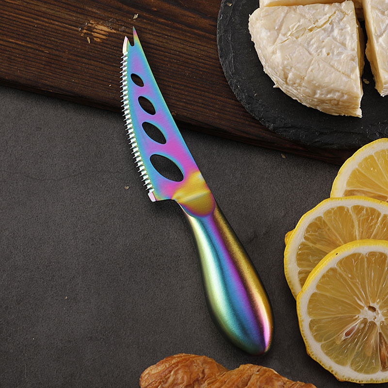 工厂现货不锈钢奶酪刀叉铲刀空心柄彩钛芝士刀西餐刀具黄油刀抺刀
