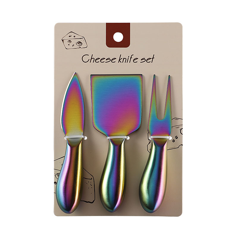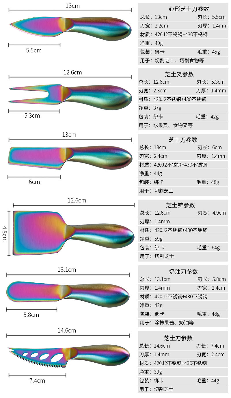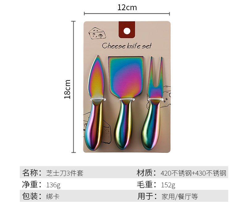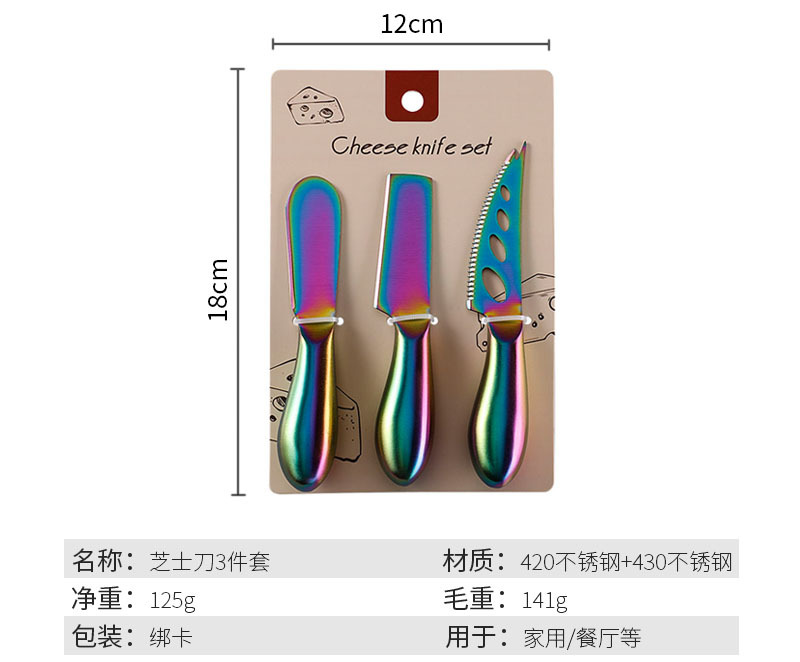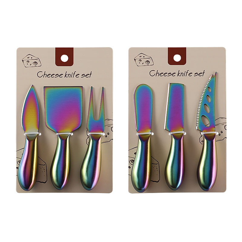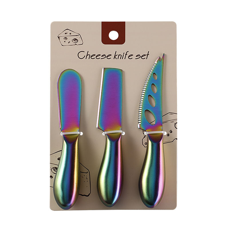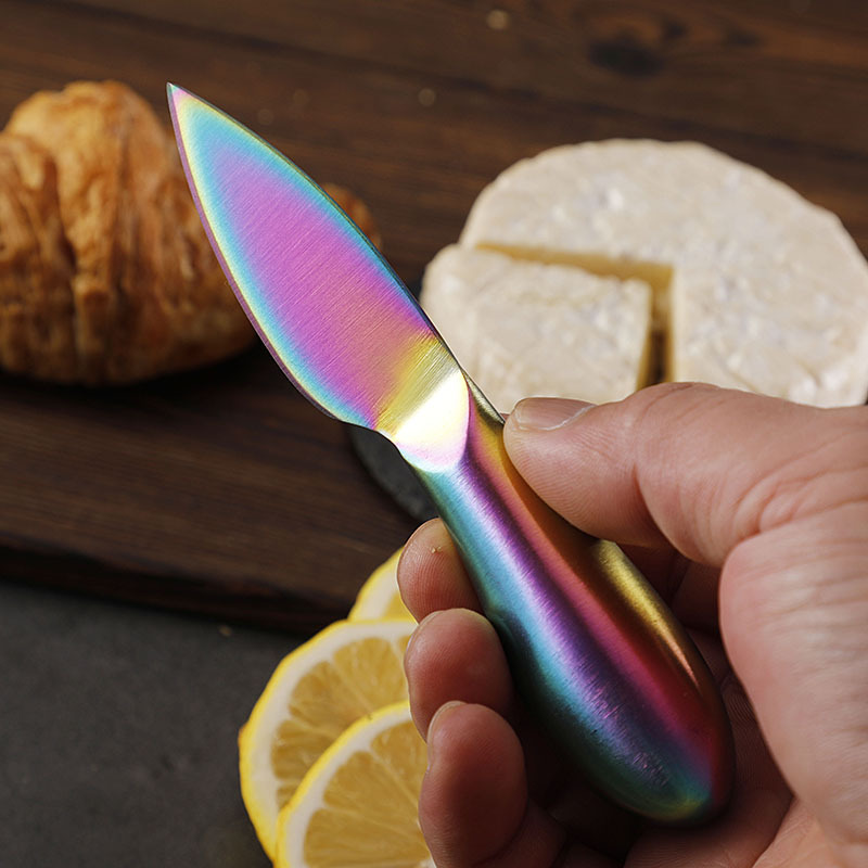 工厂现货不锈钢奶酪刀叉铲刀空心柄彩钛芝士刀西餐刀具黄油刀抺刀