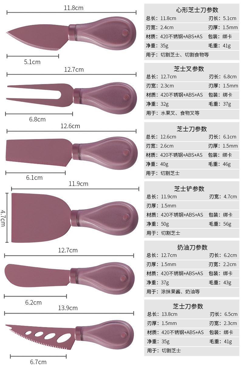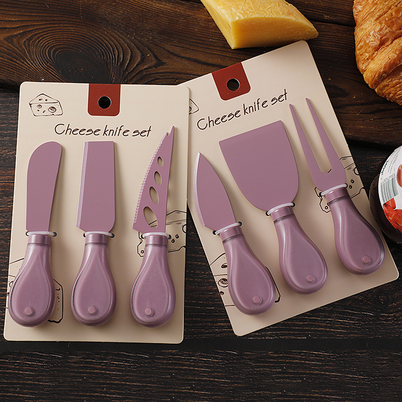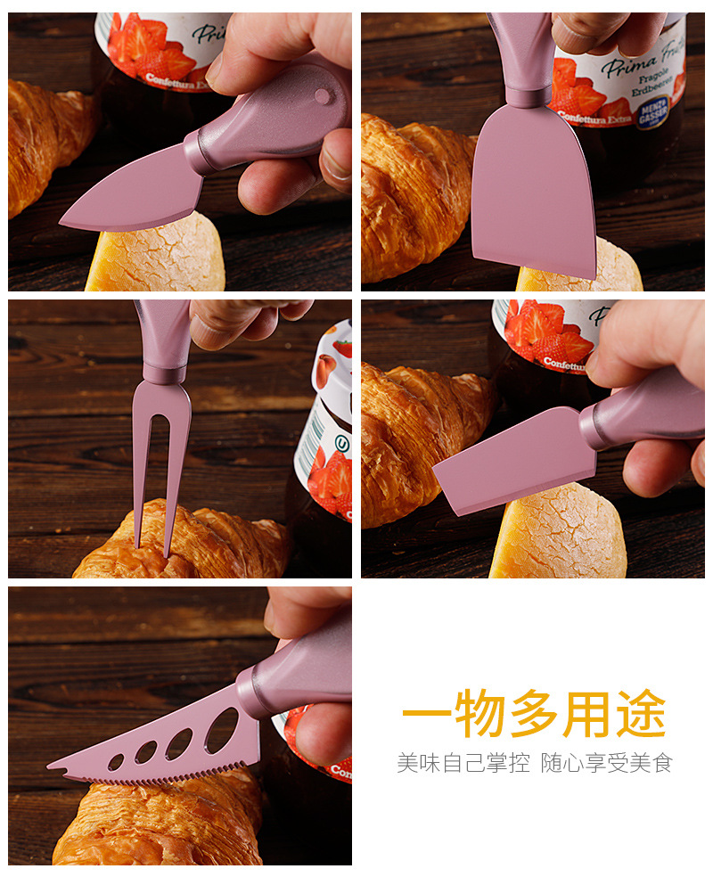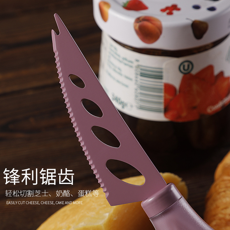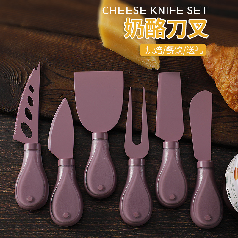 跨境新款不锈钢不沾涂层奶酪工具芝士刀水果刀叉套装餐具黄油刀