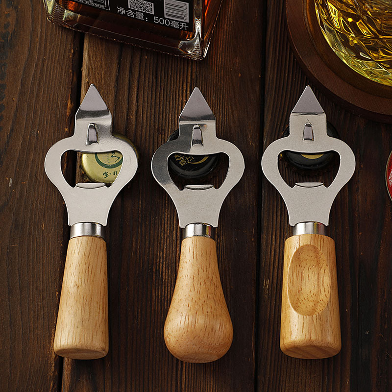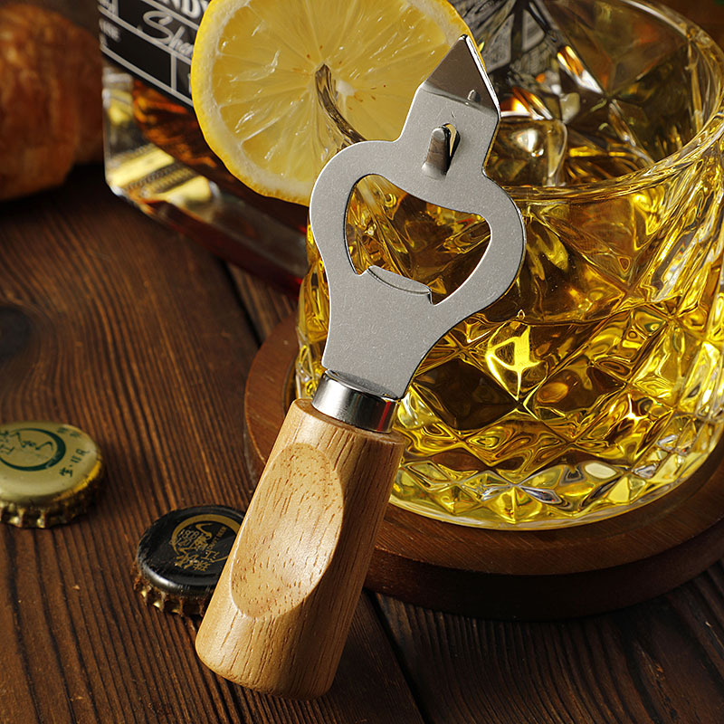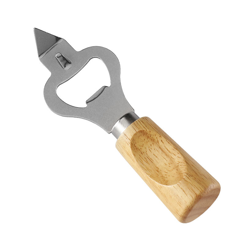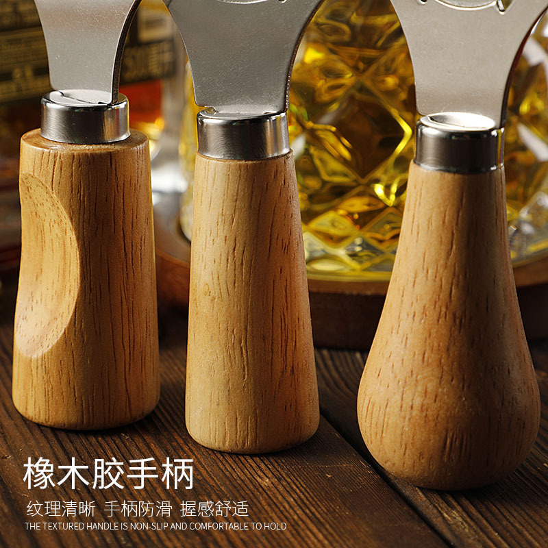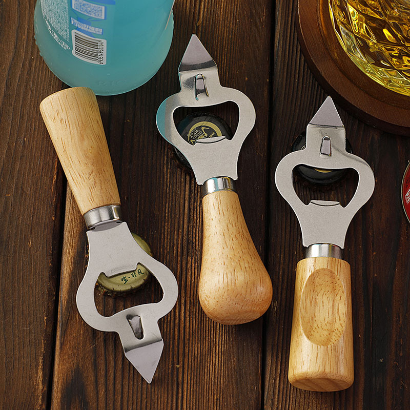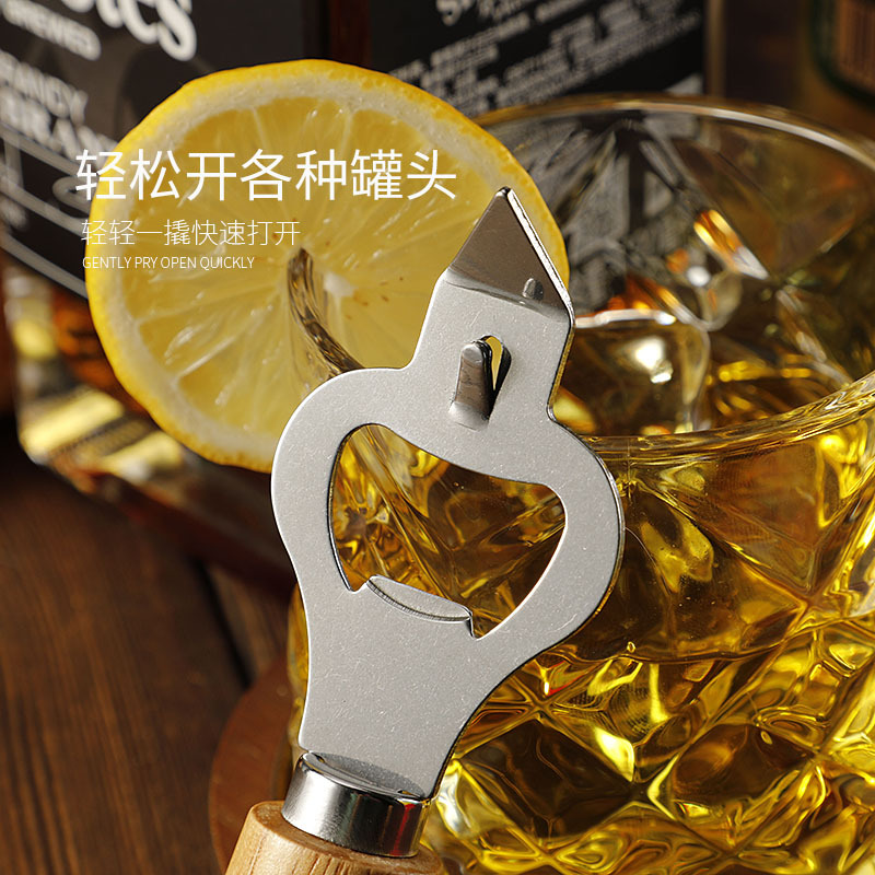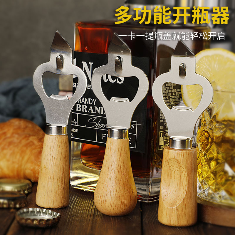 现货可立不锈钢多功能啤酒开瓶器启瓶器 橡胶木柄开罐器可印LOGO