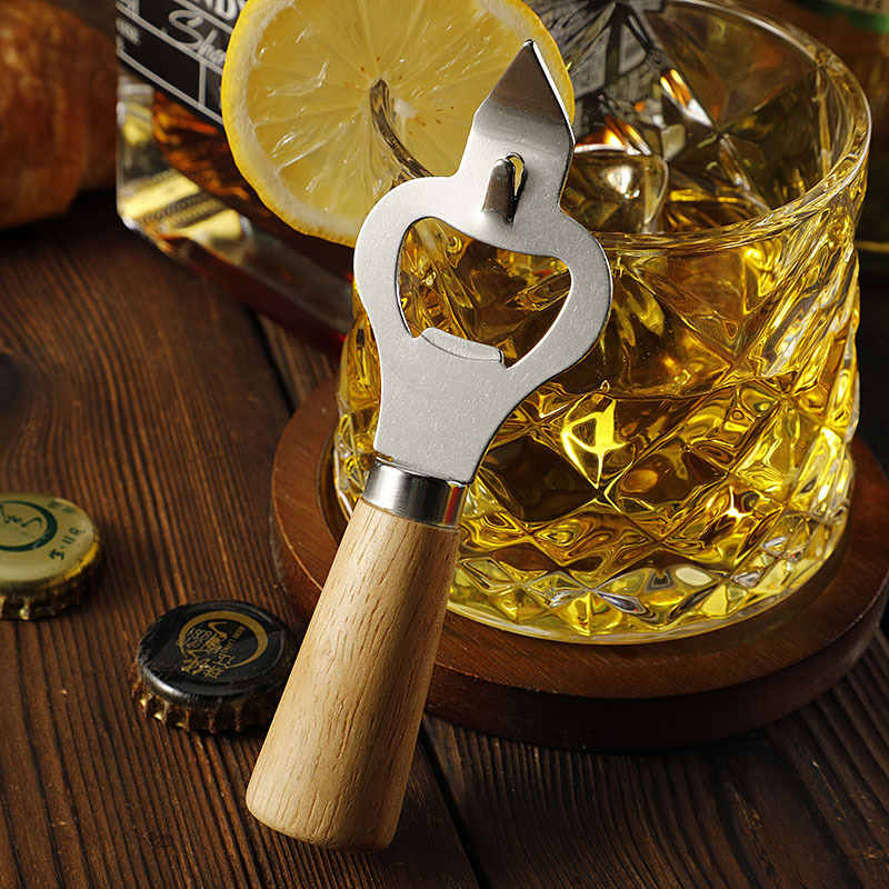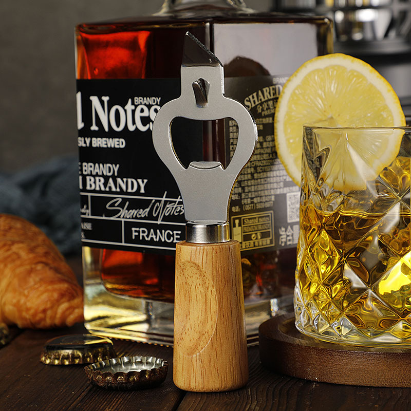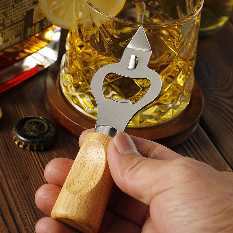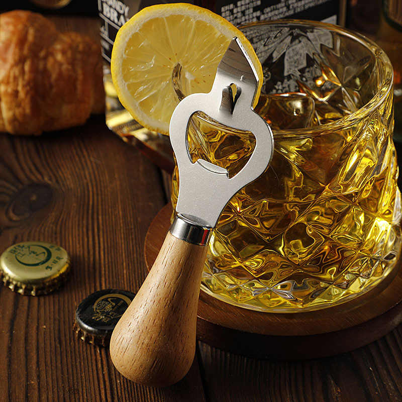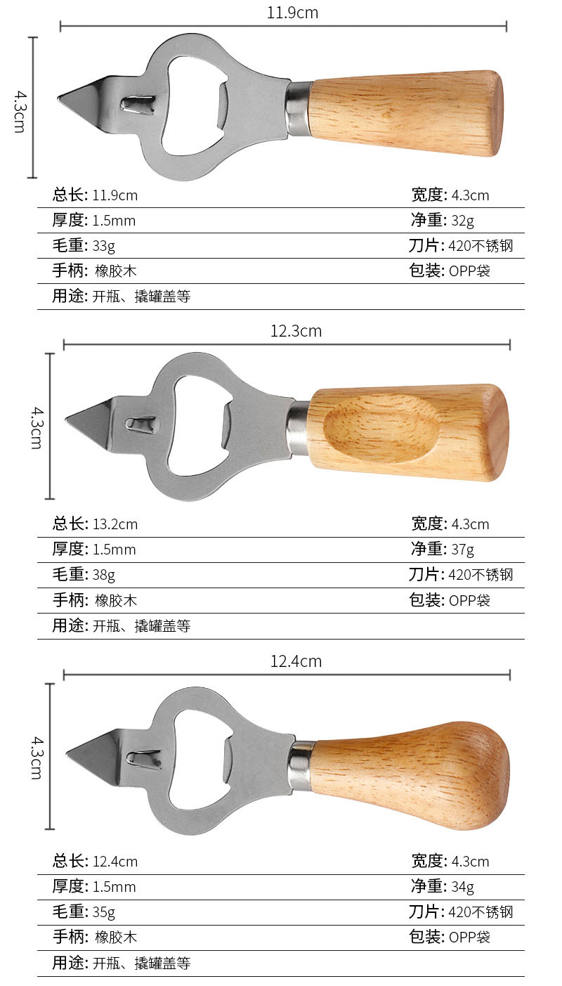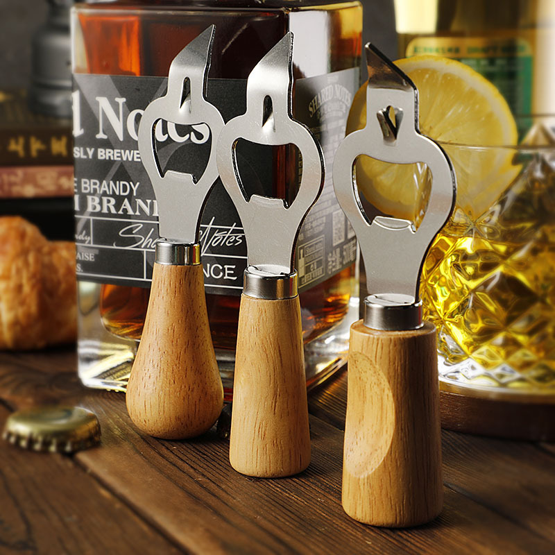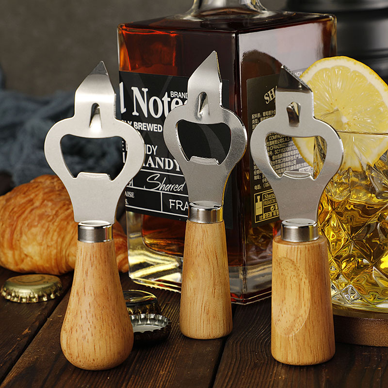 现货可立不锈钢多功能啤酒开瓶器启瓶器 橡胶木柄开罐器可印LOGO