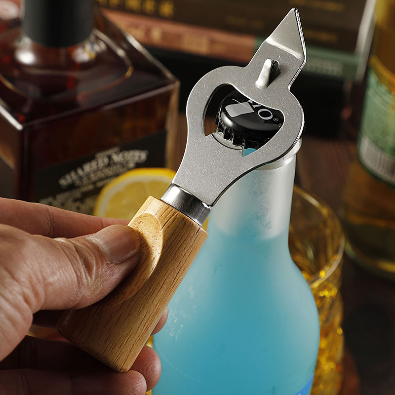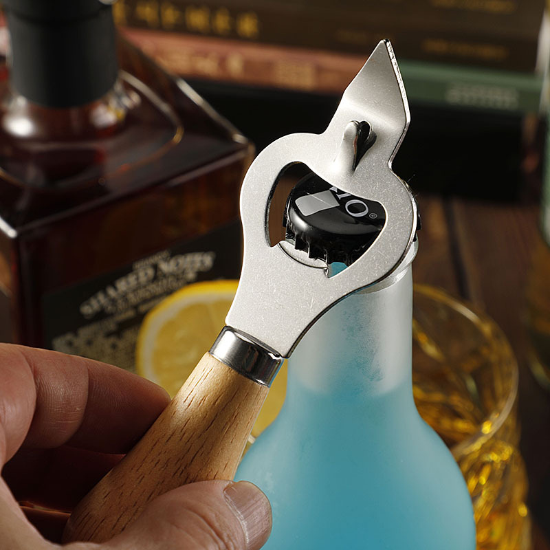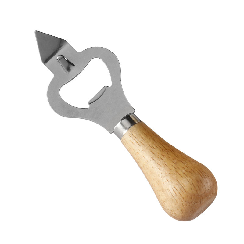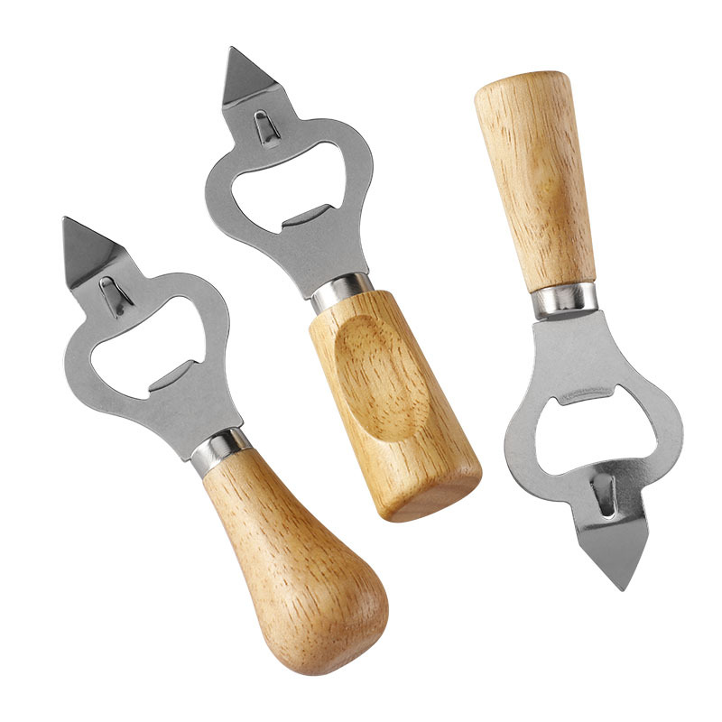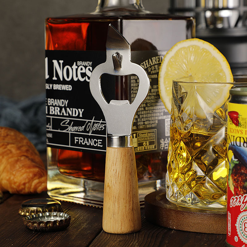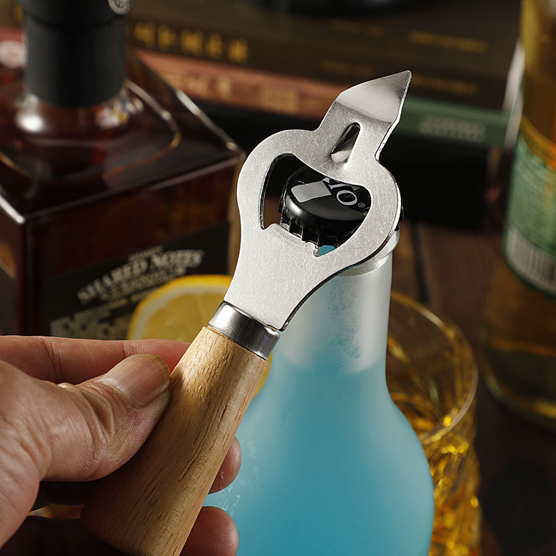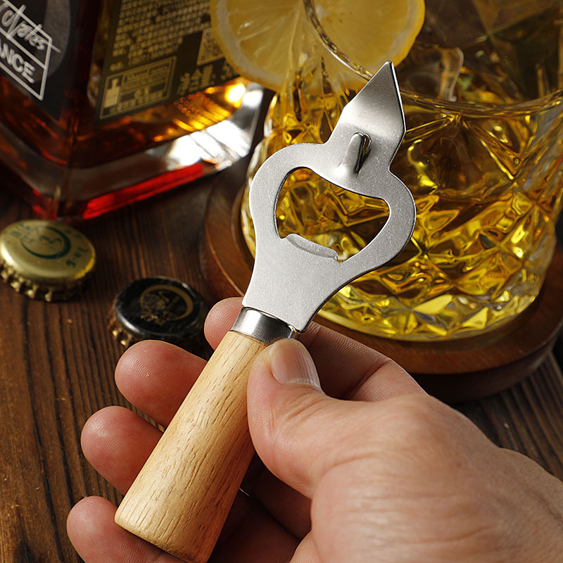 现货可立不锈钢多功能啤酒开瓶器启瓶器 橡胶木柄开罐器可印LOGO