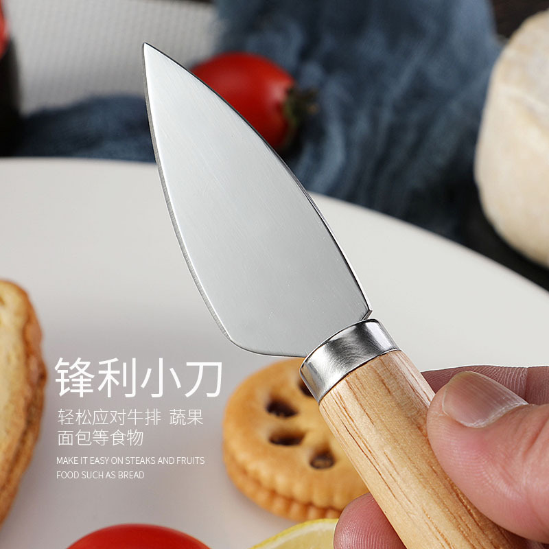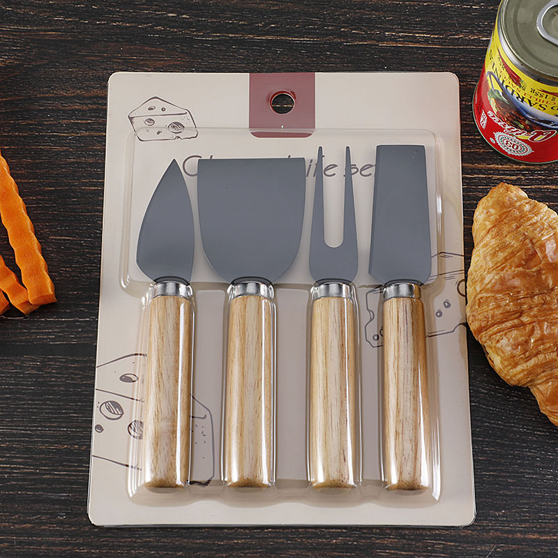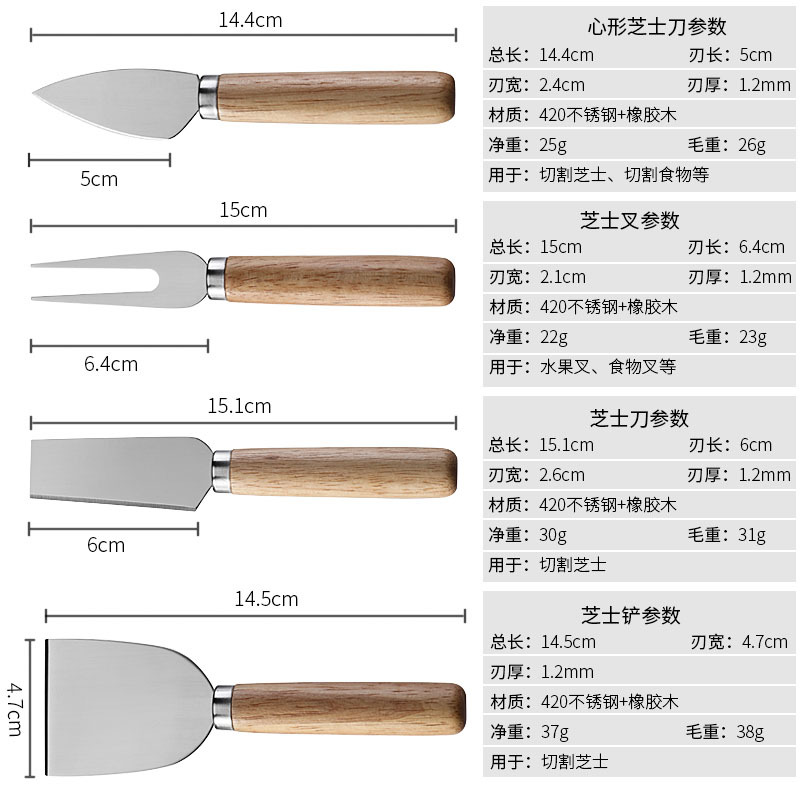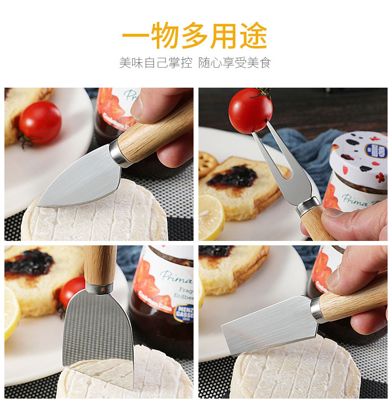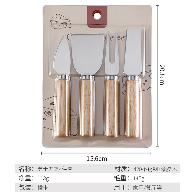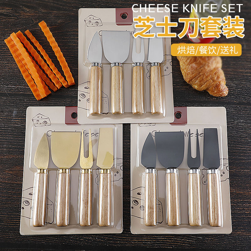 现货不锈钢芝士刀奶酪刀橡胶木长柄黄油刀起司刀卡装芝士刀套装