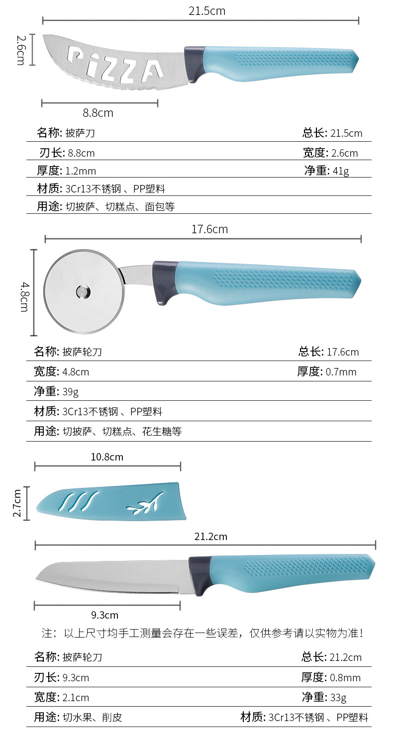 工厂新款烘焙工具不锈钢披萨刀套装牙刀迷你披萨轮刀介饼刀水果刀