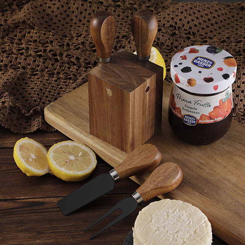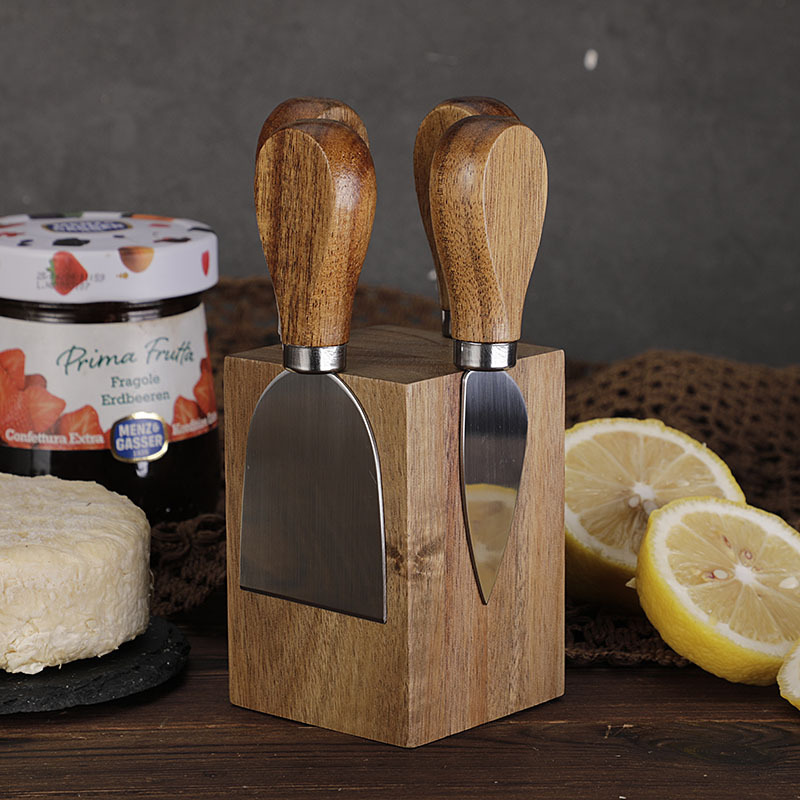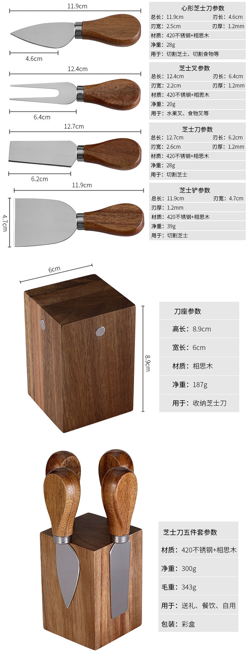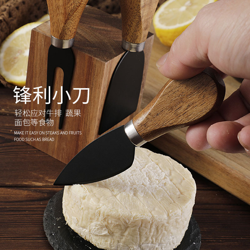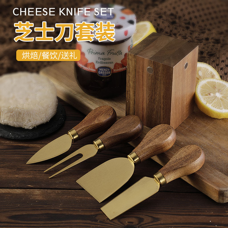 工厂现货相思木磁吸芝士刀架芝士刀叉套装不锈钢奶酪刀具5件套
