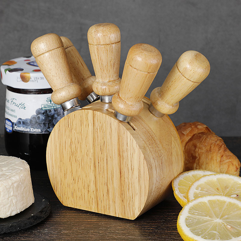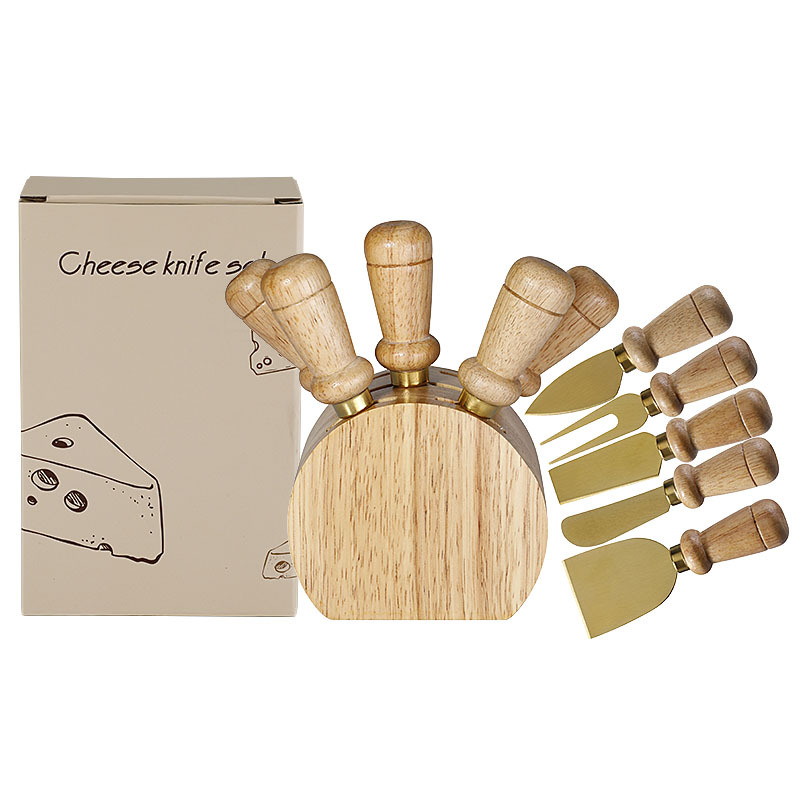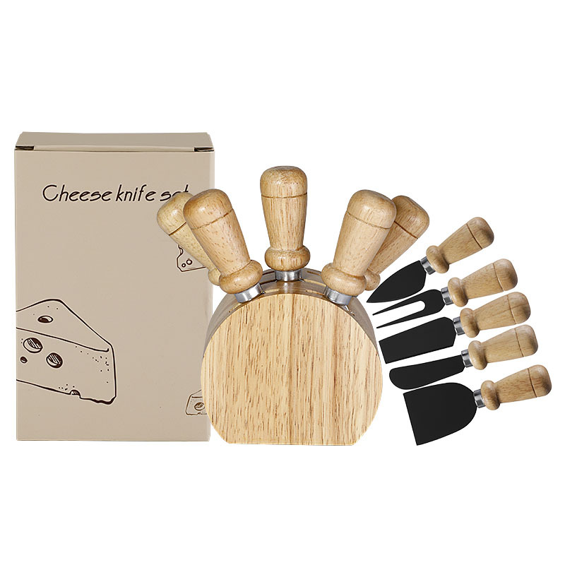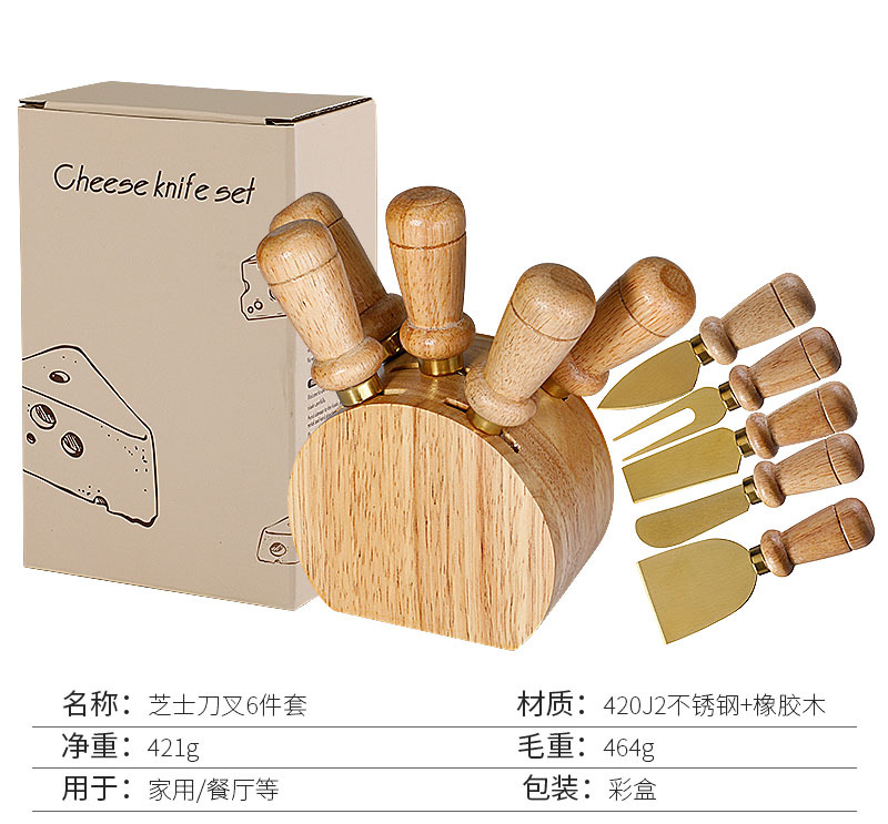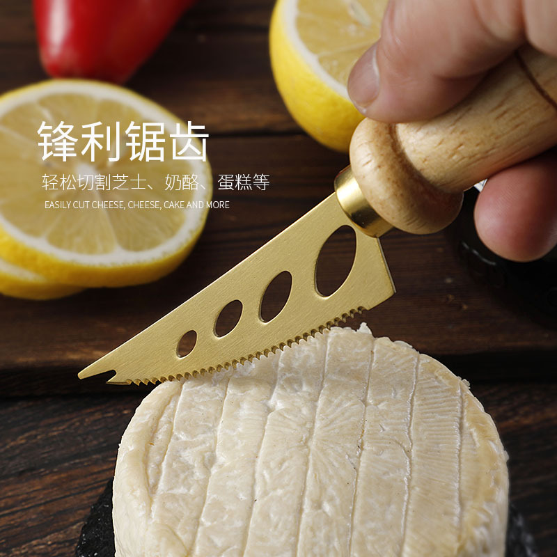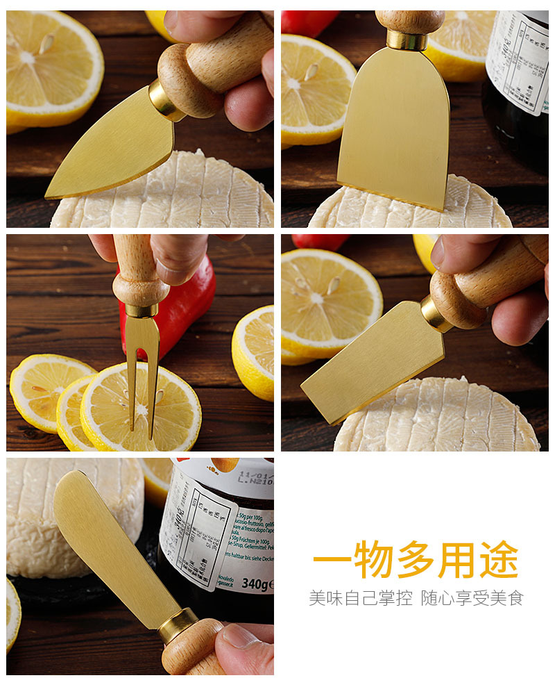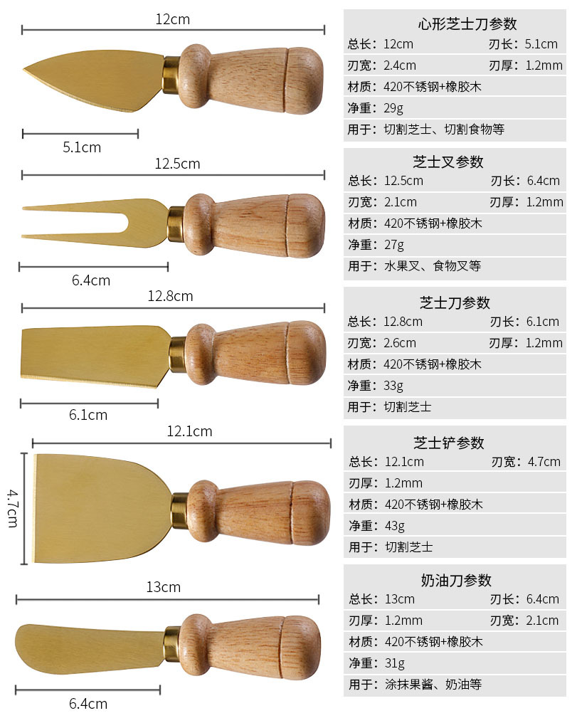 厂家现货不锈钢芝士奶酪牛油抹刀5件橡胶木刀礼品厨房小工具餐具