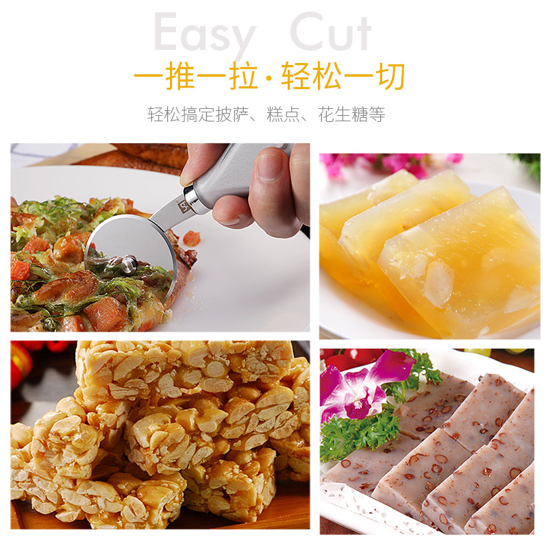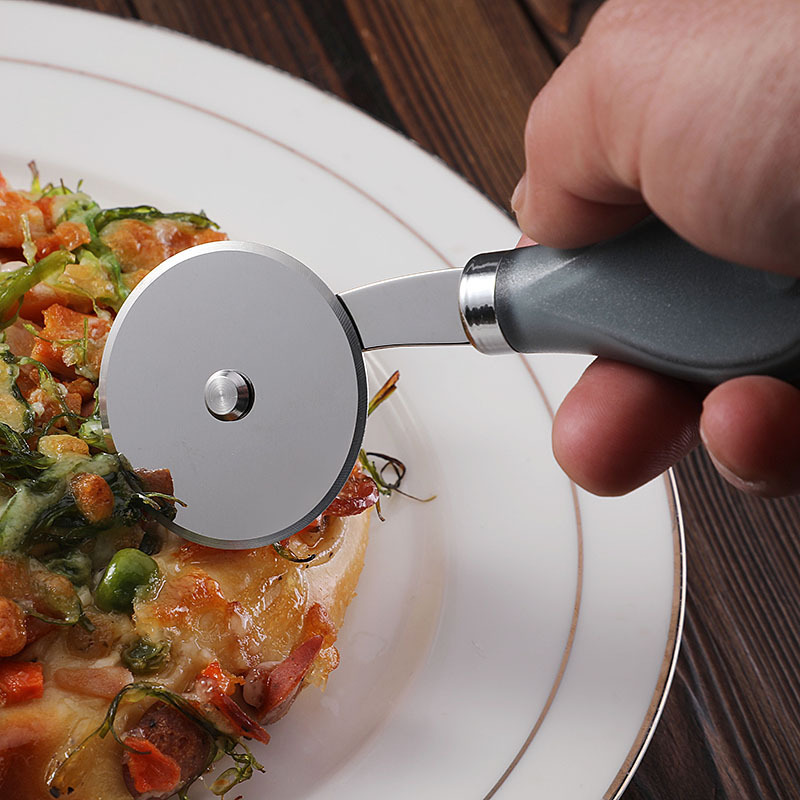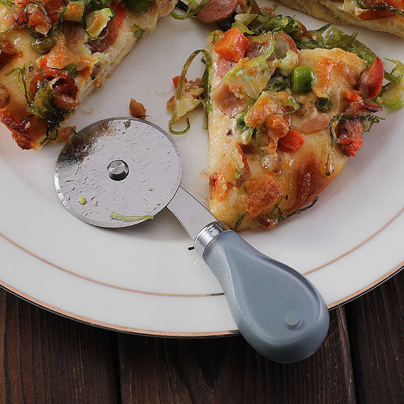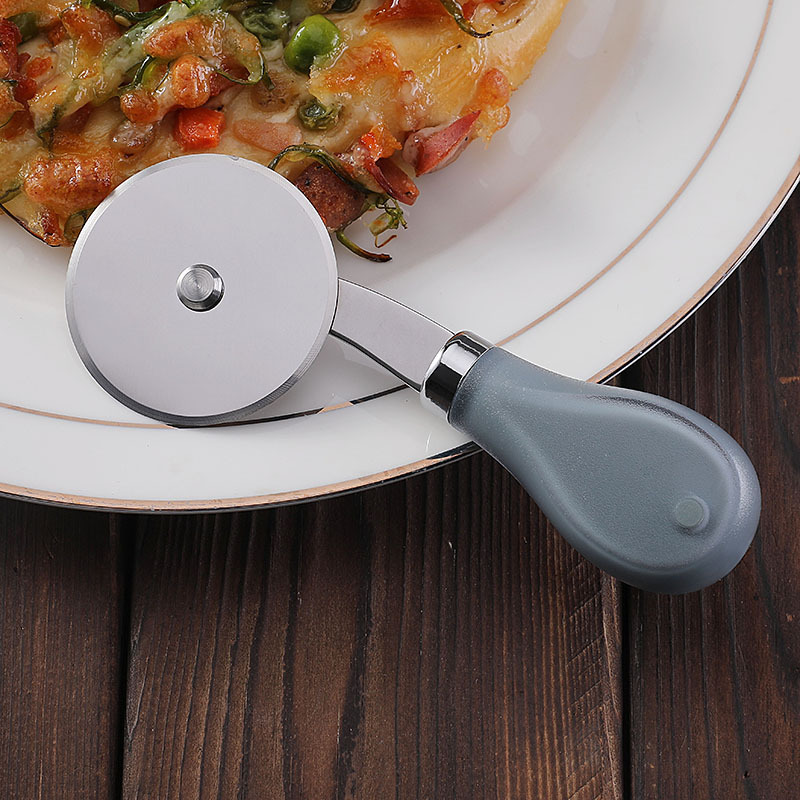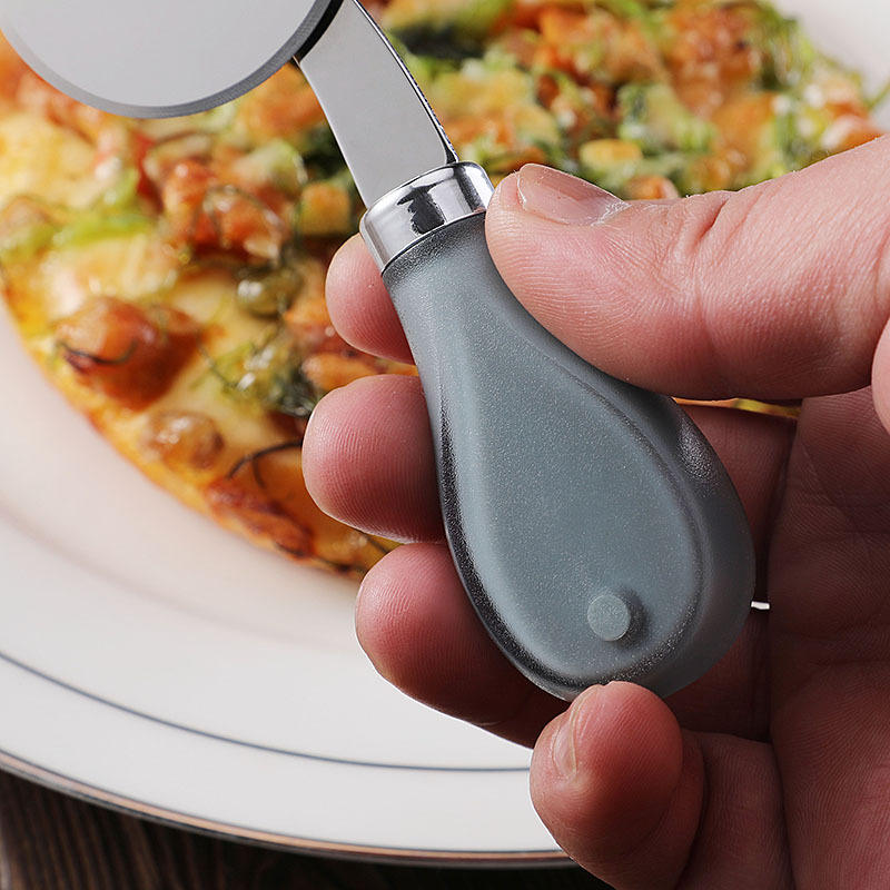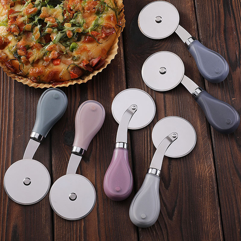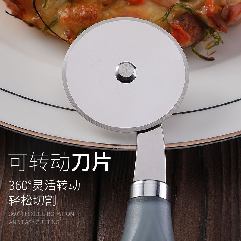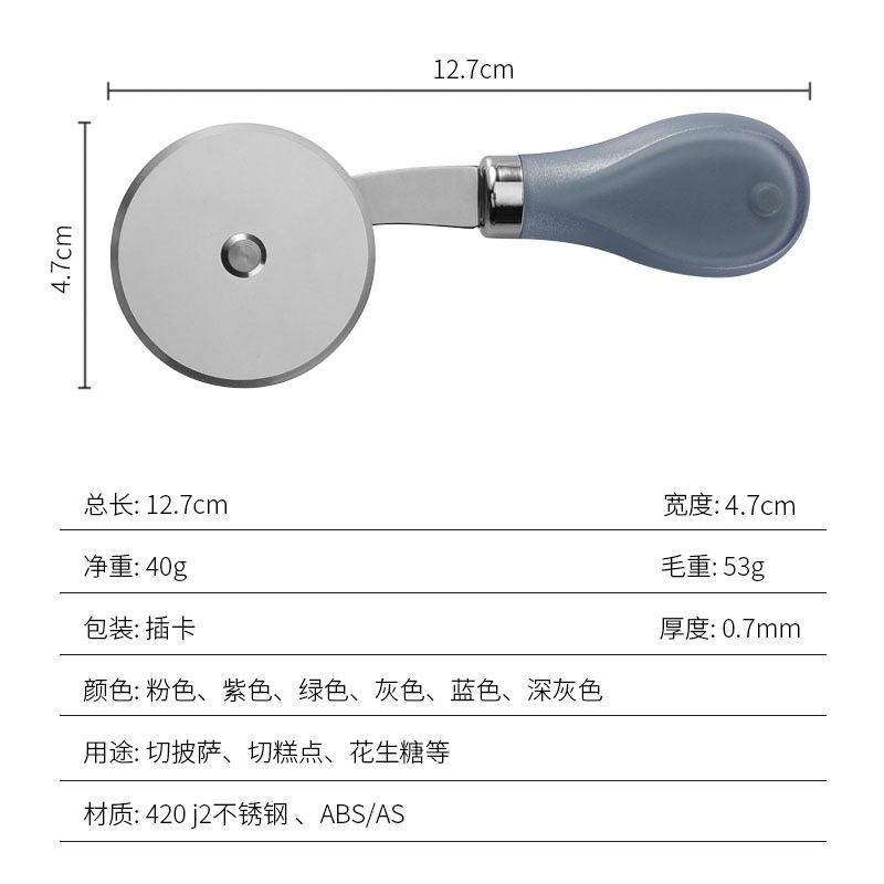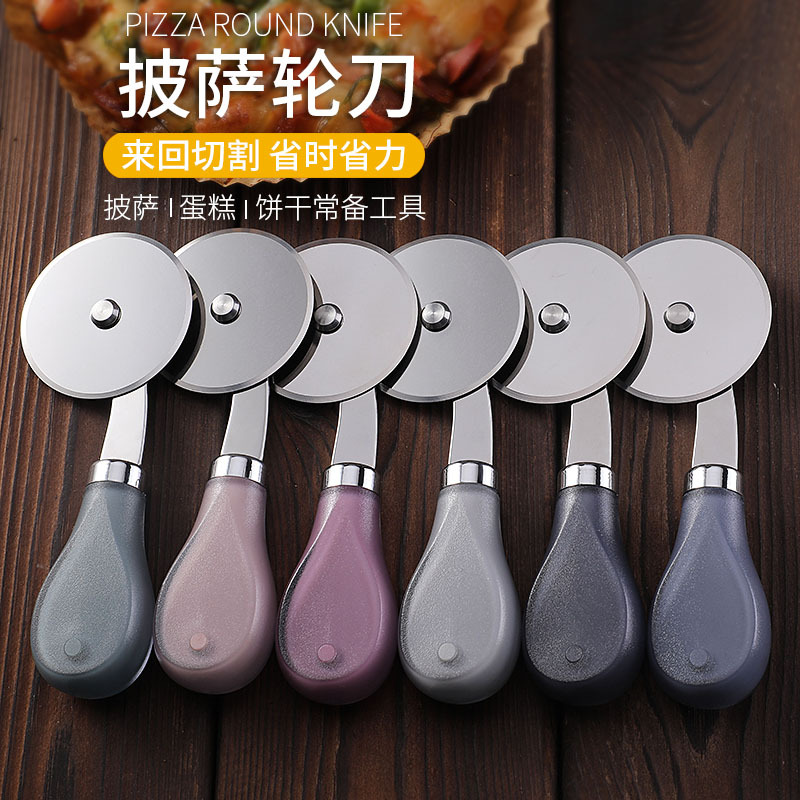跨境新款迷你披萨刀轮刀 烘焙工具430不锈钢披萨切滚轮刀介饼刀
