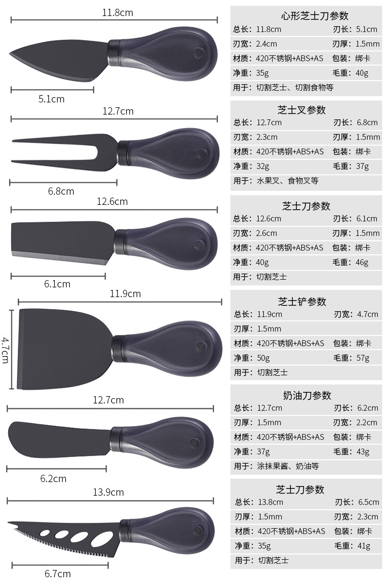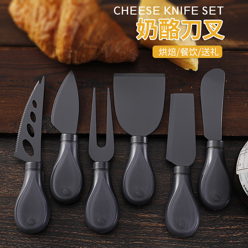 跨境现货奶酪芝士刀水果刀叉套装西餐餐具面包奶油抺刀不锈钢小刀