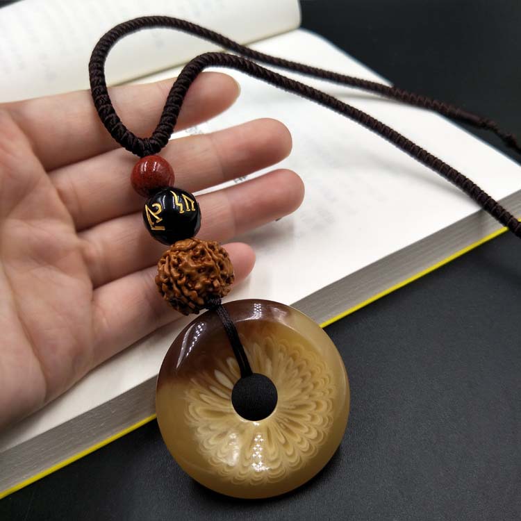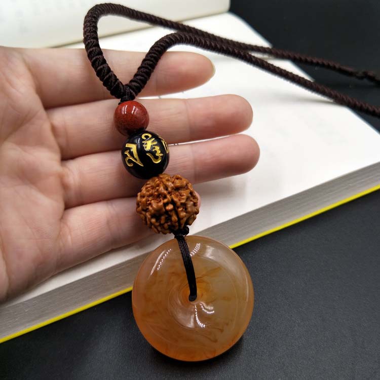 2025复古民族风平安扣长款毛衣链衣服挂饰配饰可调节女项链