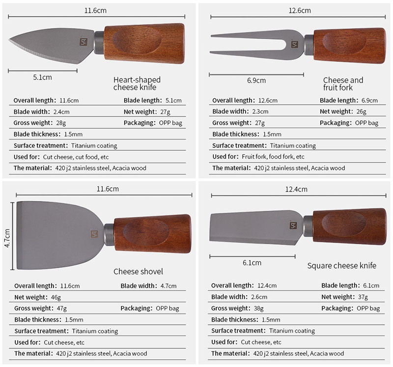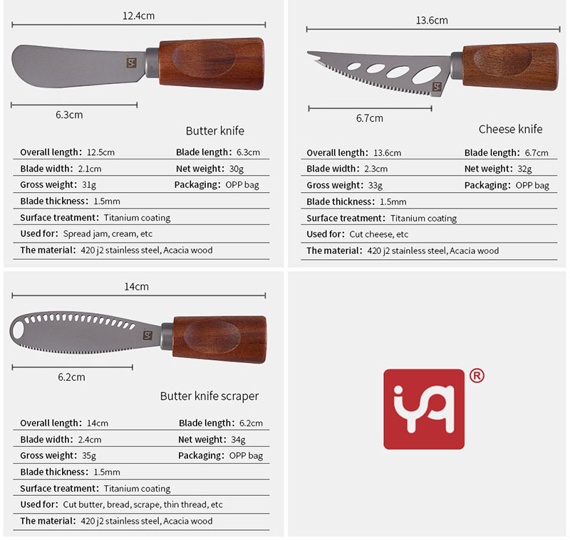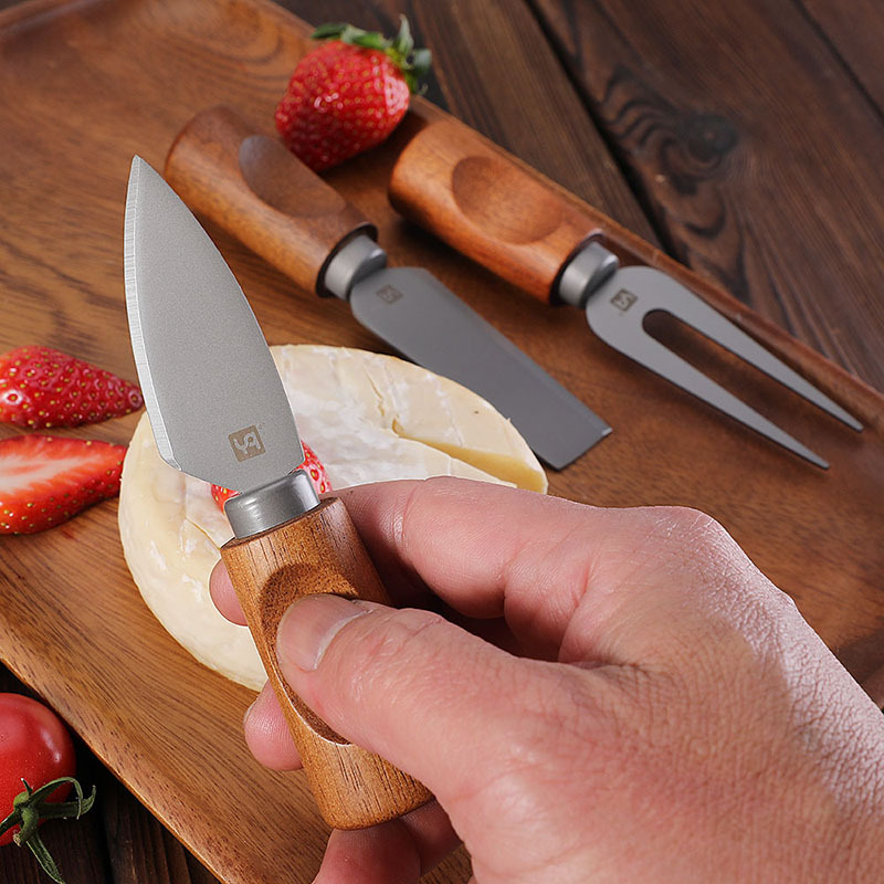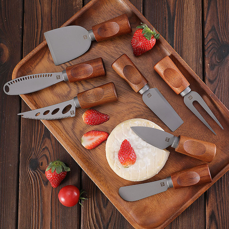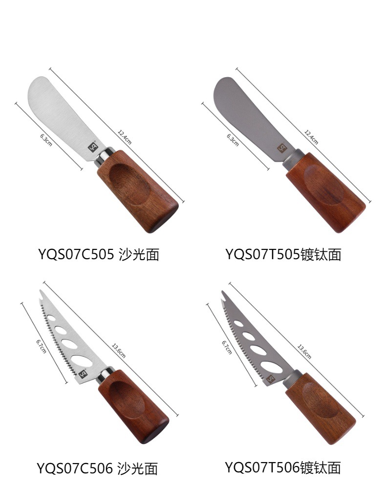 工厂相思木不锈钢镀钛奶酪工具黄油刮刀西式餐具刀叉高品质芝士刀