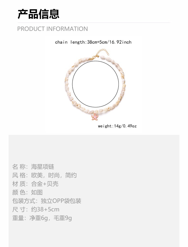 厂家直销时尚新款海星吊坠项链创意百搭夏季海螺贝壳海星项链批发