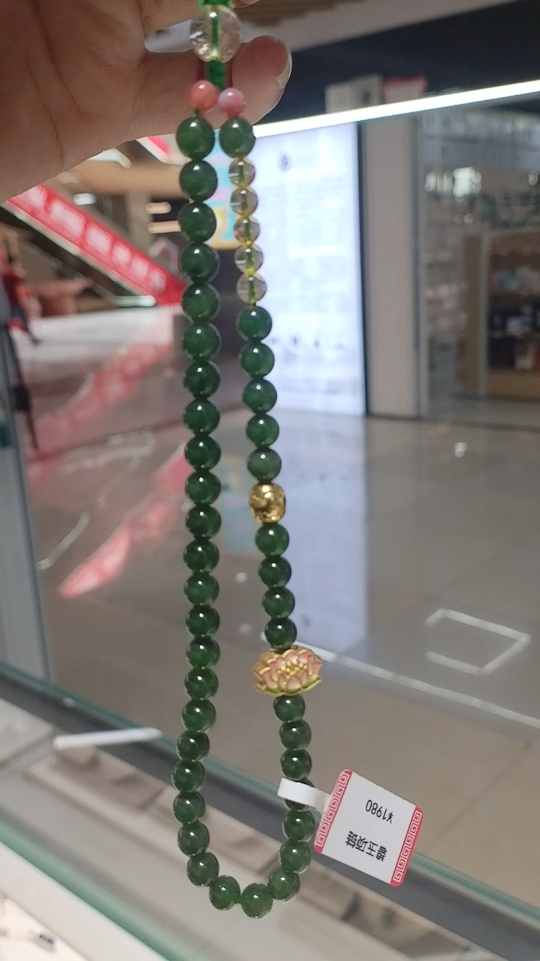 天然碧玉莲花手机链挂件女生手腕款