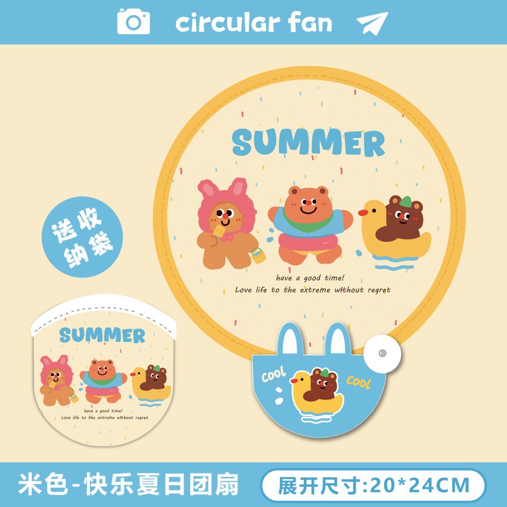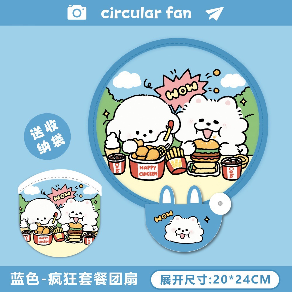原创可爱折叠团扇少女心便携折叠扇学生户外随身布面迷你圆扇批发