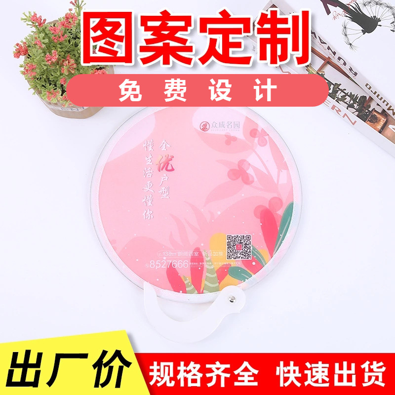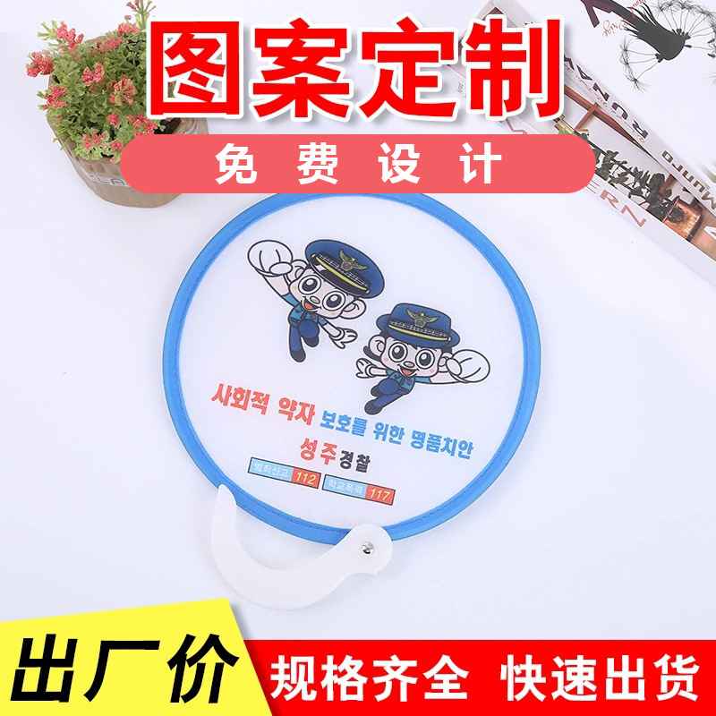 尼龙钢丝飞盘圆扇 卡通复古掌中扇diy涤纶古风宣传折叠广告扇批发