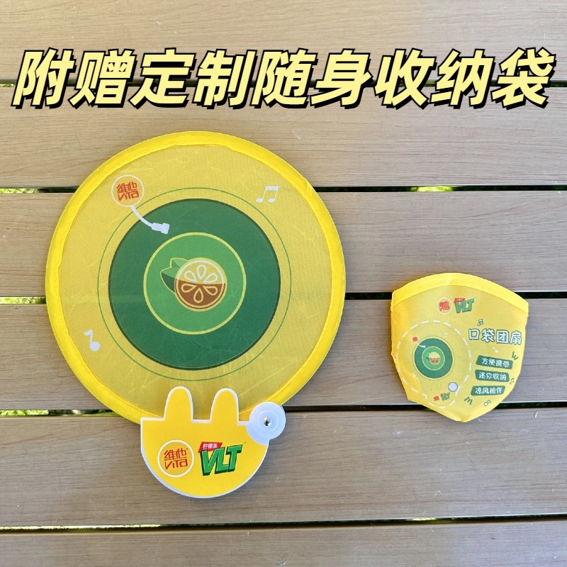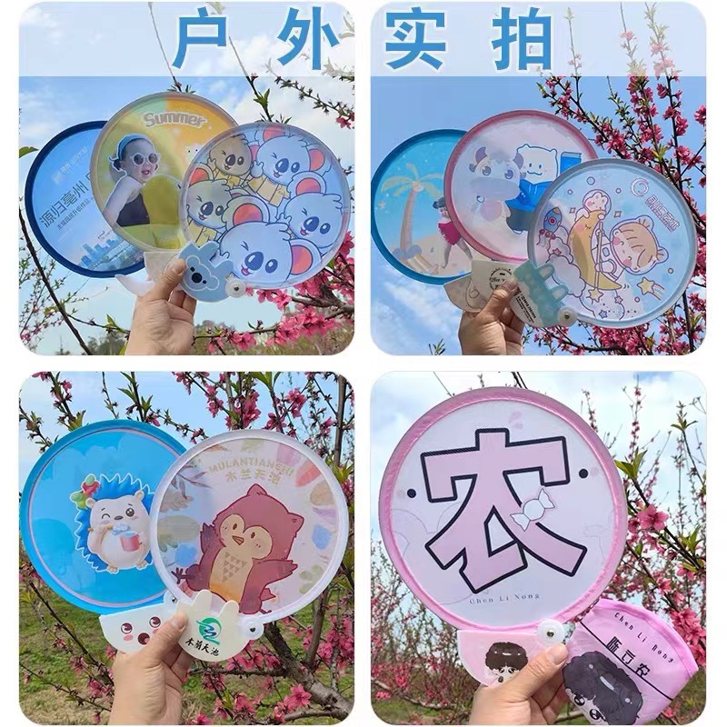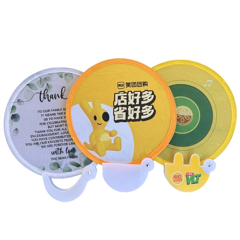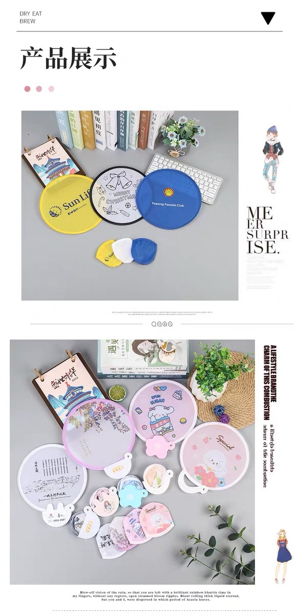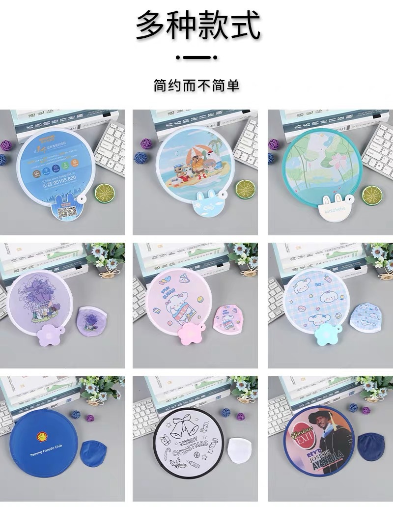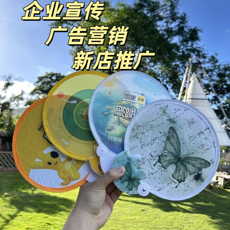 飞盘扇定制logo宣传应援团扇便携式迷你小圆扇广告扇折叠扇反光板