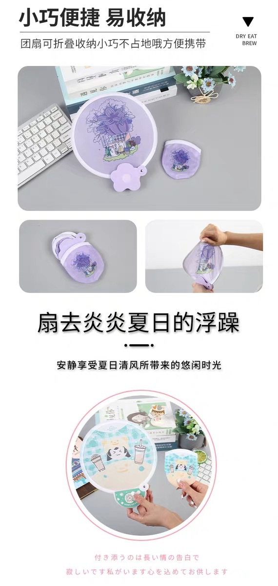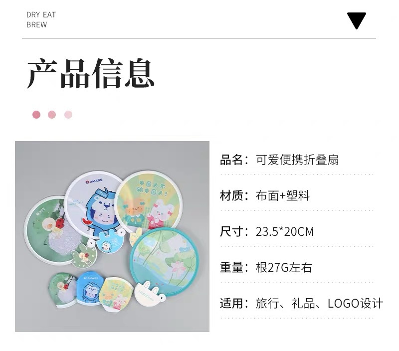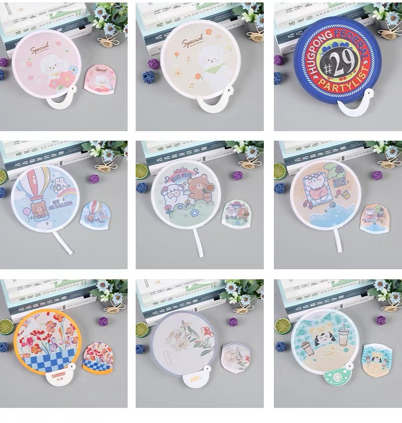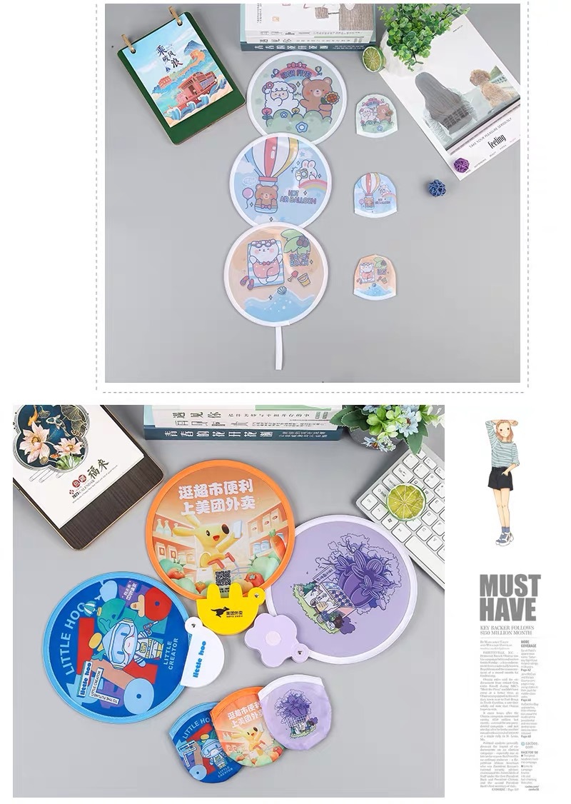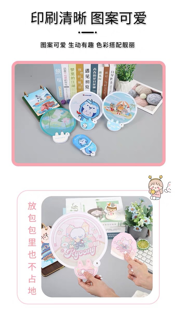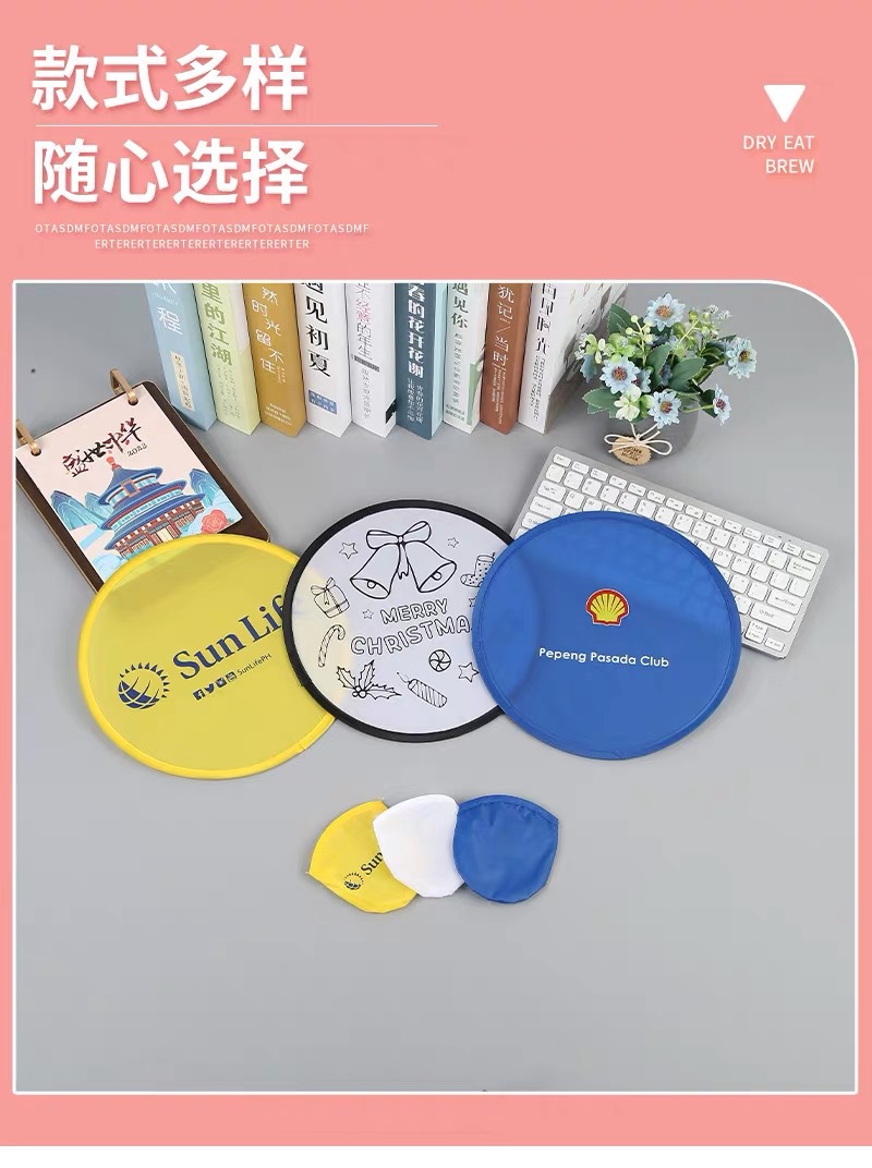 飞盘扇定制logo宣传应援团扇便携式迷你小圆扇广告扇折叠扇反光板