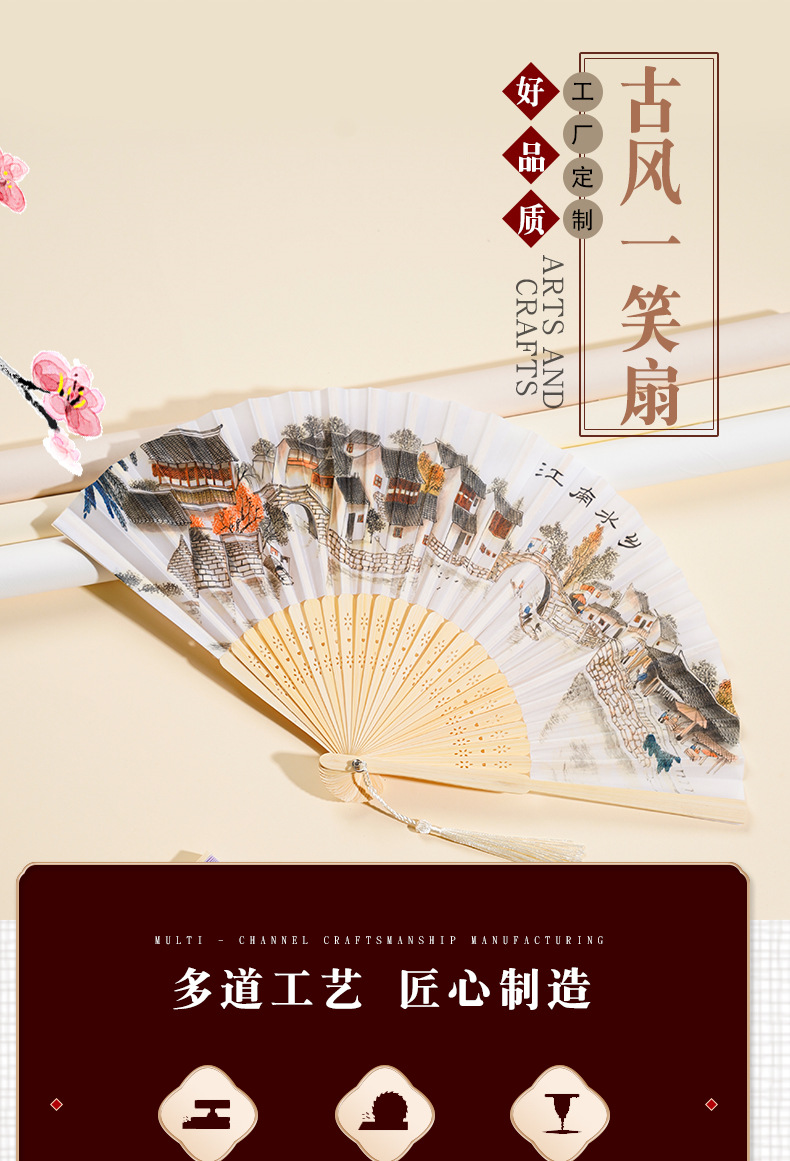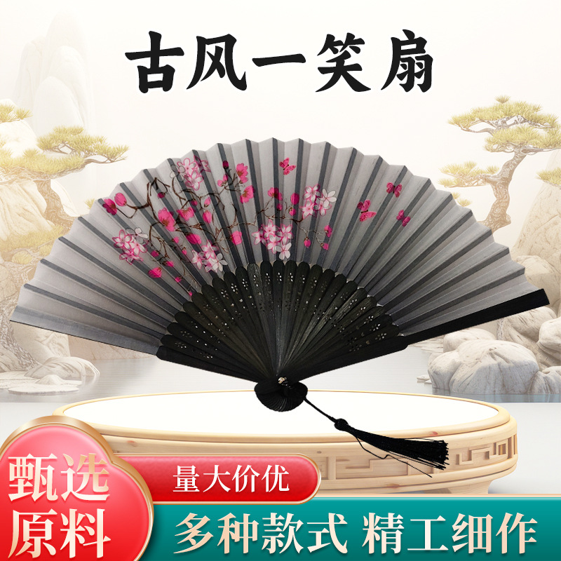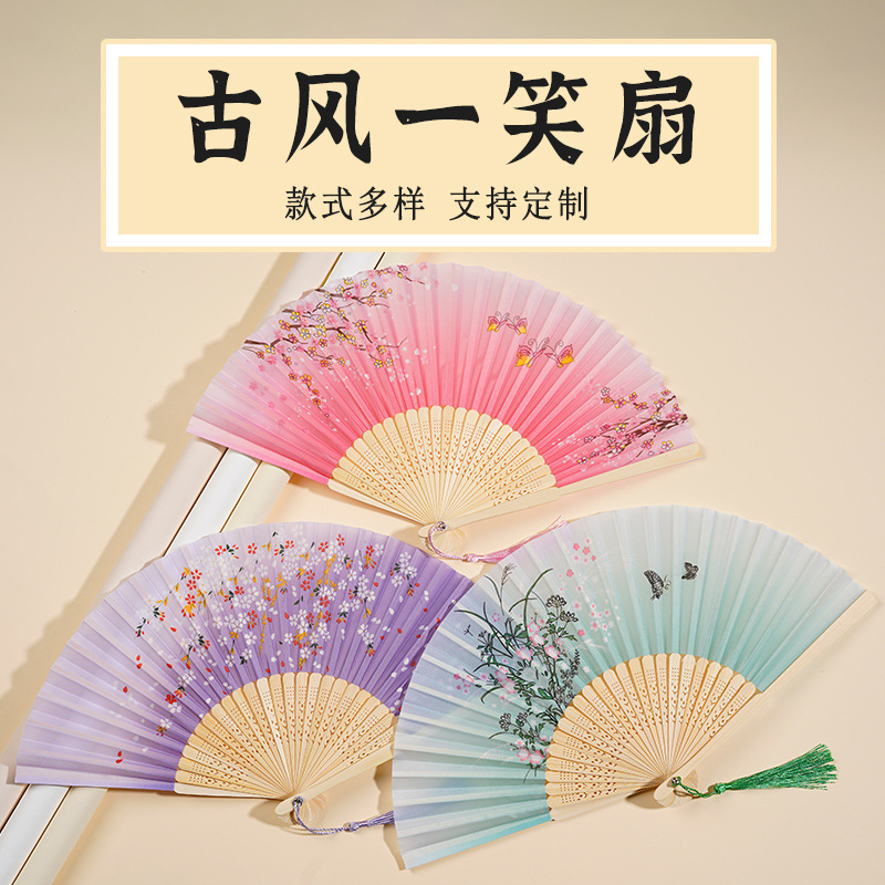 古风一笑扇竹工艺夏季随身扇景区纪念扇舞蹈扇折扇广告扇批发