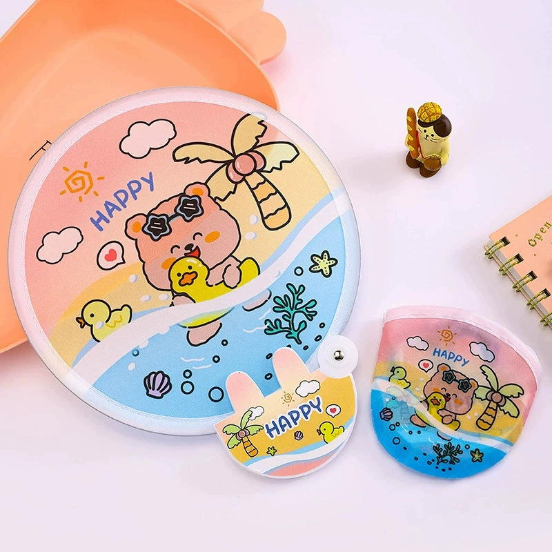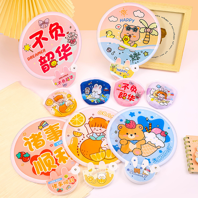 反光折叠团扇便捷折叠扇 学生迷你扇布面便携小扇子卡通户外圆扇