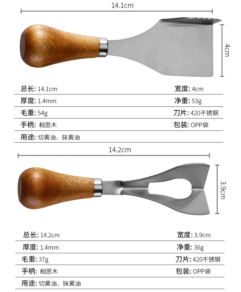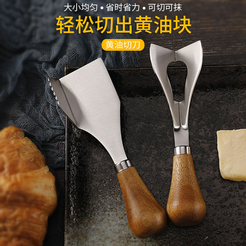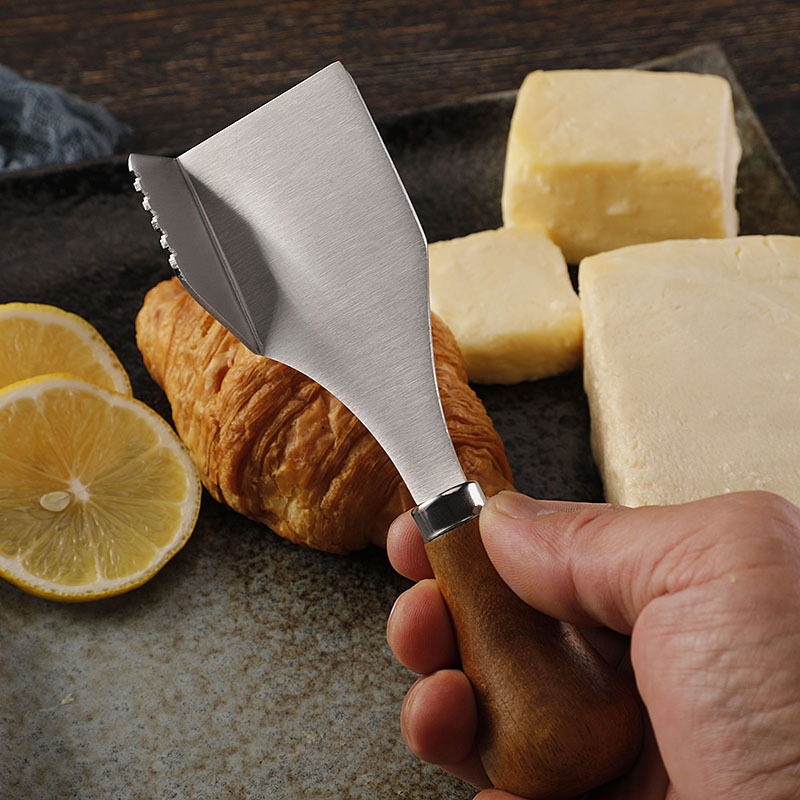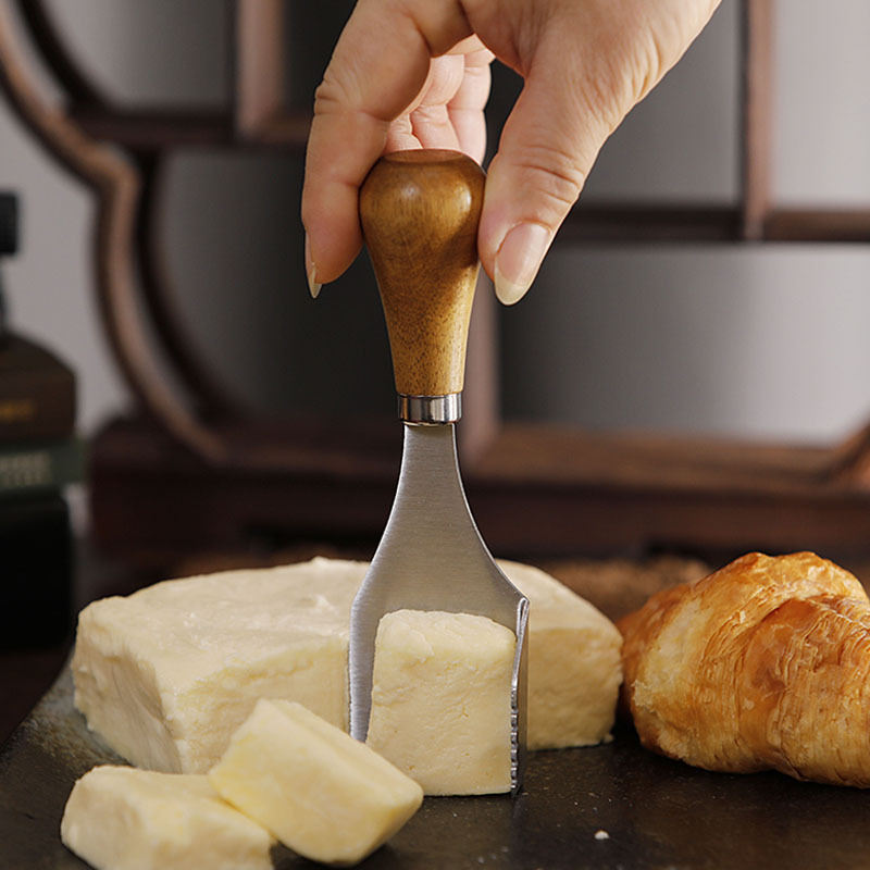 工厂新款不锈钢奶酪工具芝士切割刀相思木柄直角牛油黄油切块刀
