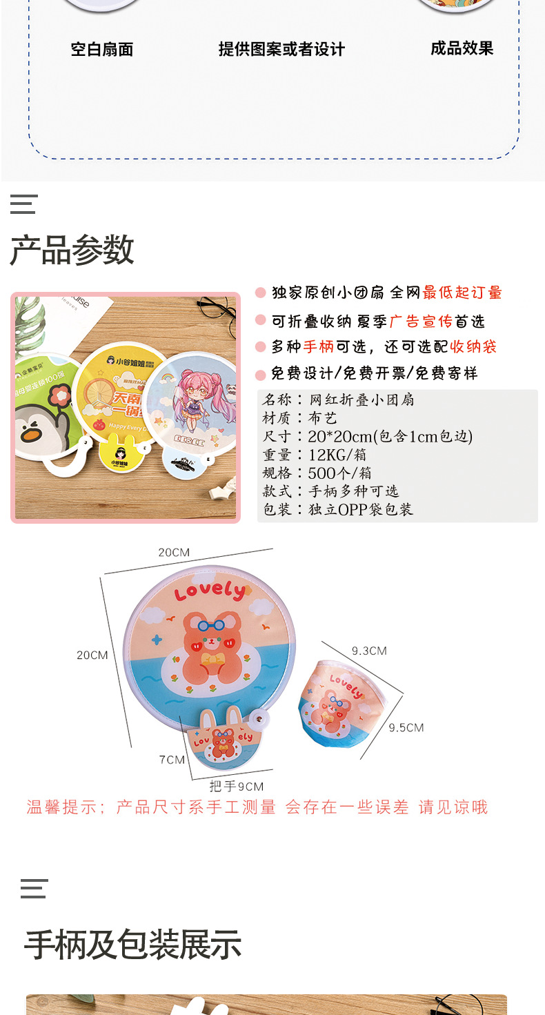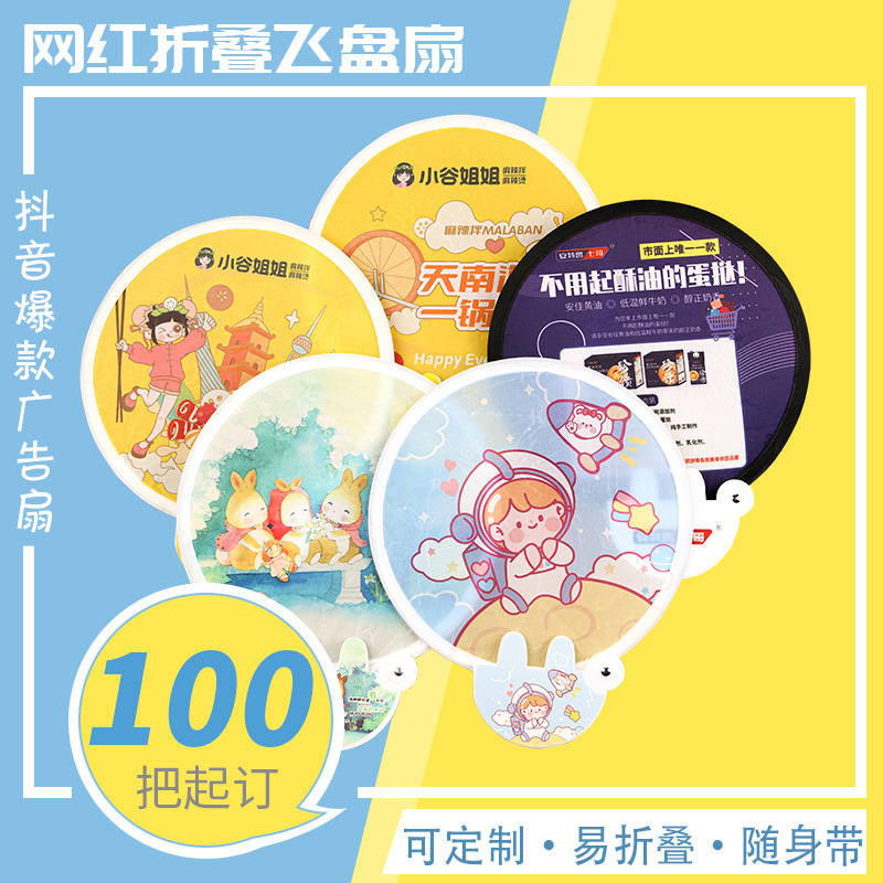折叠扇子古风应援扇骨架便携折叠扇卡通小扇子反光板折叠团扇定制