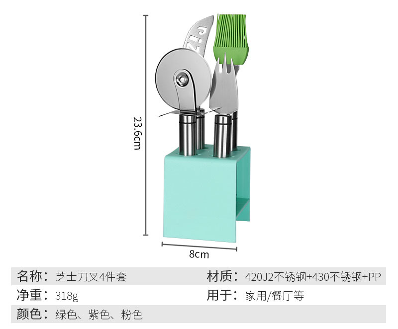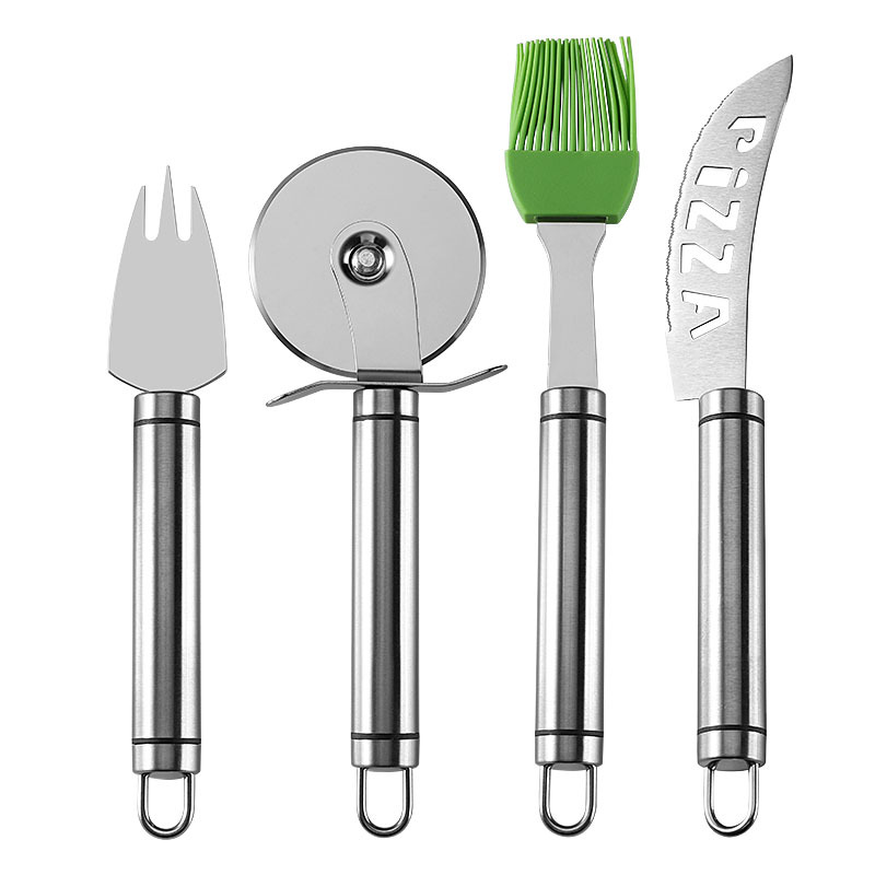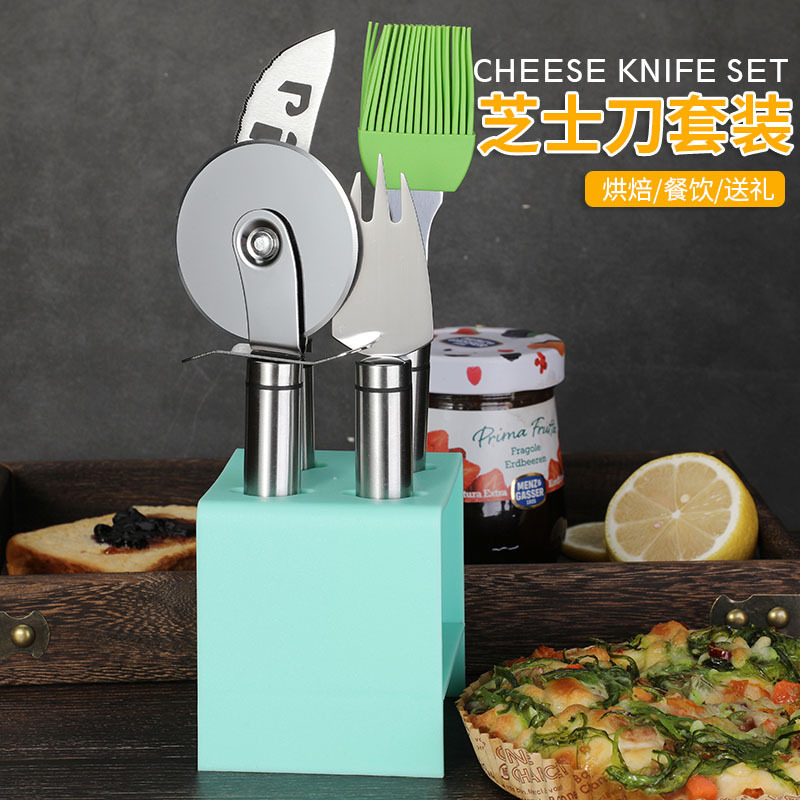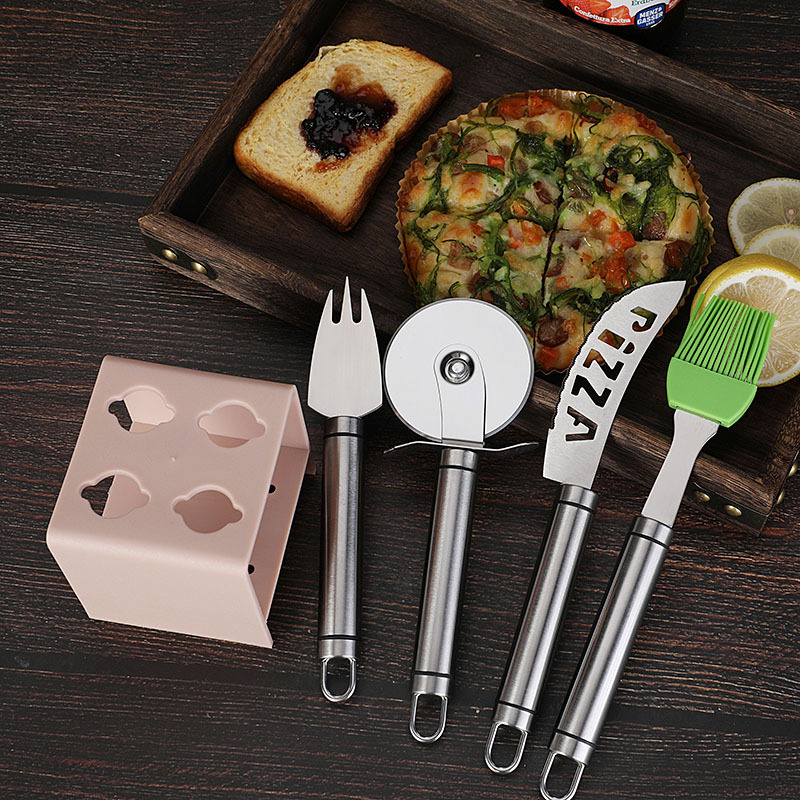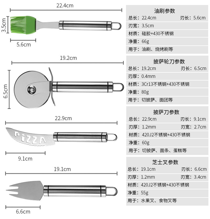 跨境烘焙工具硅胶扫不锈钢披萨工具介饼刀PIZZA轮滚刀披萨刀4件套