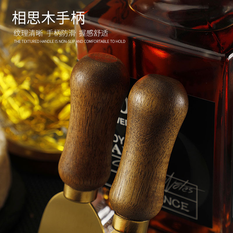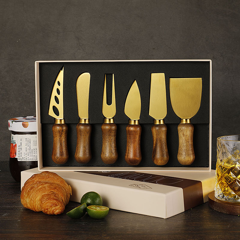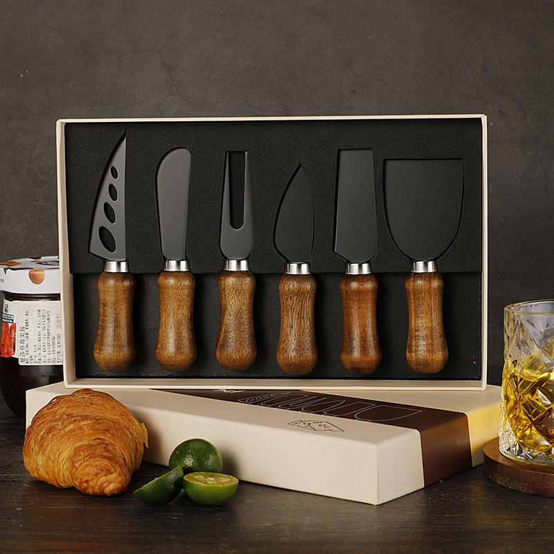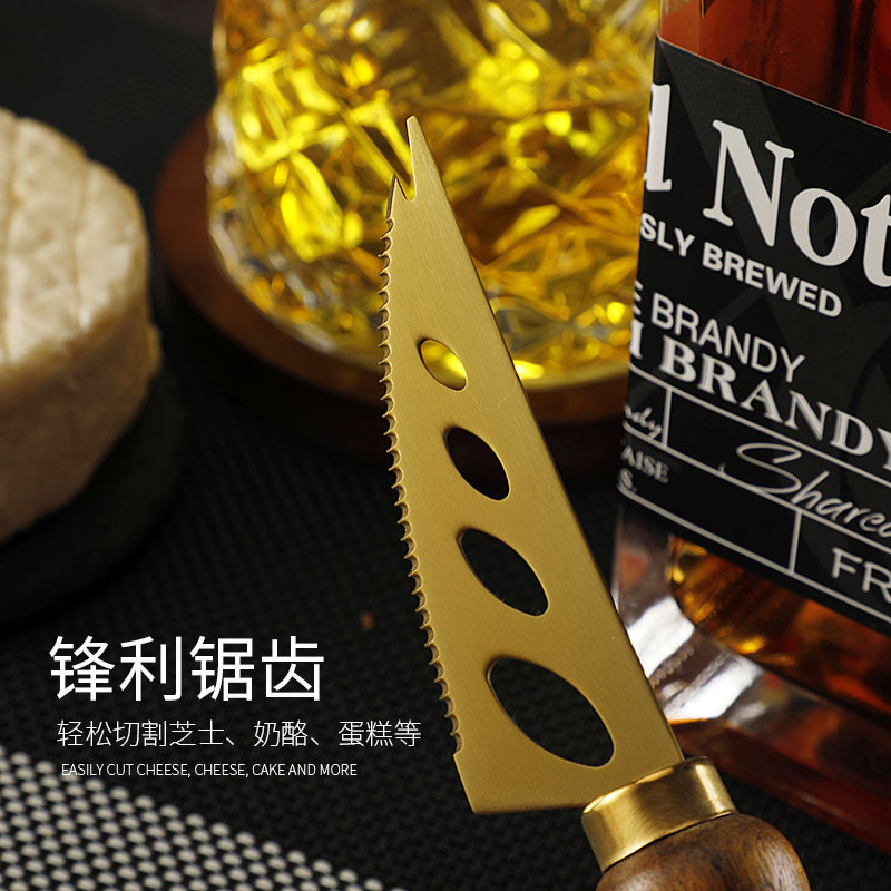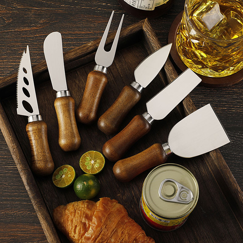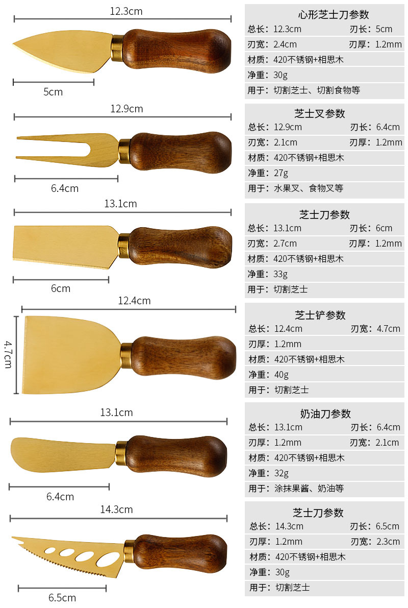 跨境现货不锈钢奶酪刀具果酱黄油刀抺刀相思木柄礼盒芝士刀叉套装
