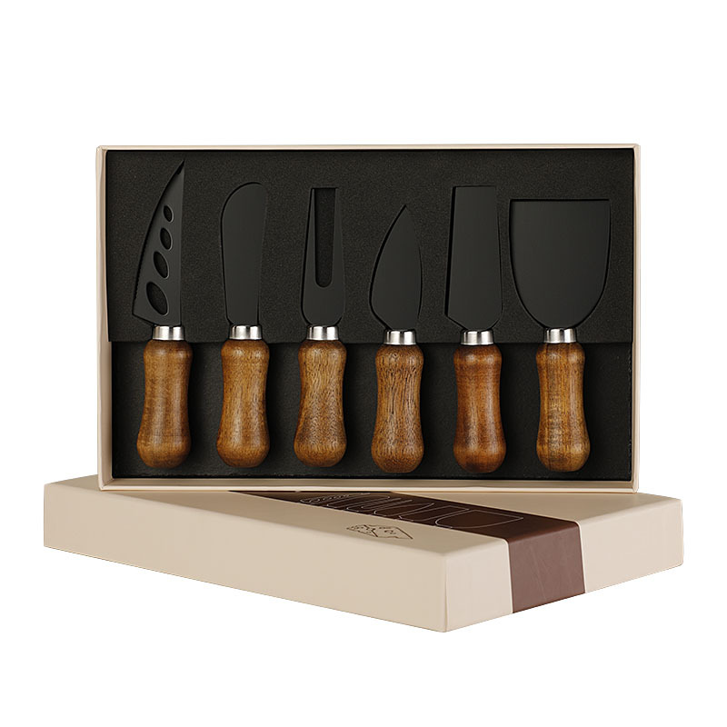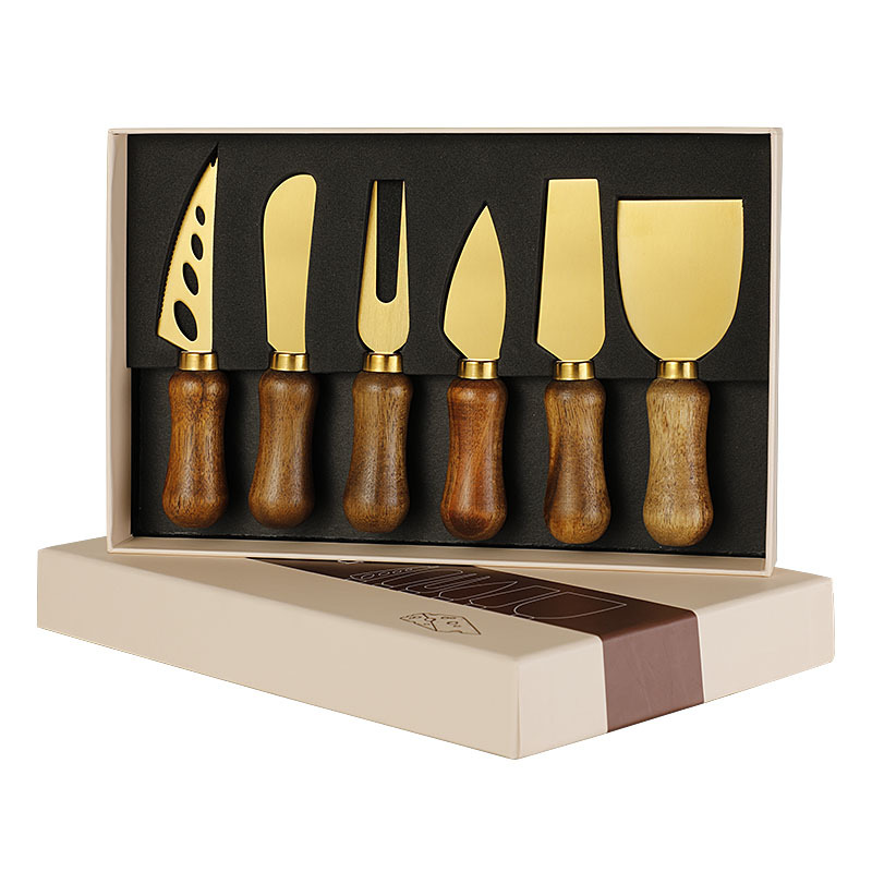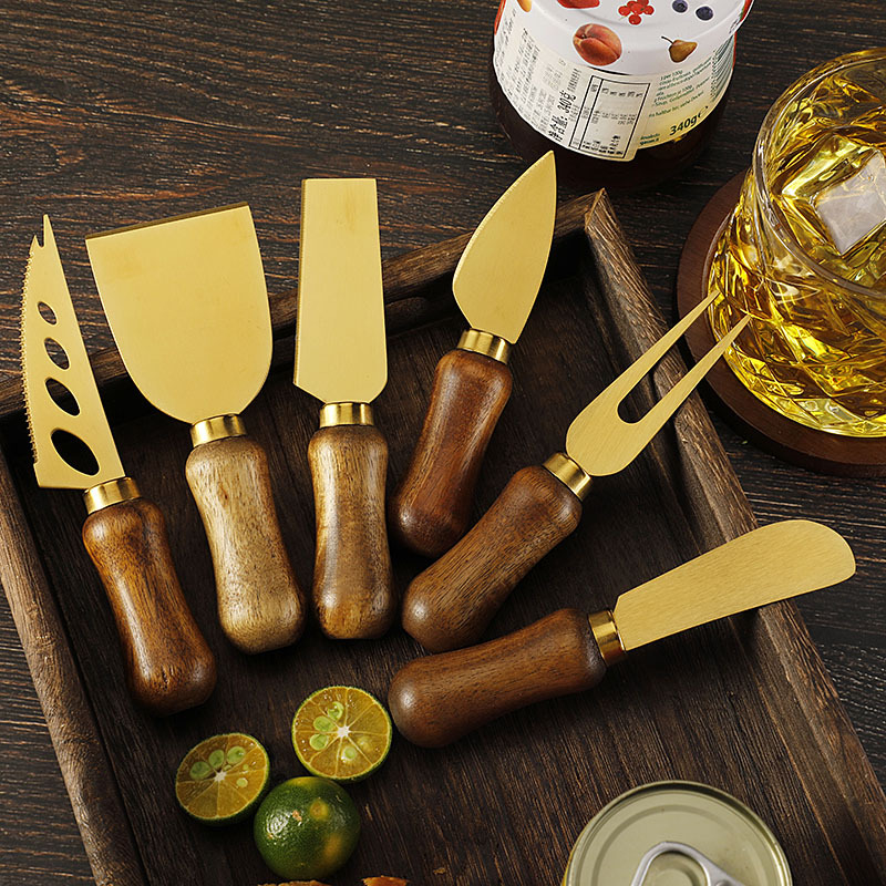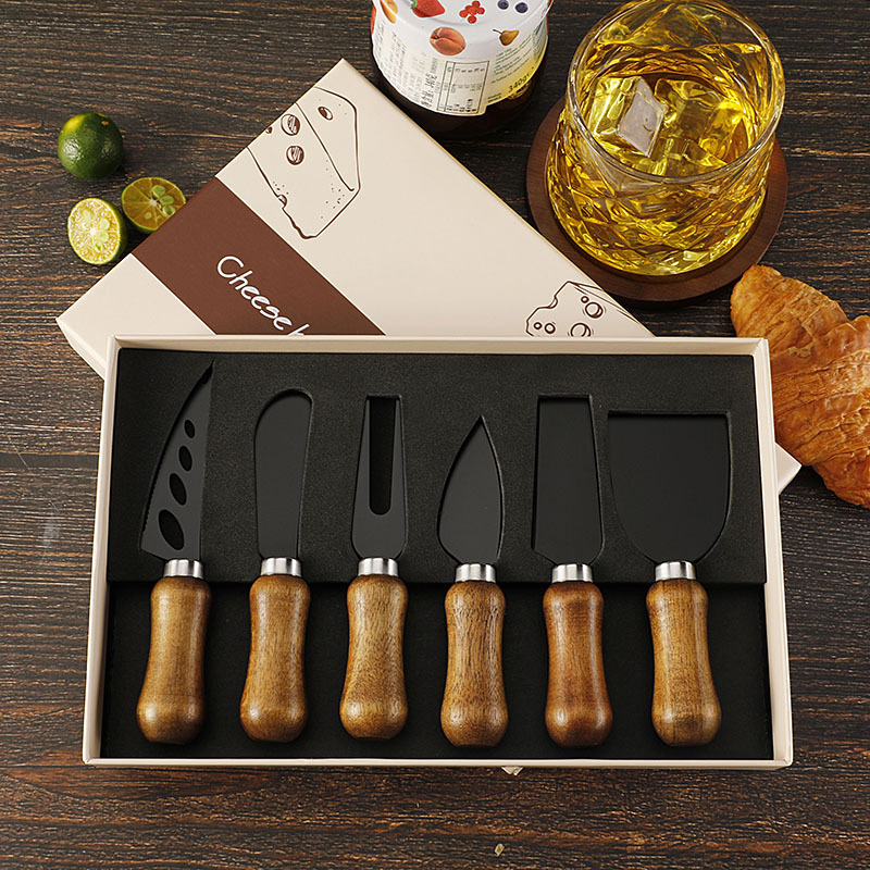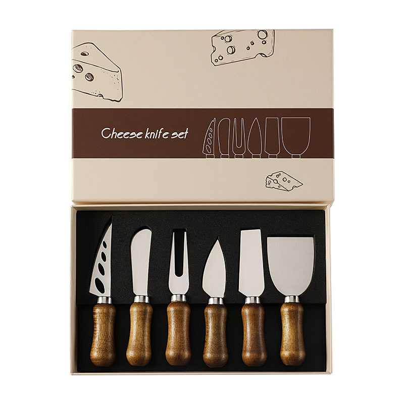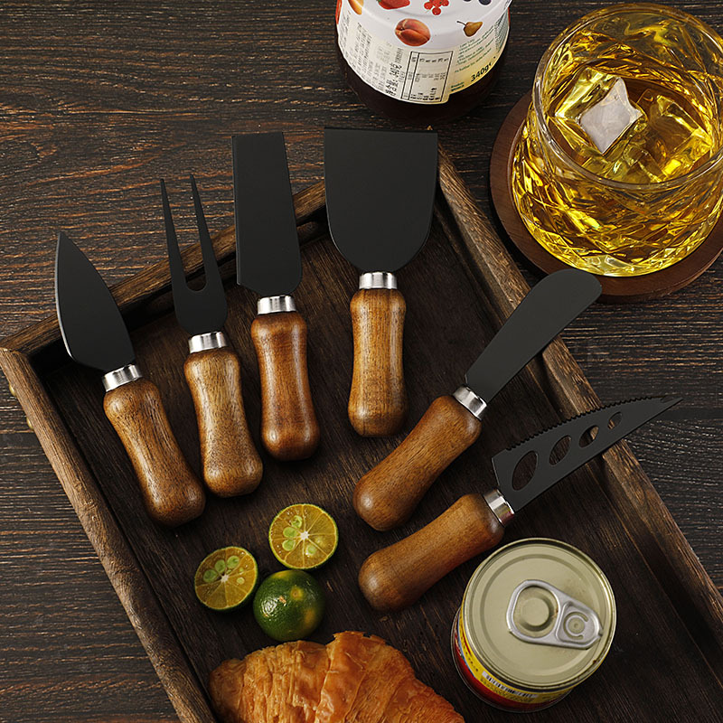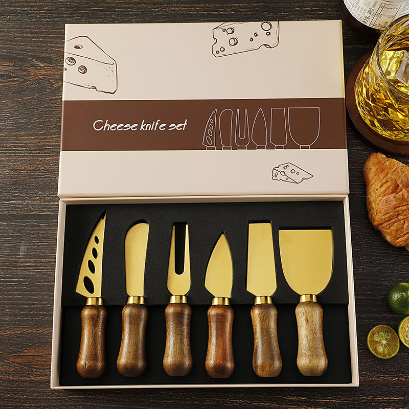 跨境现货不锈钢奶酪刀具果酱黄油刀抺刀相思木柄礼盒芝士刀叉套装