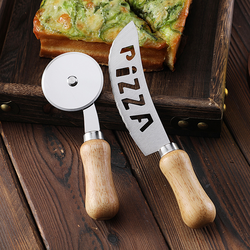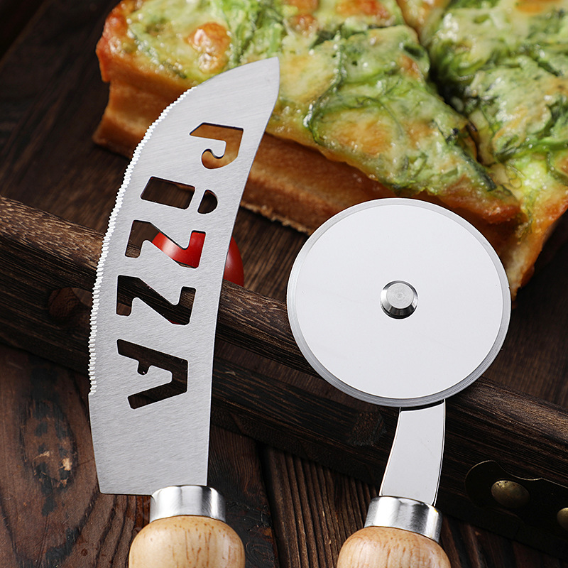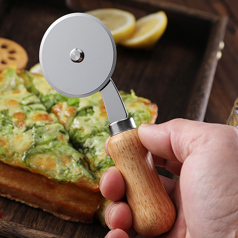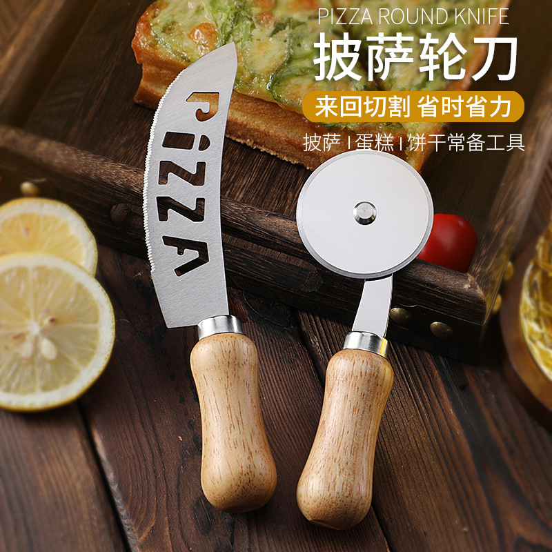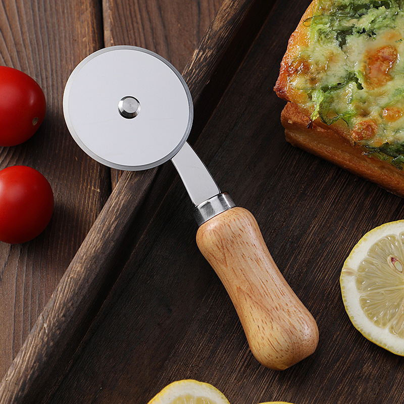 现货不锈钢单轮披萨刀滚刀比萨轮刀蛋糕刀相木柄介饼刀烘焙工具