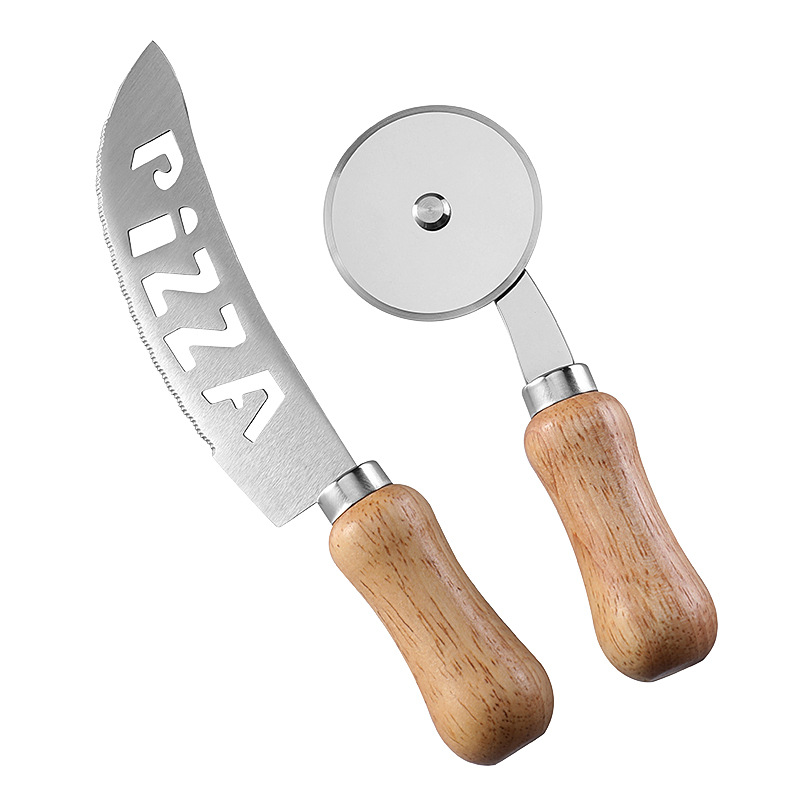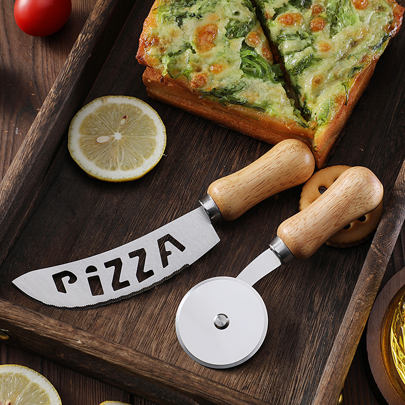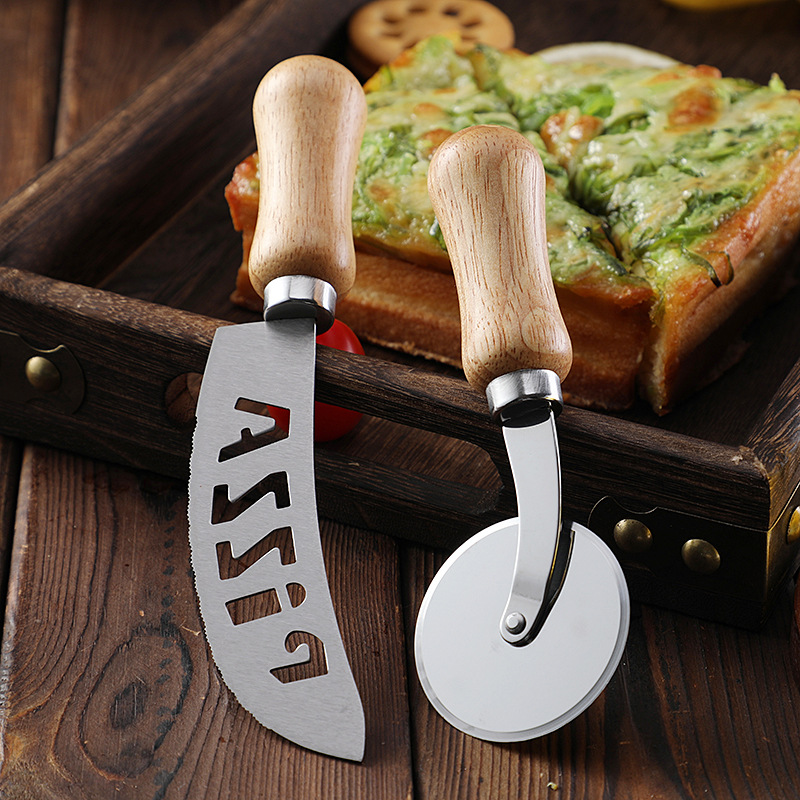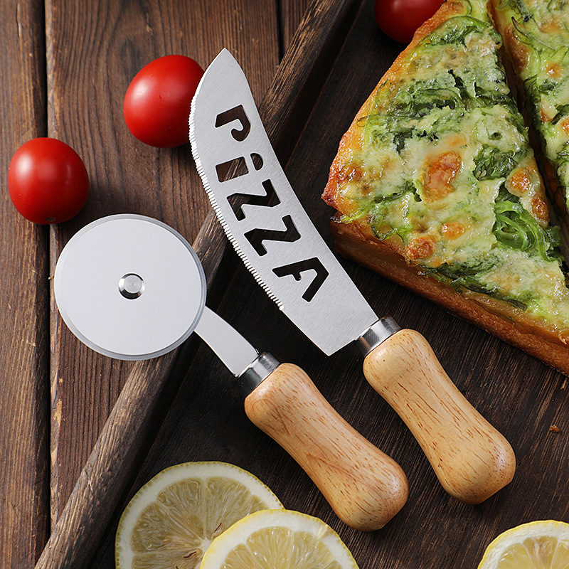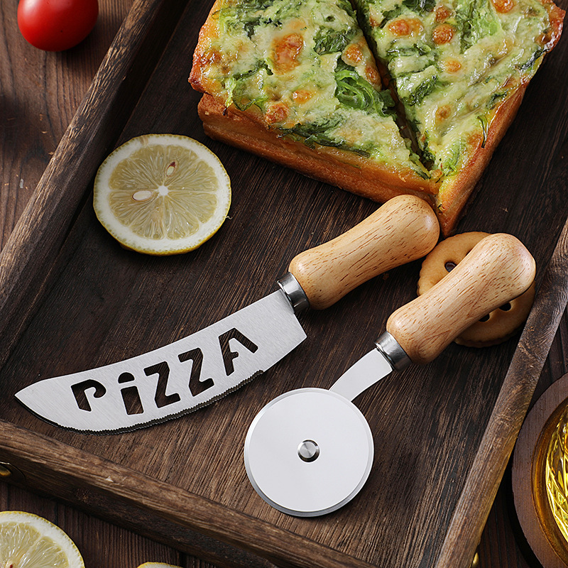现货不锈钢单轮披萨刀滚刀比萨轮刀蛋糕刀相木柄介饼刀烘焙工具