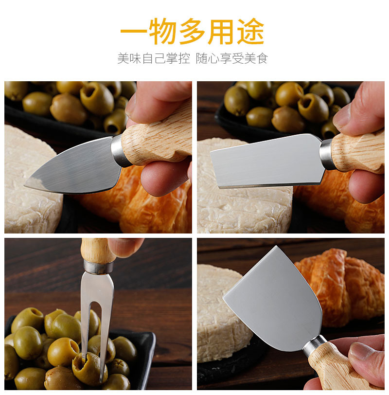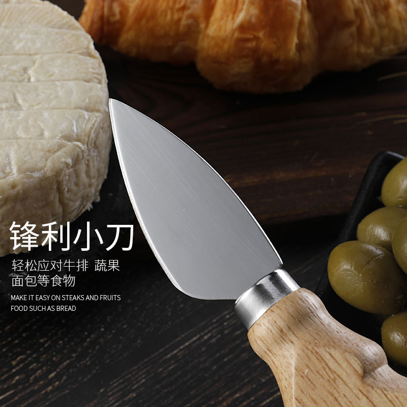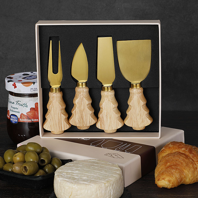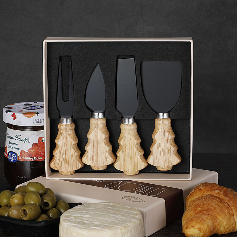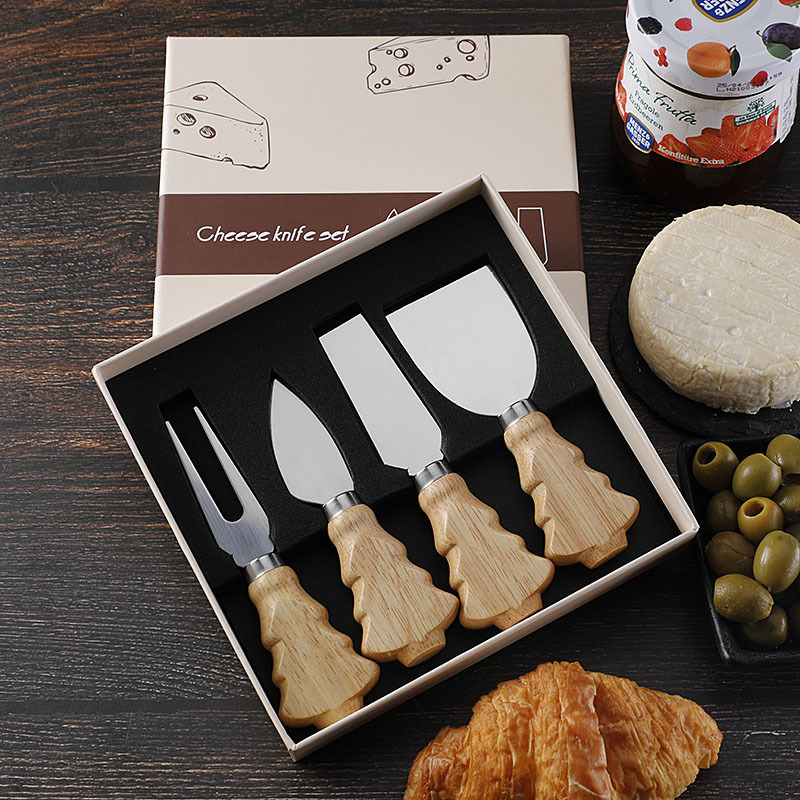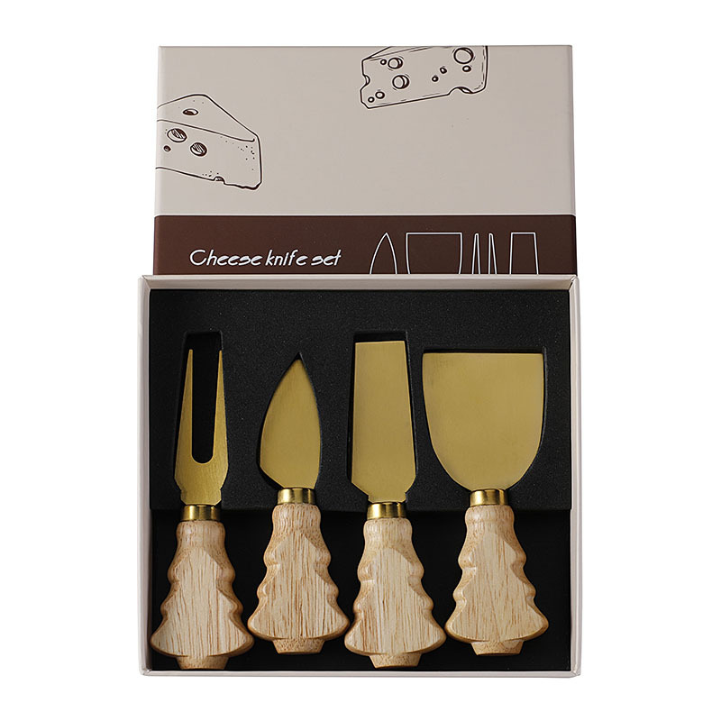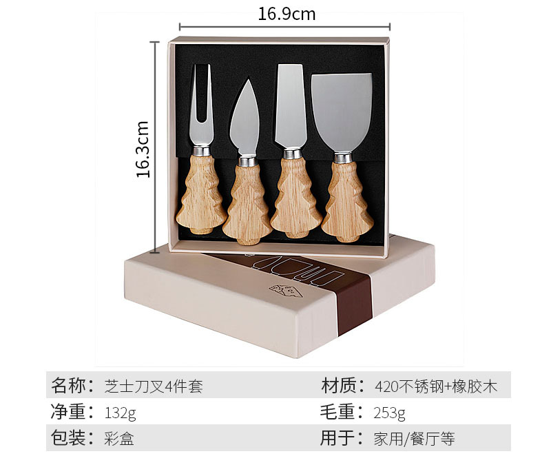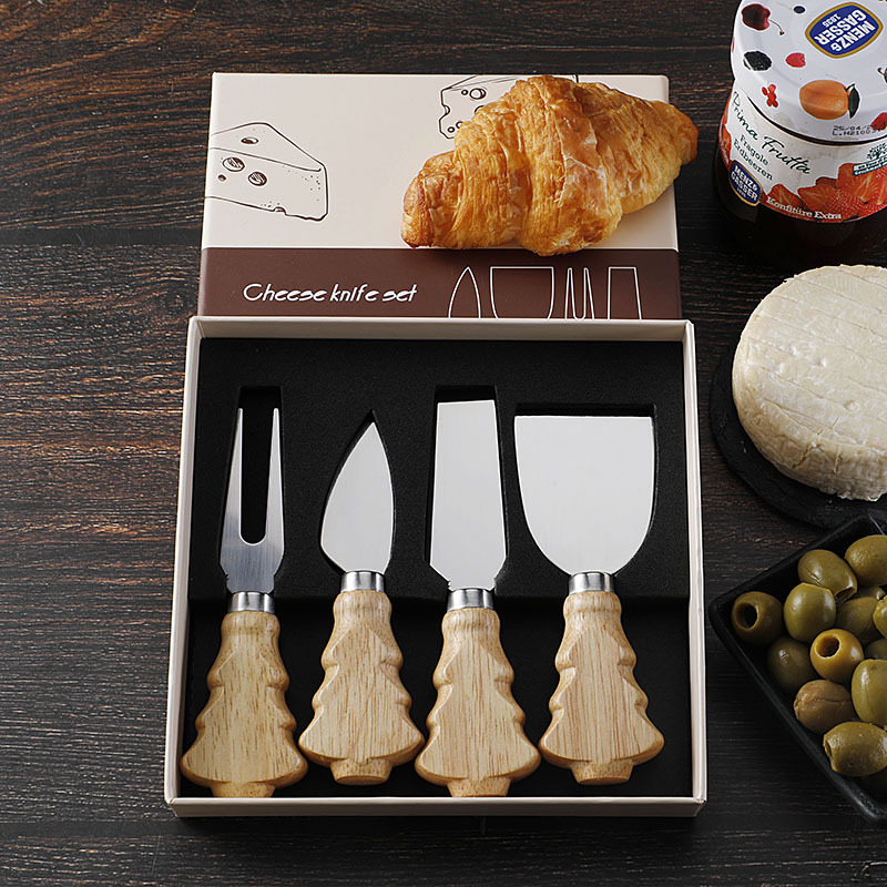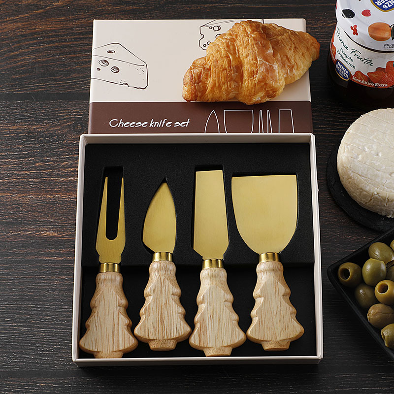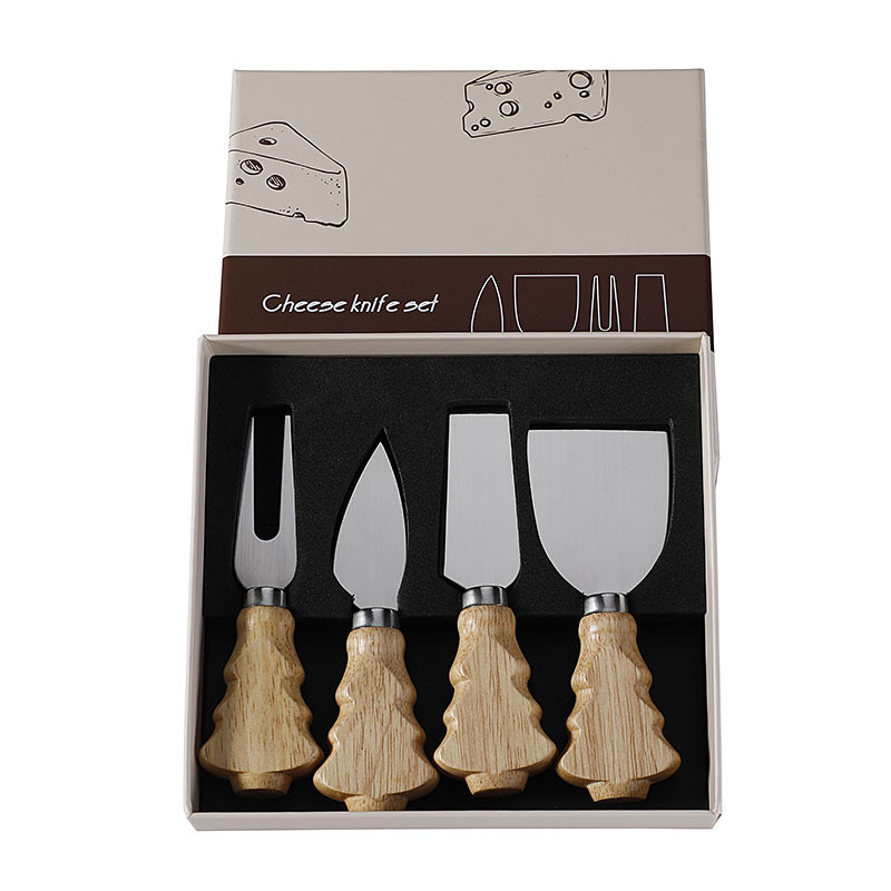 跨境刀具套装不锈钢黄油刀奶酪刀橡胶木圣诞树芝士刀套装4件套