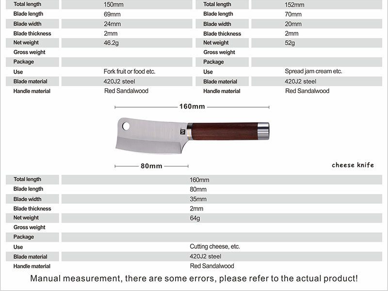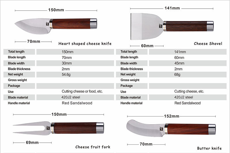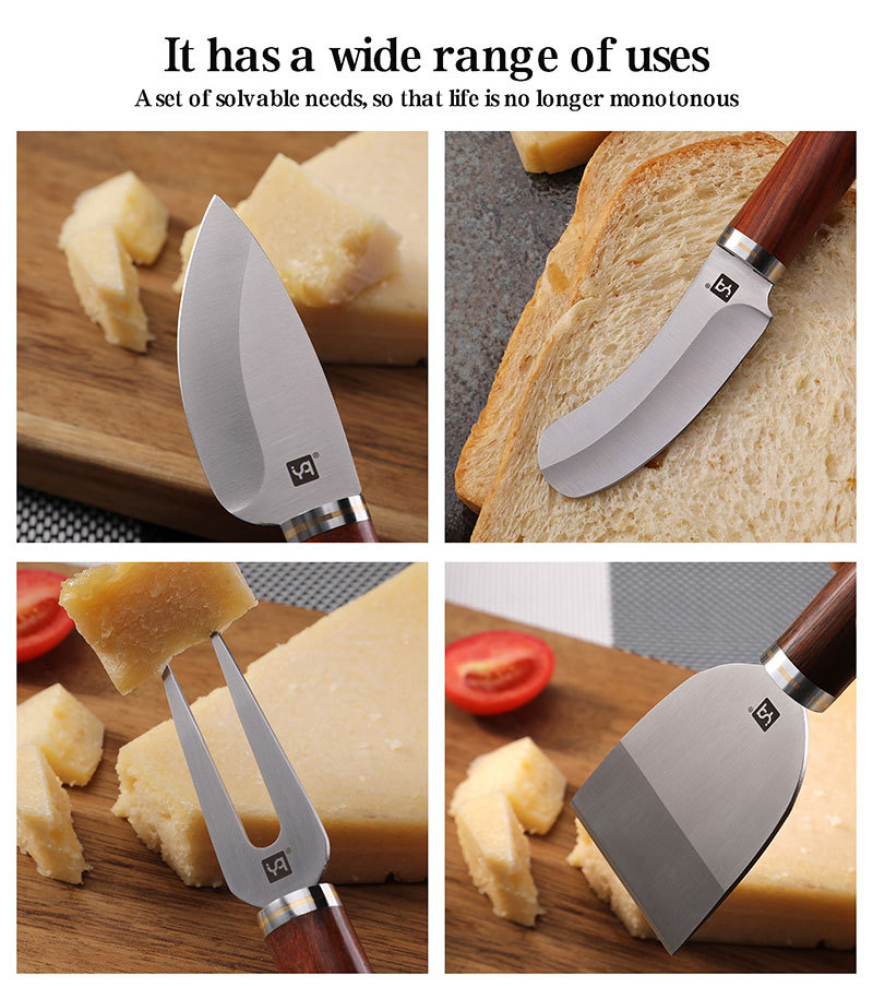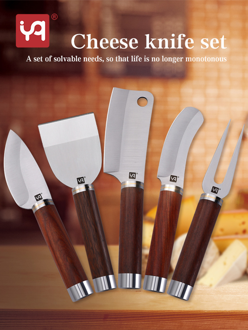 跨境高端红檀木柄奶酪刀具加厚 不锈钢切肉刀西餐刀叉芝士刀现货